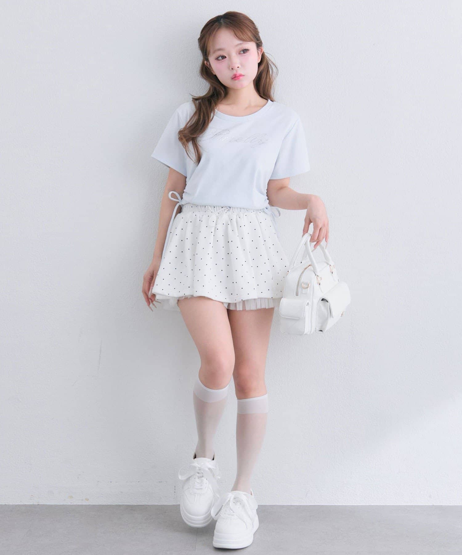 ・スカートと合わせれば、甘すぎないカジュアルガーリーな着こなしに。