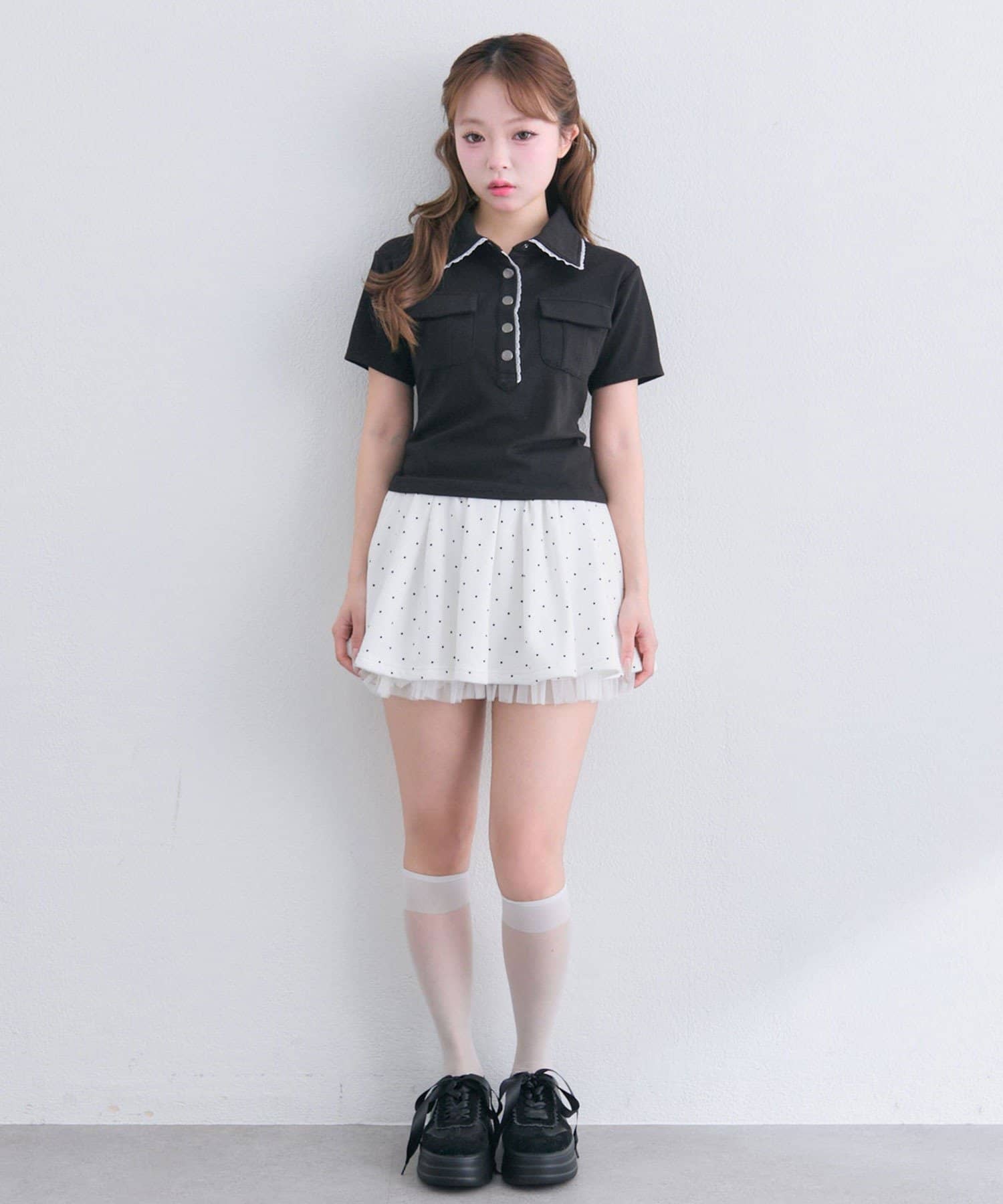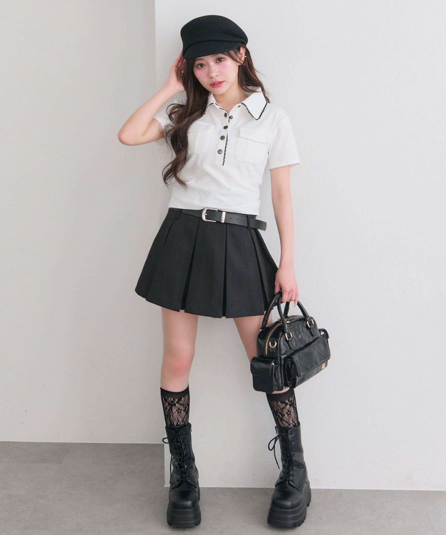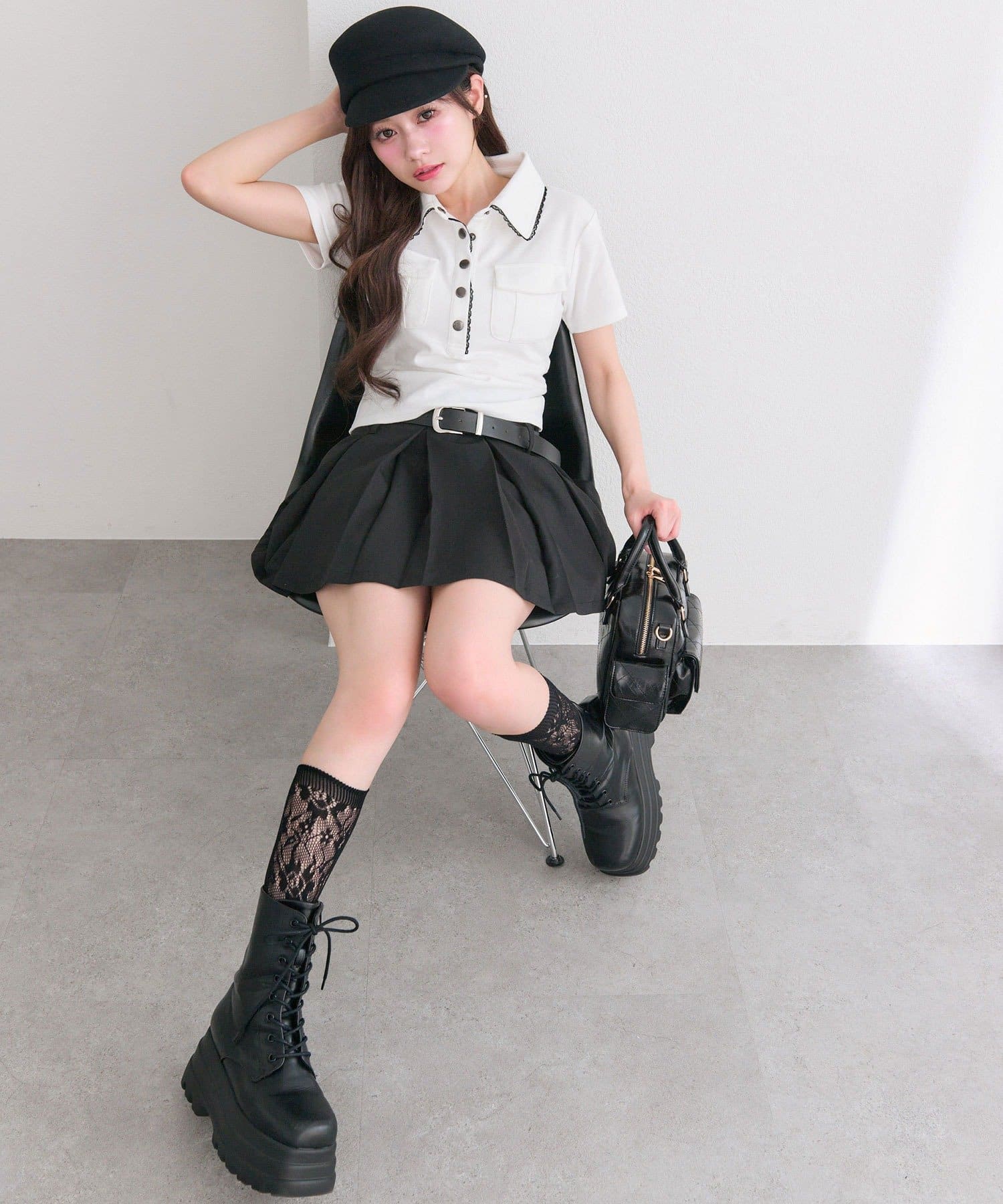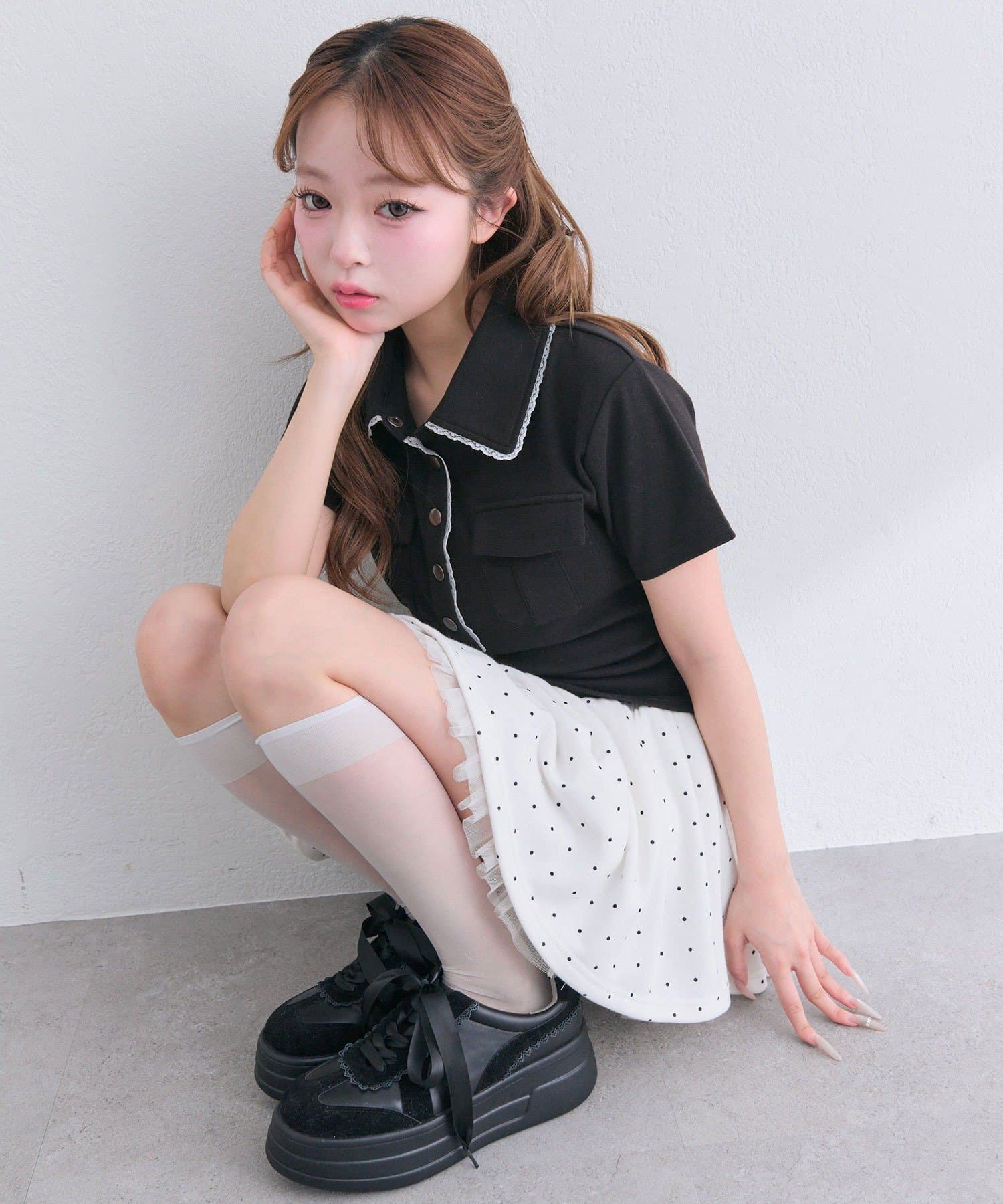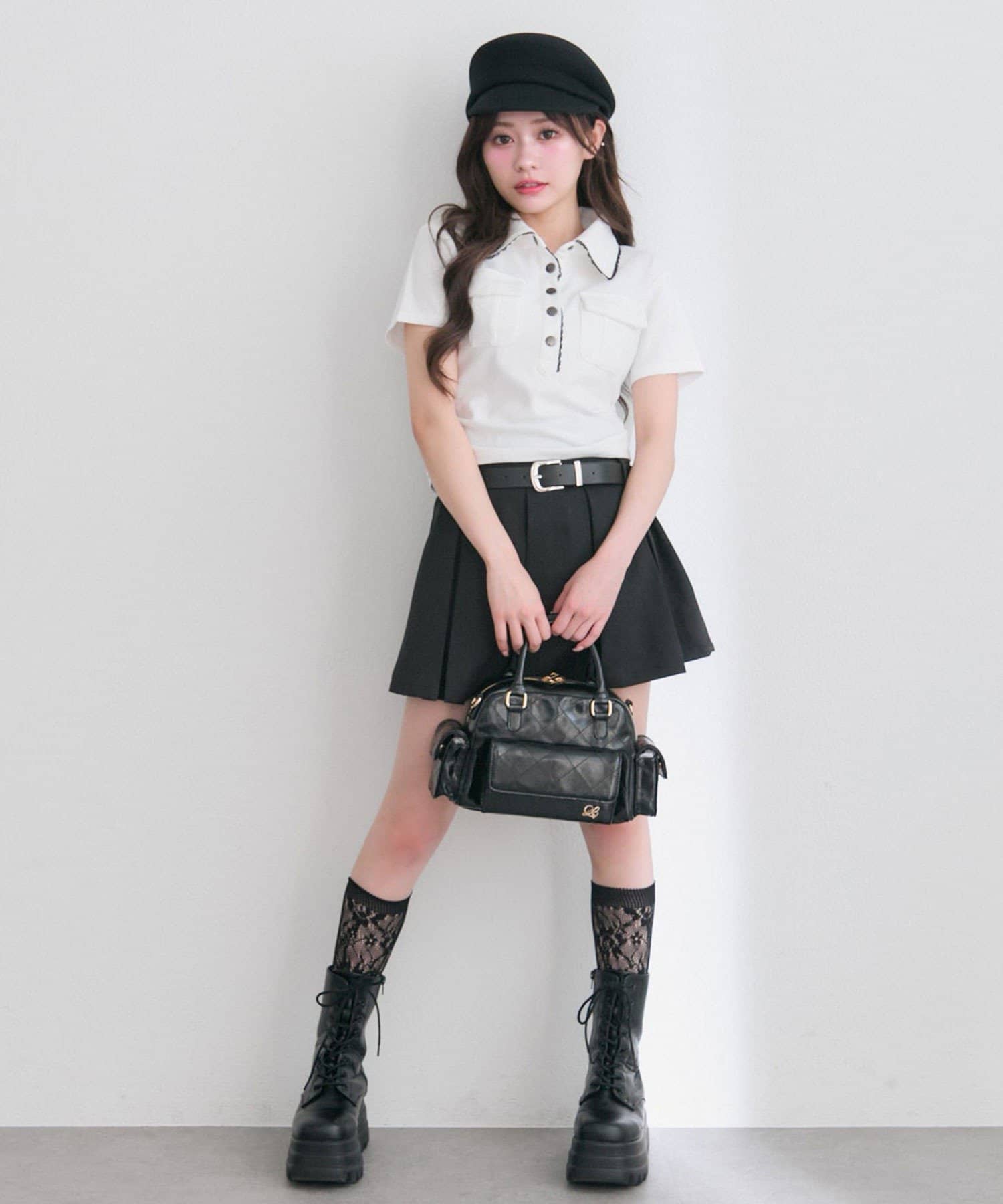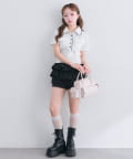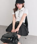 ・ミニスカートと合わせて、甘さを引き立てたガーリーコーデに。