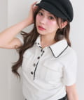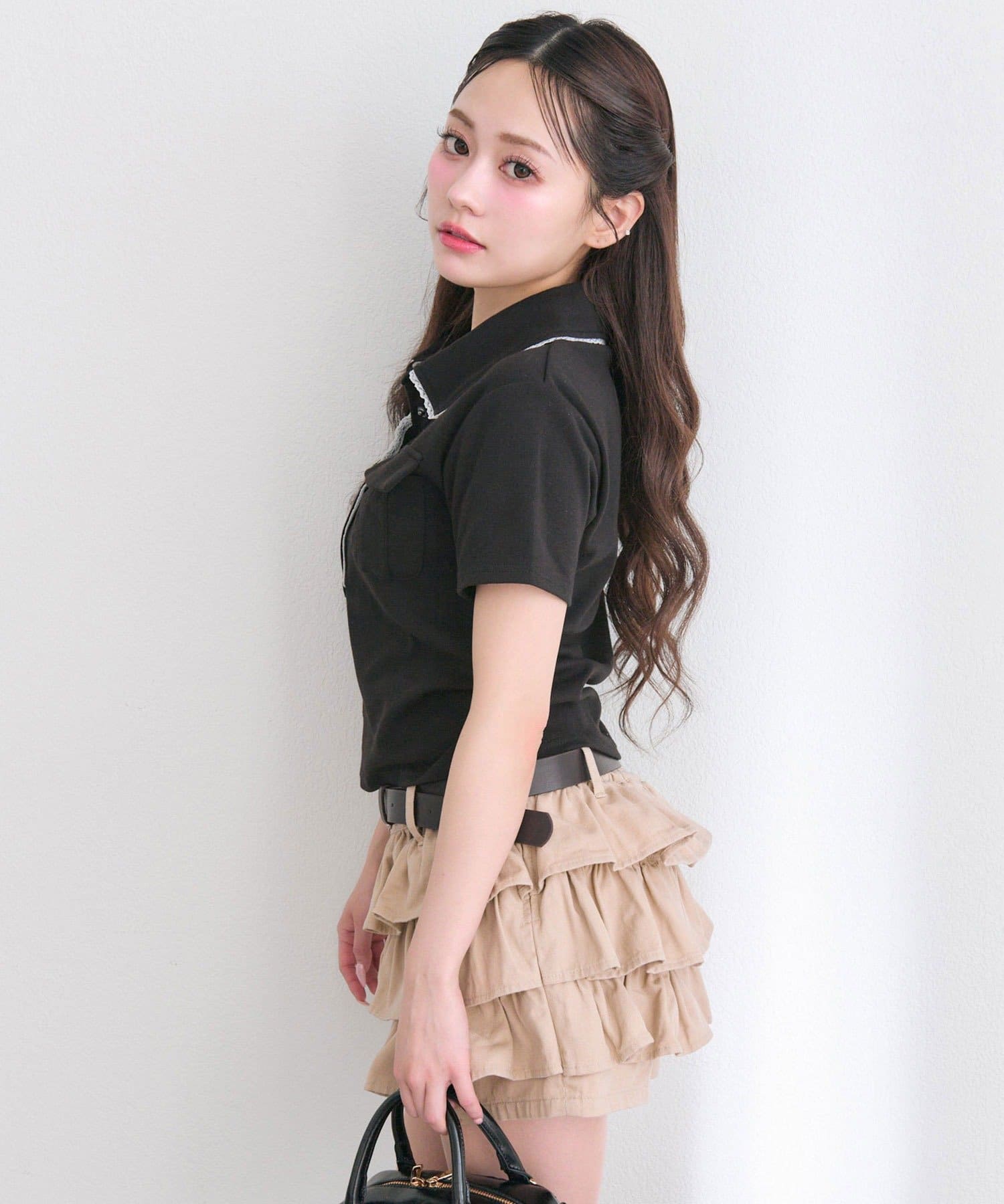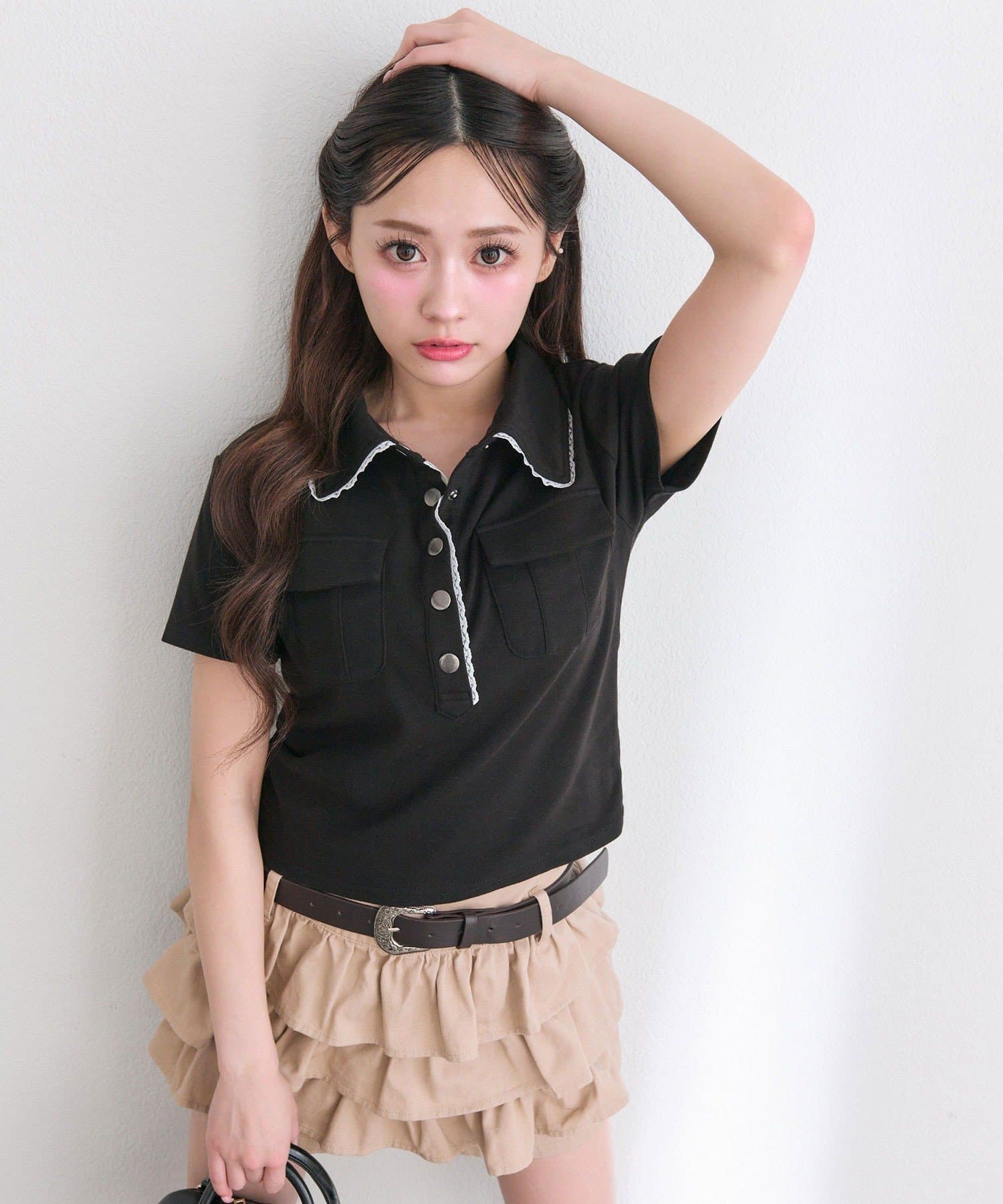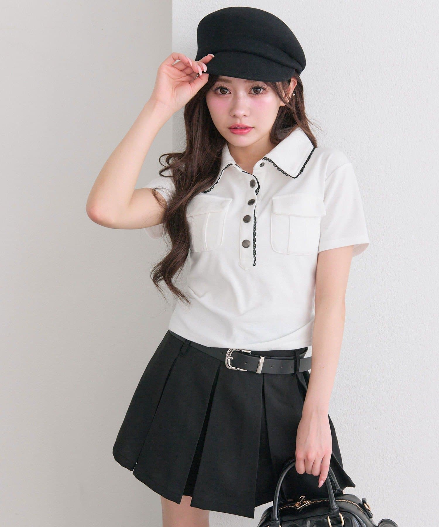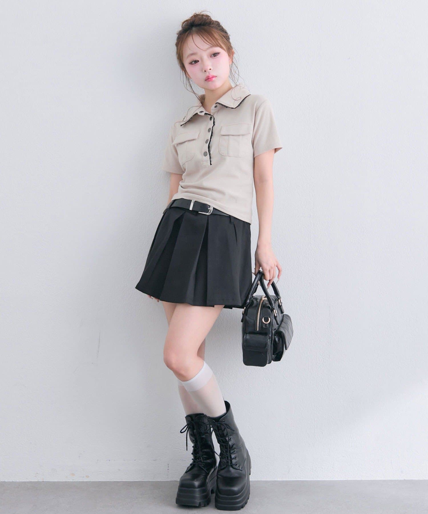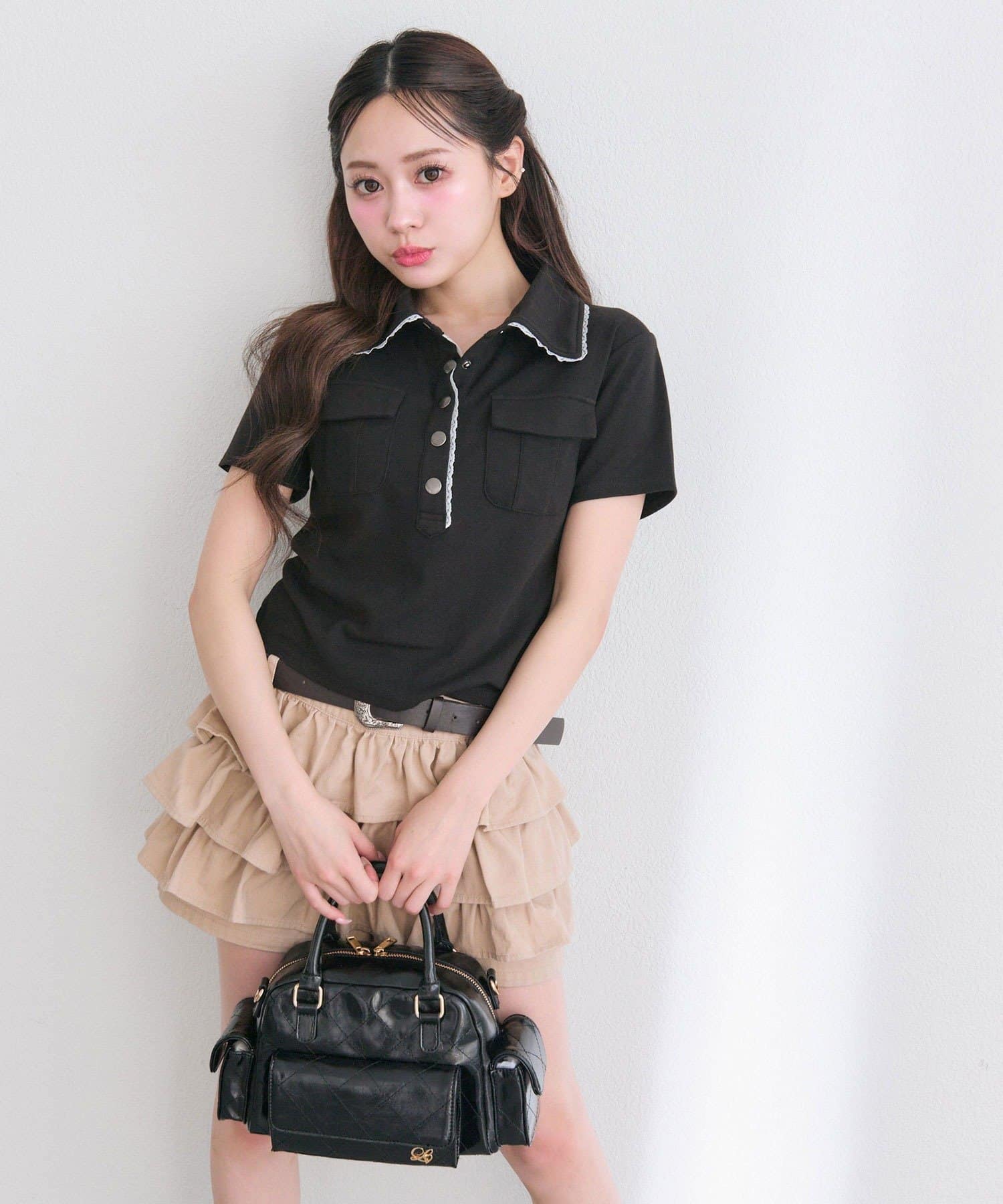 ・ミニスカートと合わせて、甘さを引き立てたガーリーコーデに。