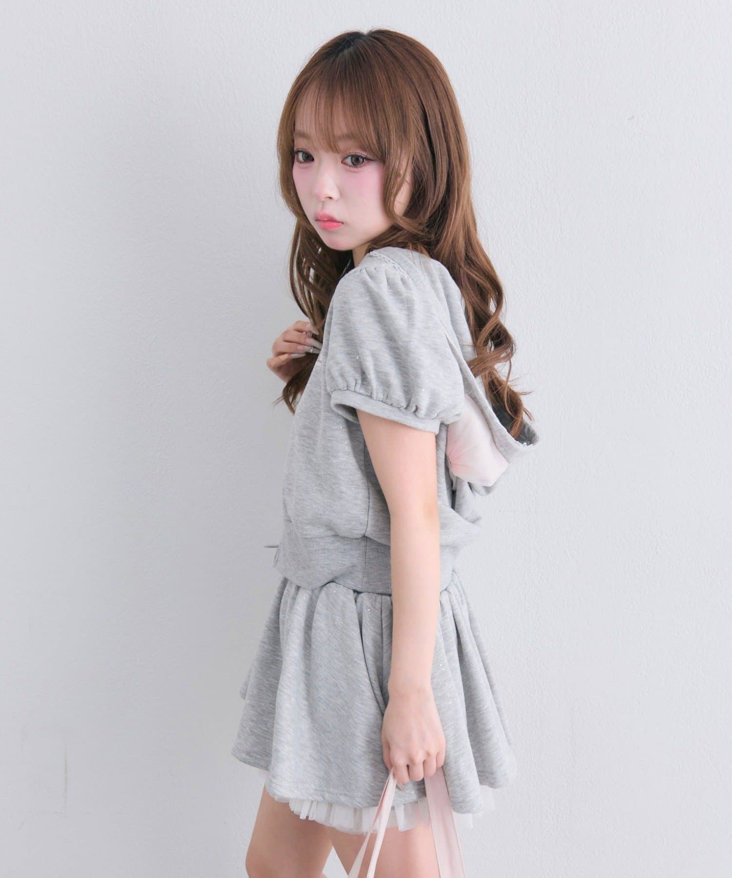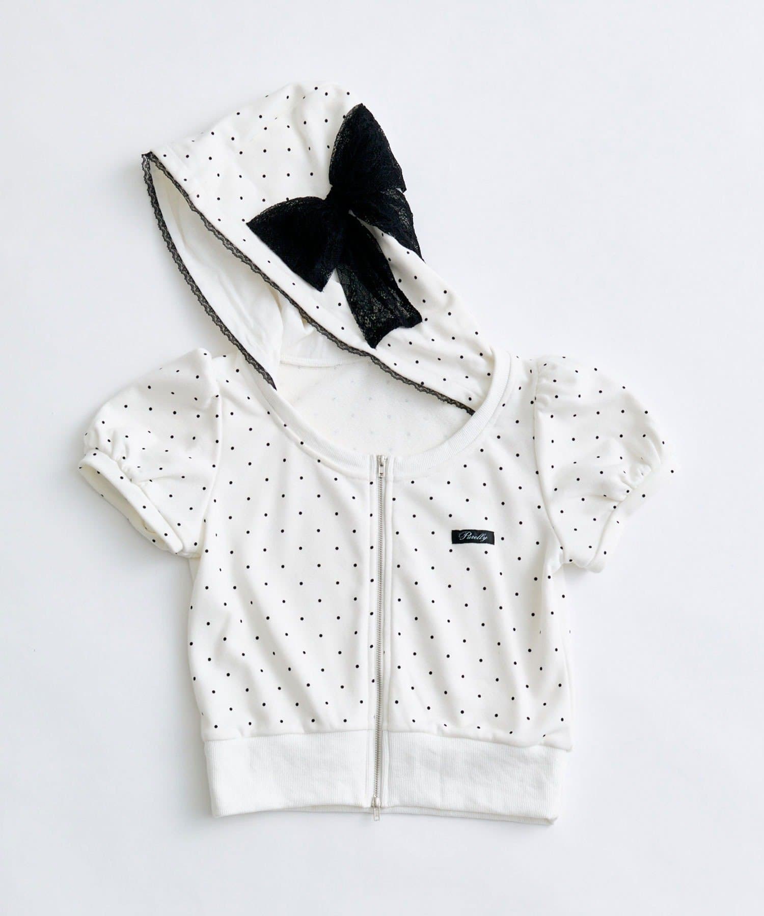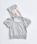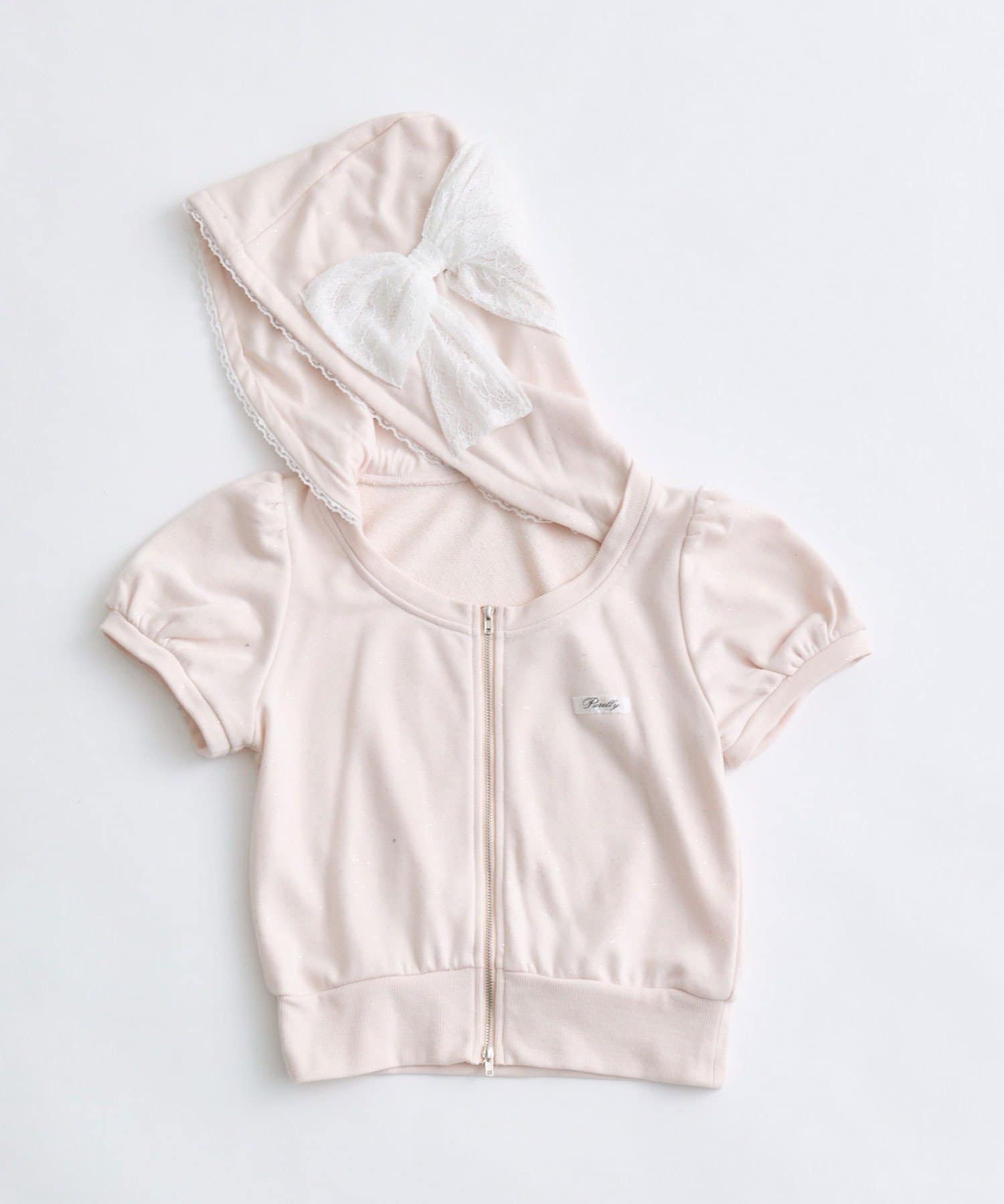リボンフード半袖ジップパーカー