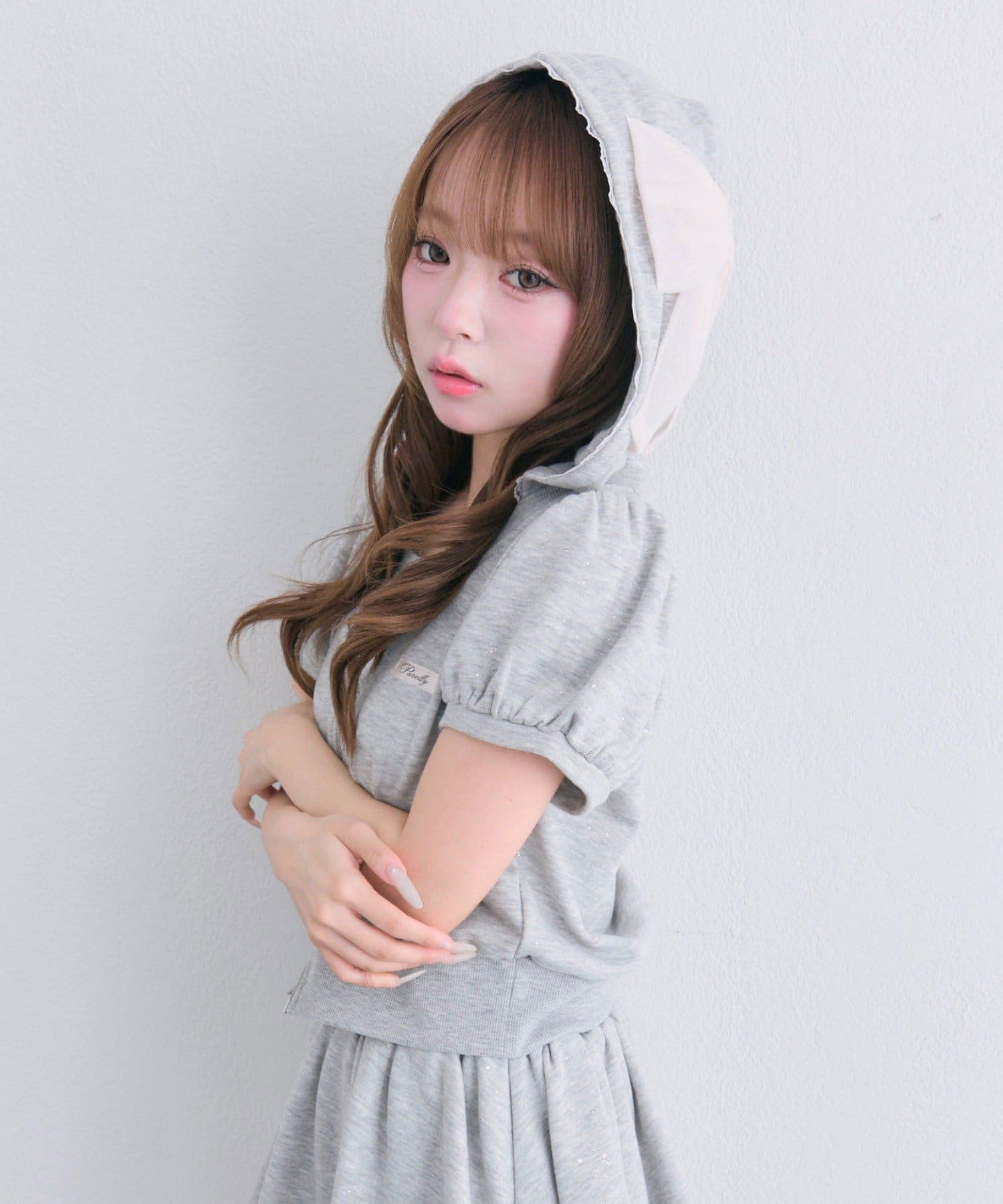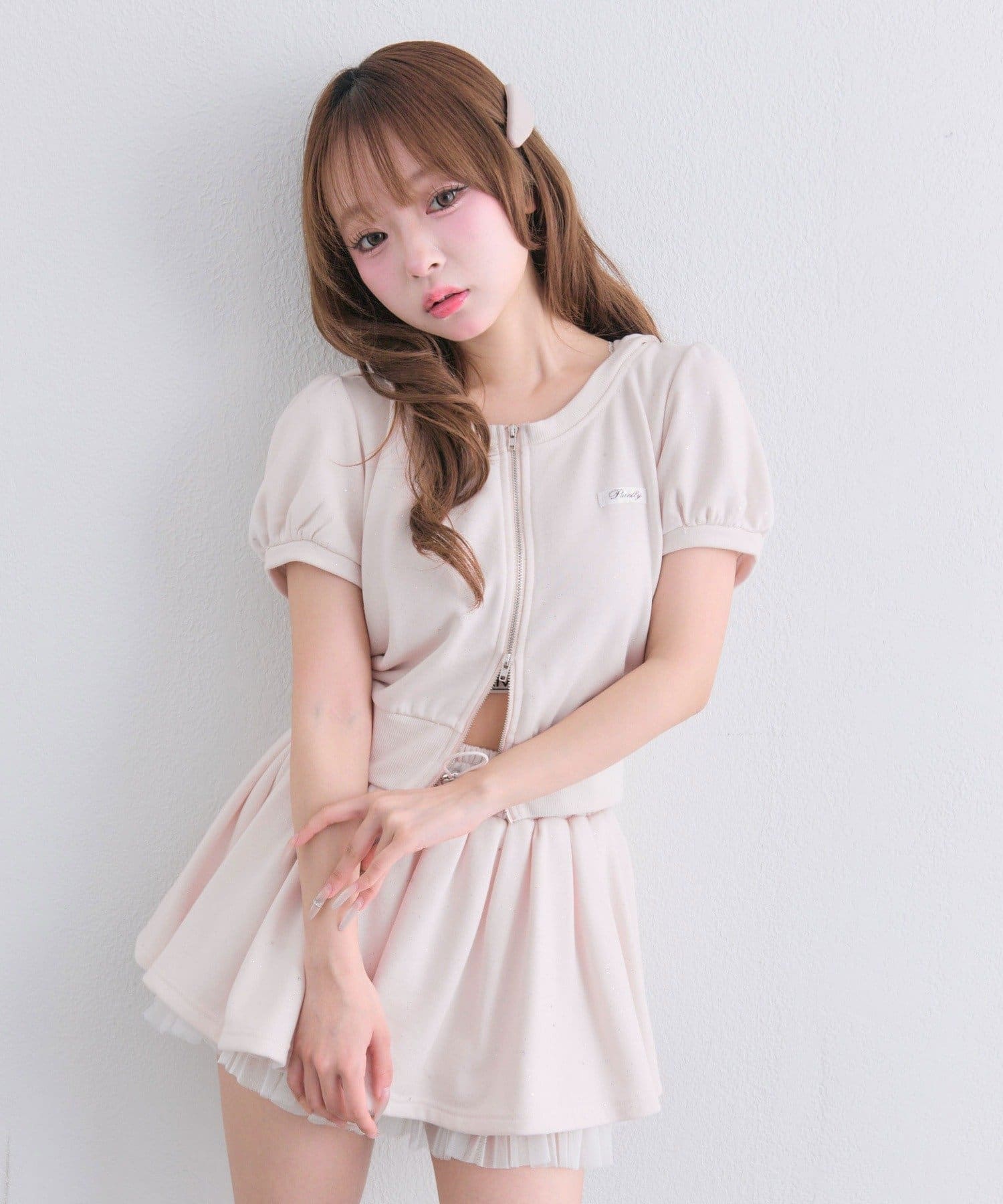 ・ふわっとしたパフスリーブが、二の腕をカバーしつつガーリーな印象に。