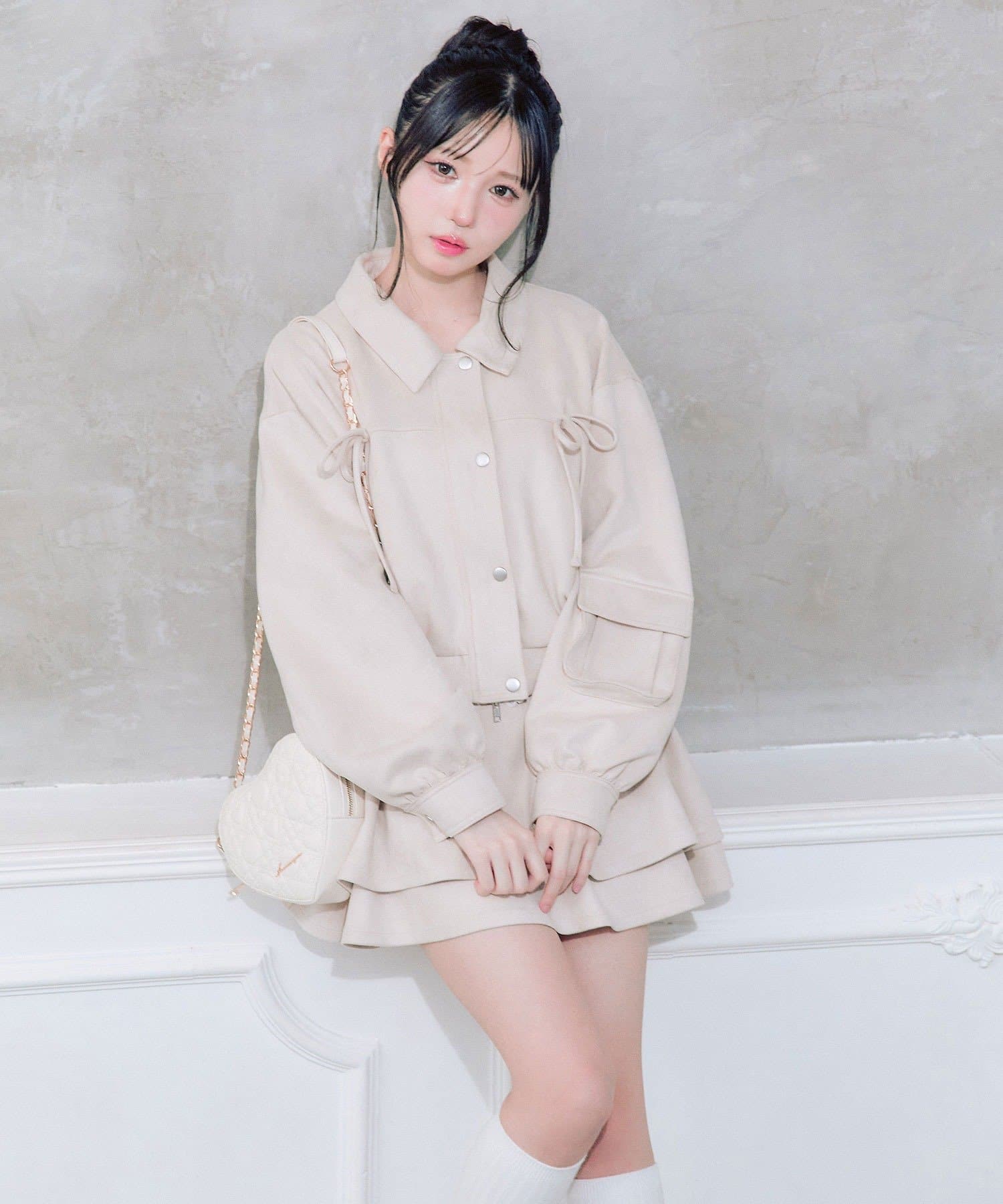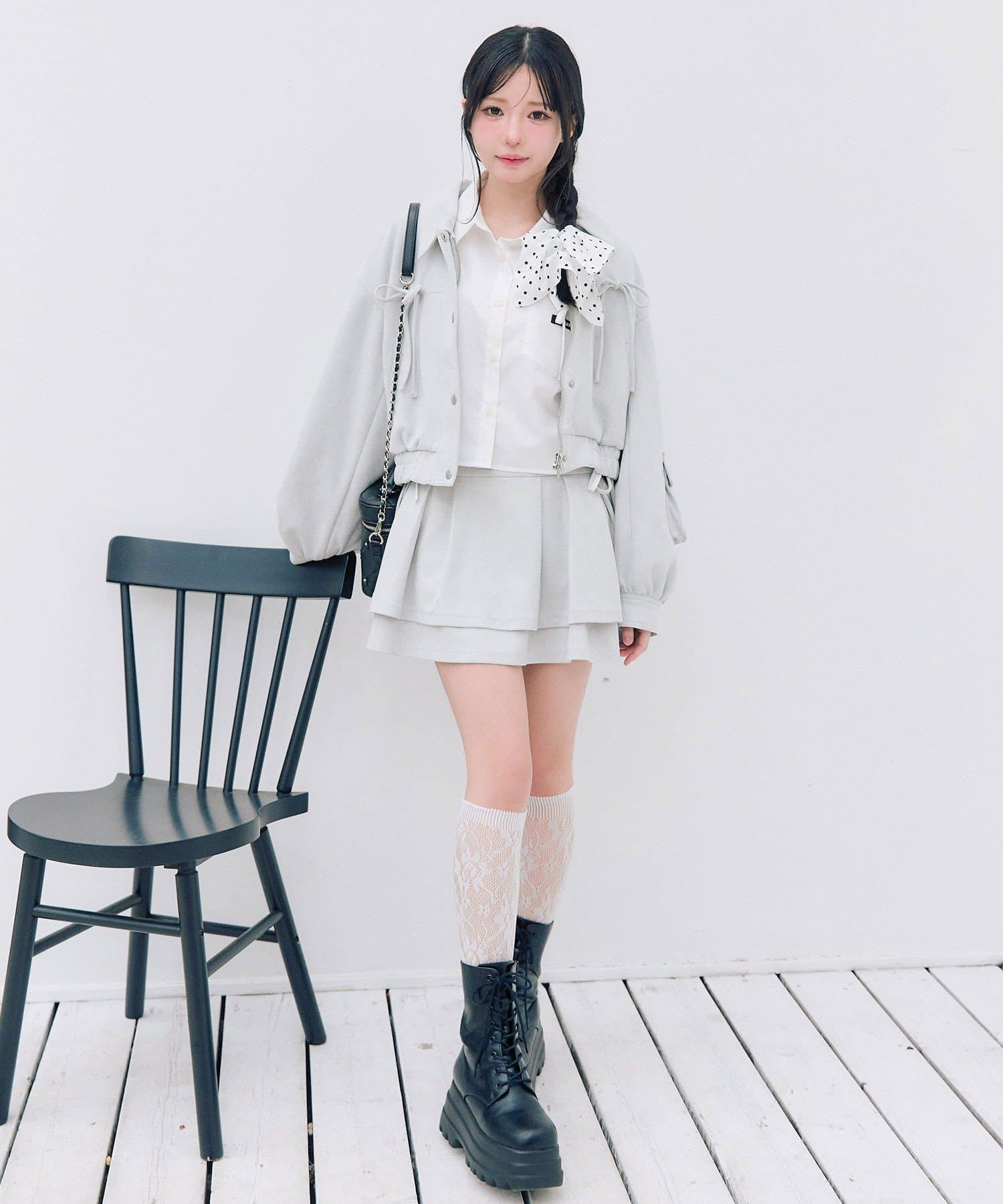 ・ミニスカートやショートパンツ合わせで、韓国っぽガーリーなコーデが完成します。