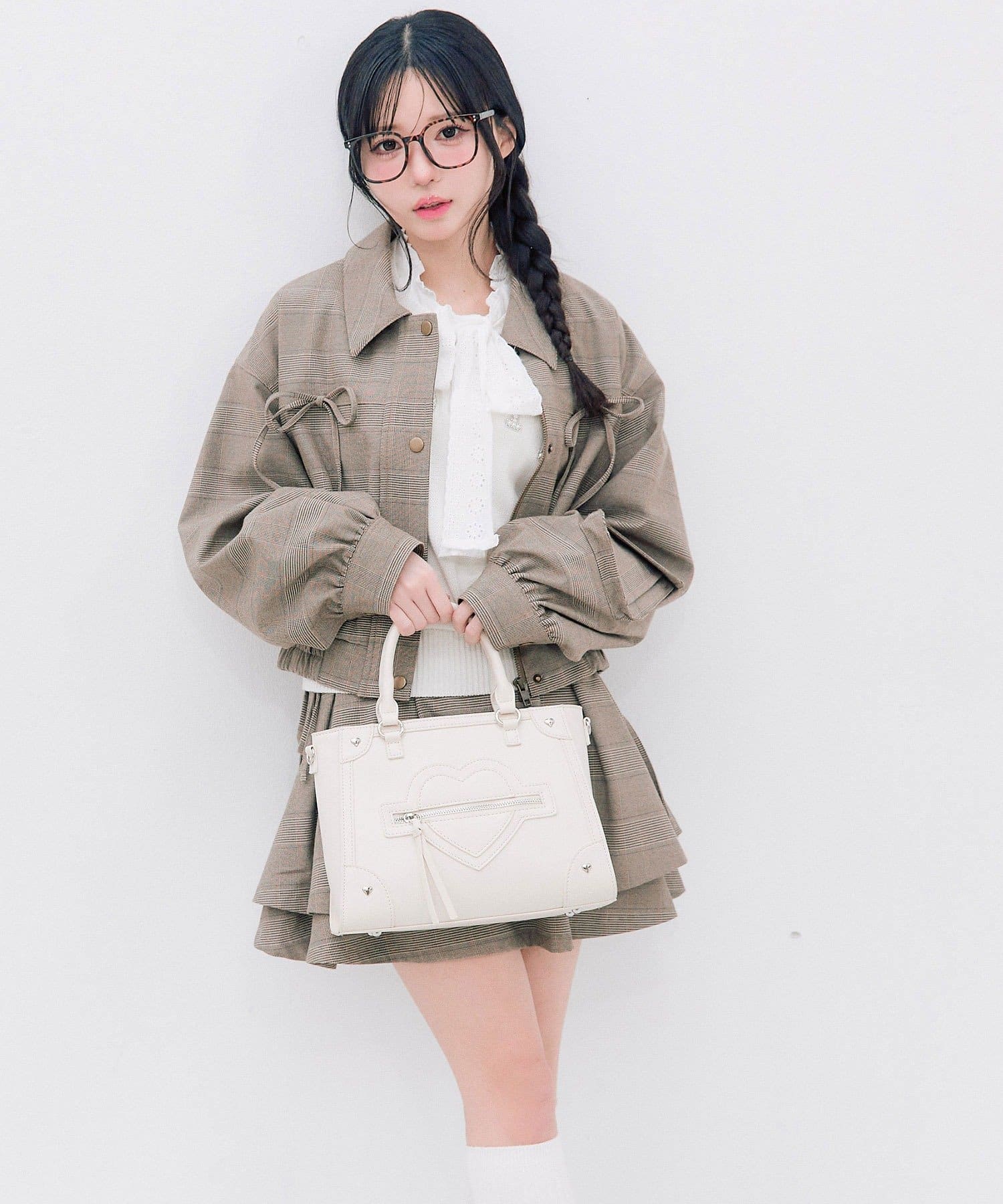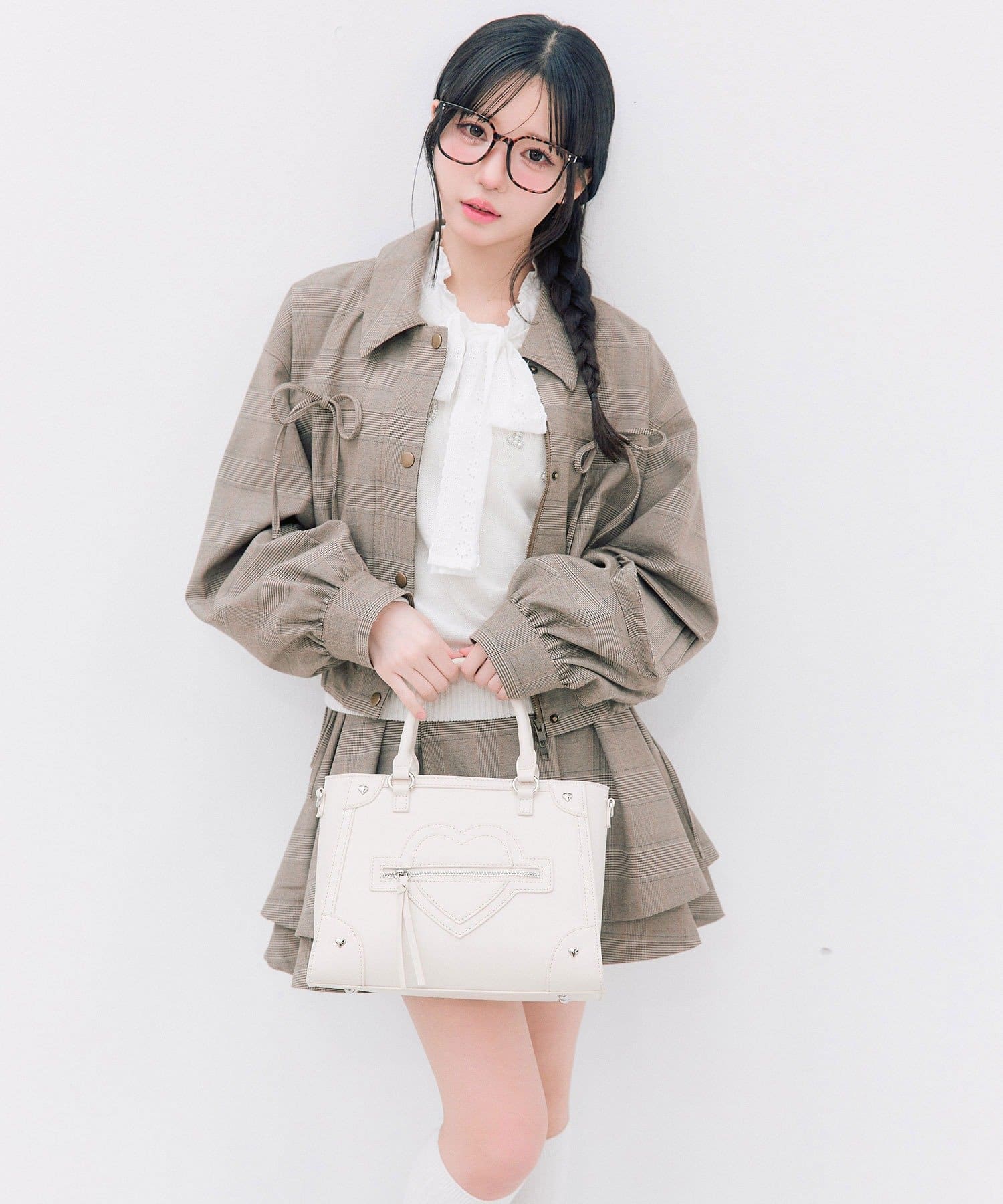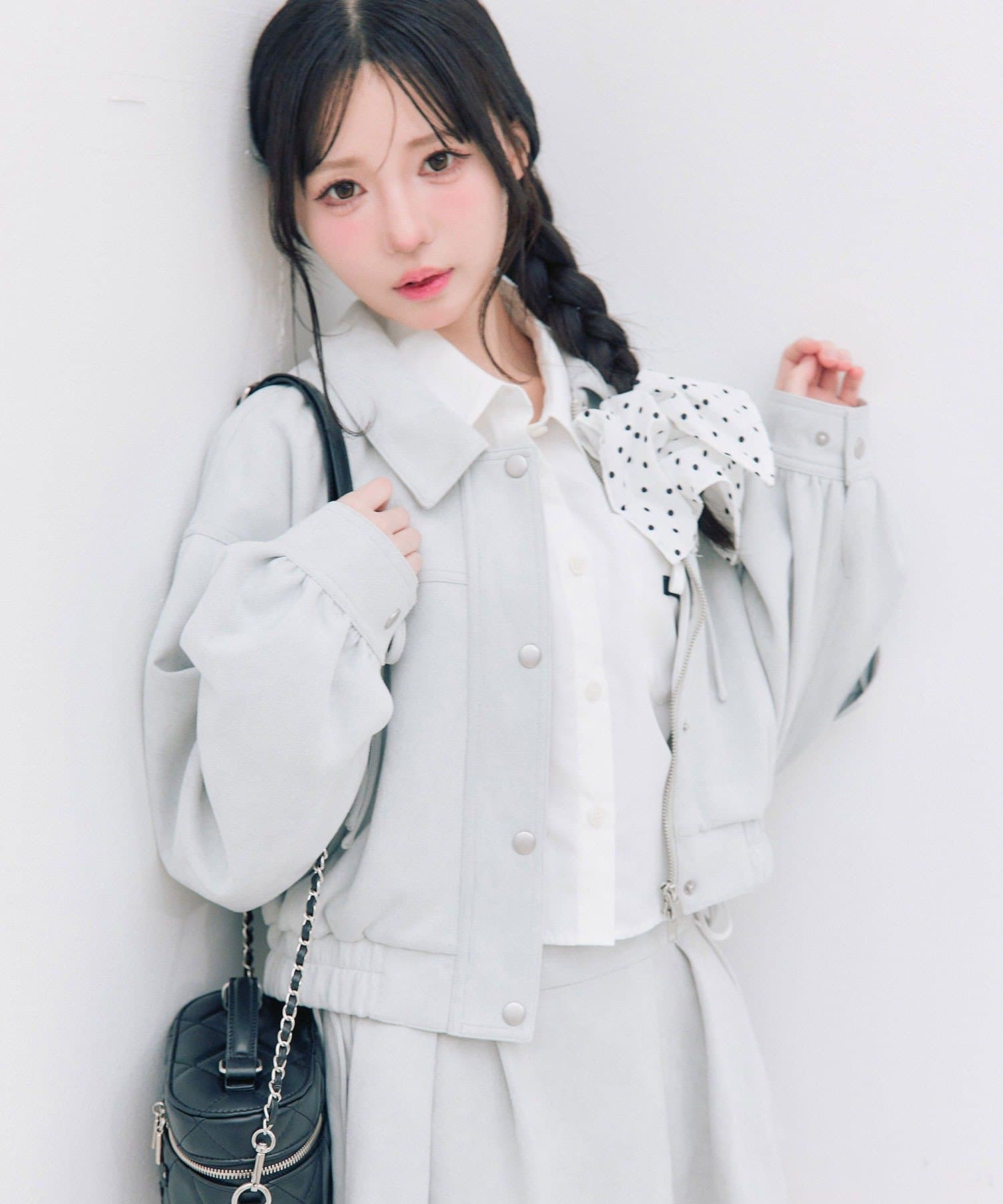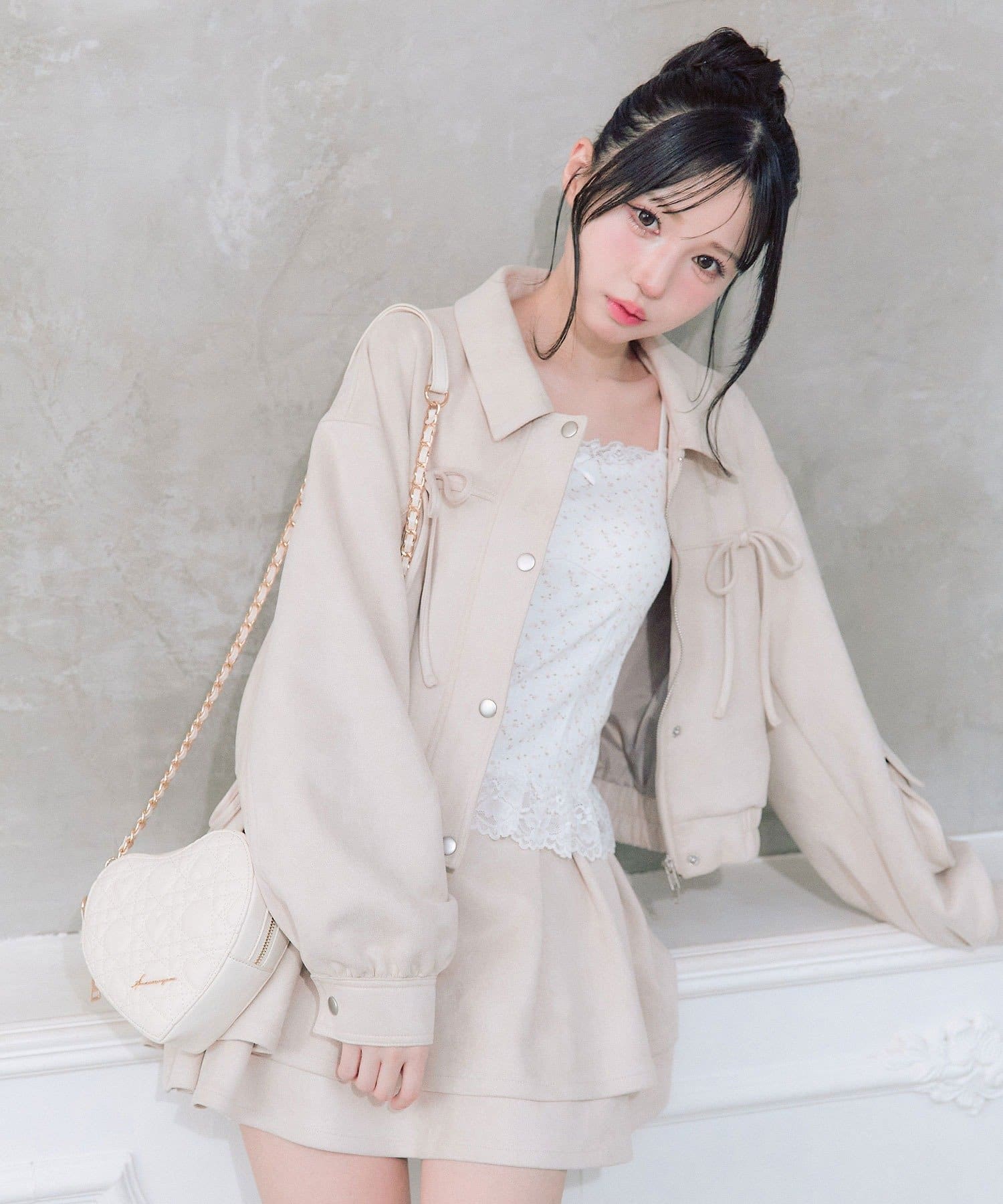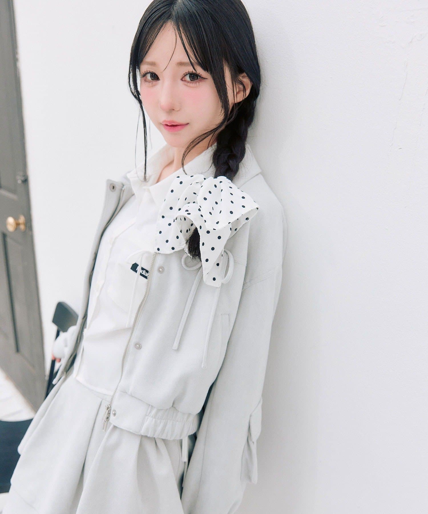 ・フロントのリボンや大きめの襟が甘さをプラスするデザイン。