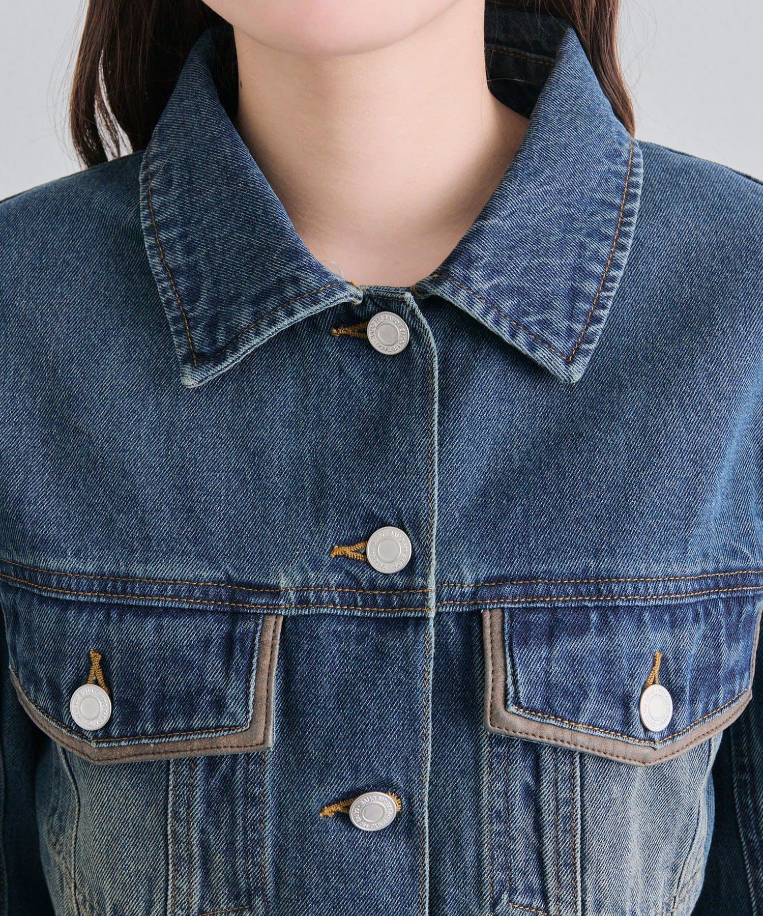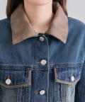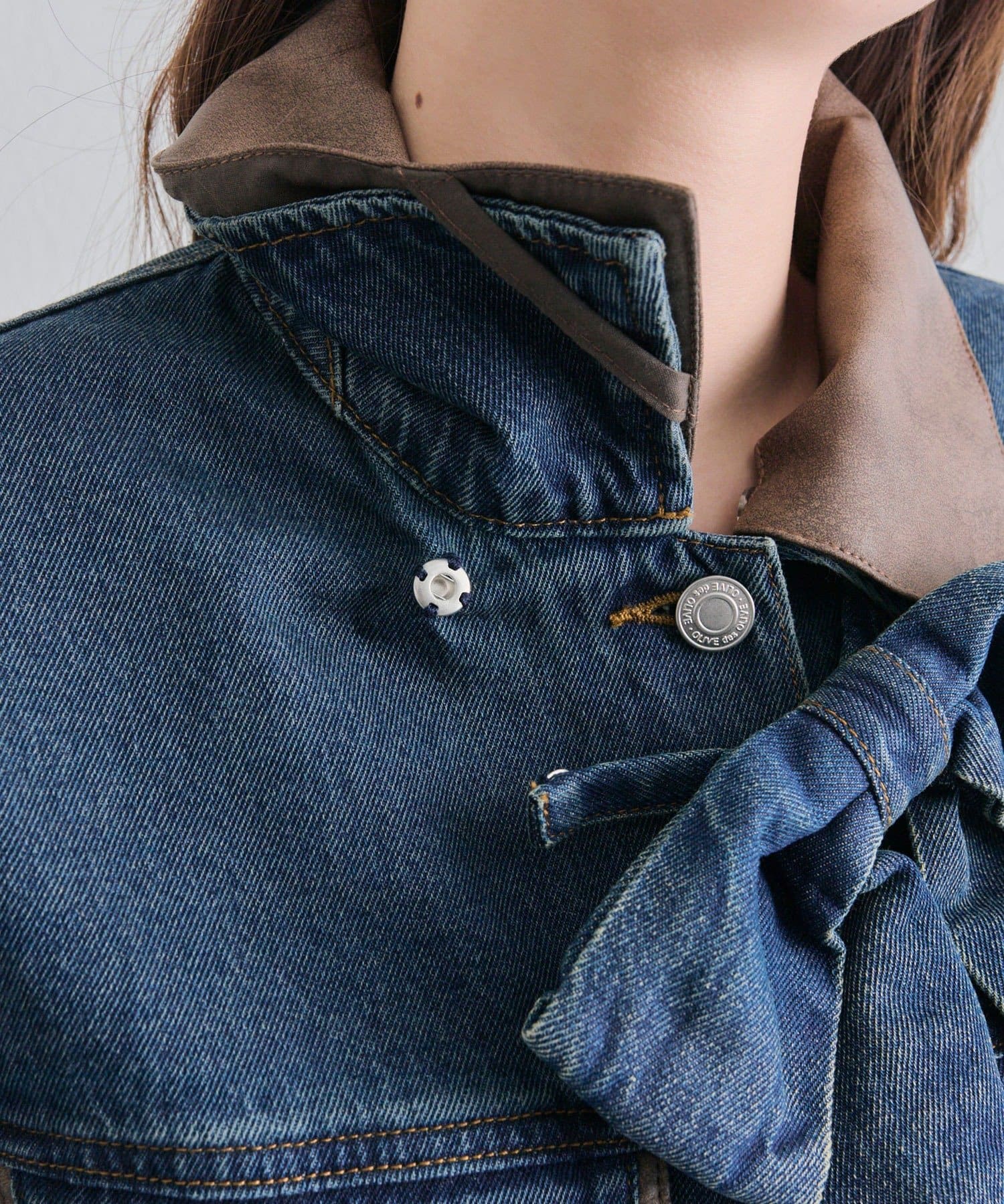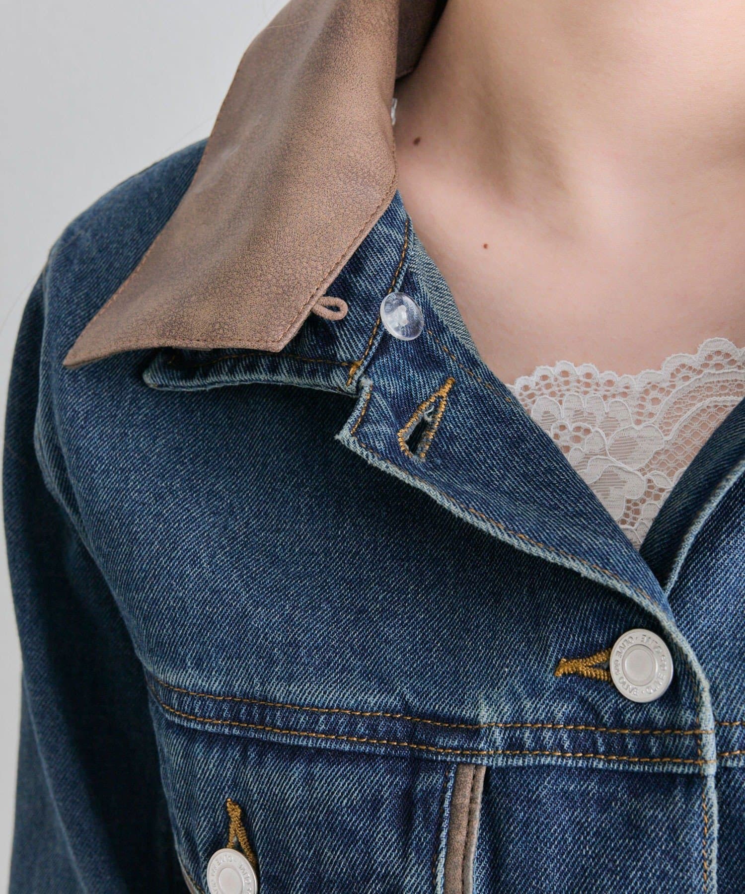 ・衿やパイピングに合皮素材を使用し、異素材の組み合わせが映えるデザイン。