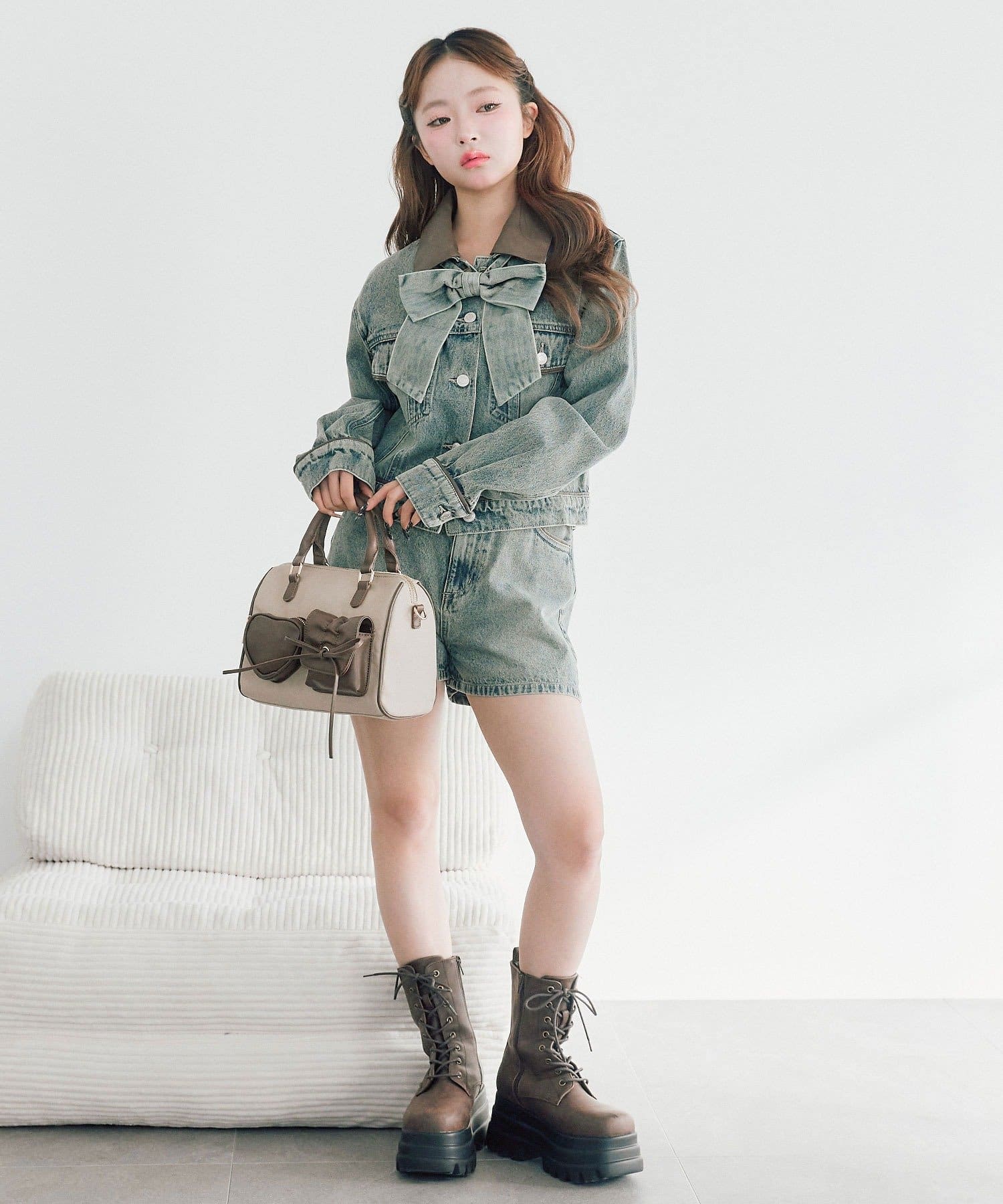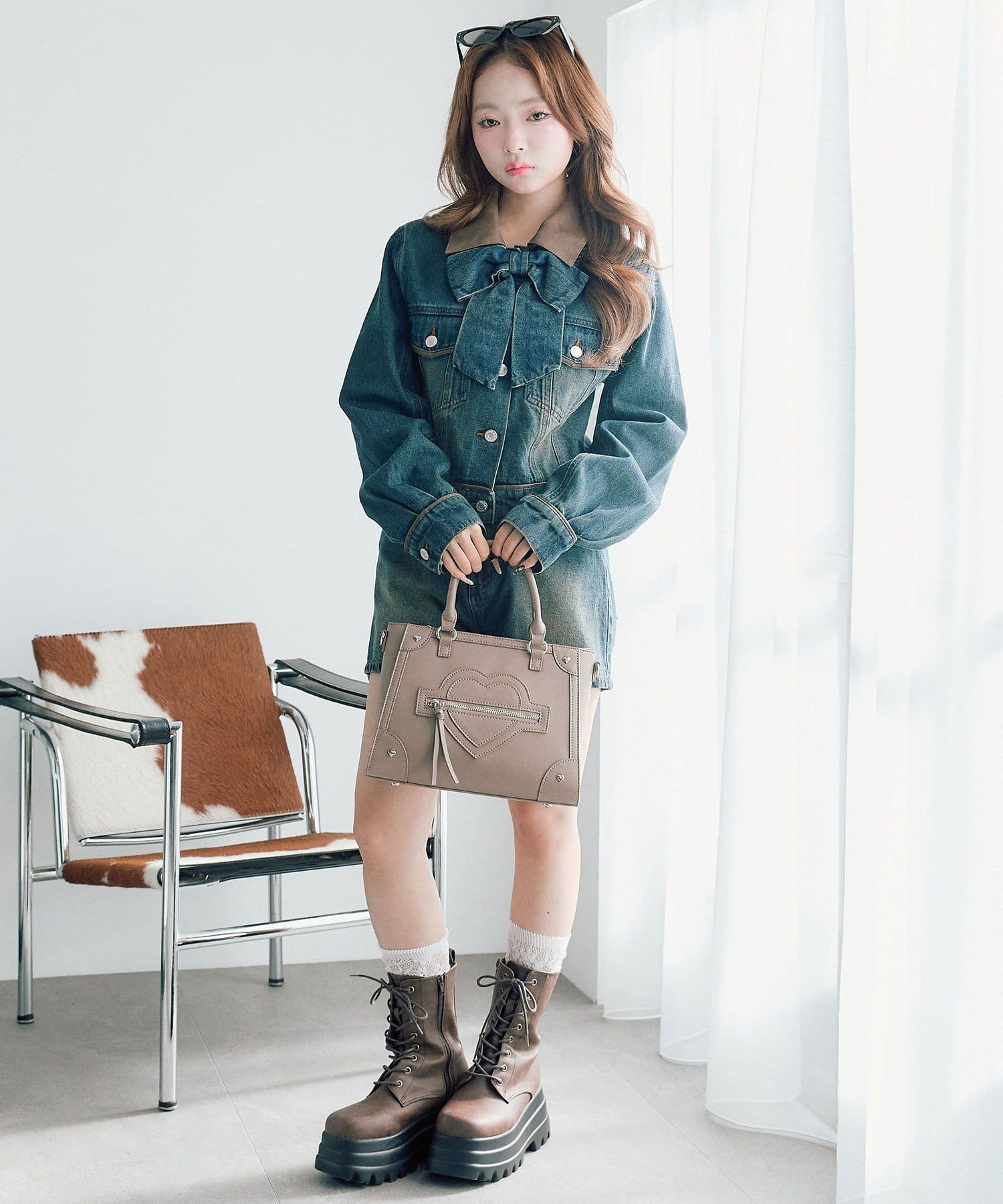 ・存在感のあるリボンと合皮衿は取り外し可能で、気分に合わせてアレンジを楽しめます。