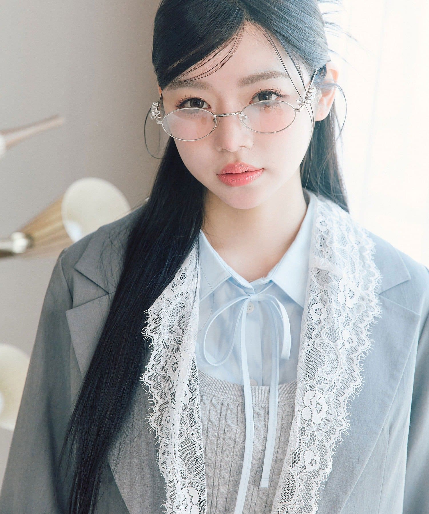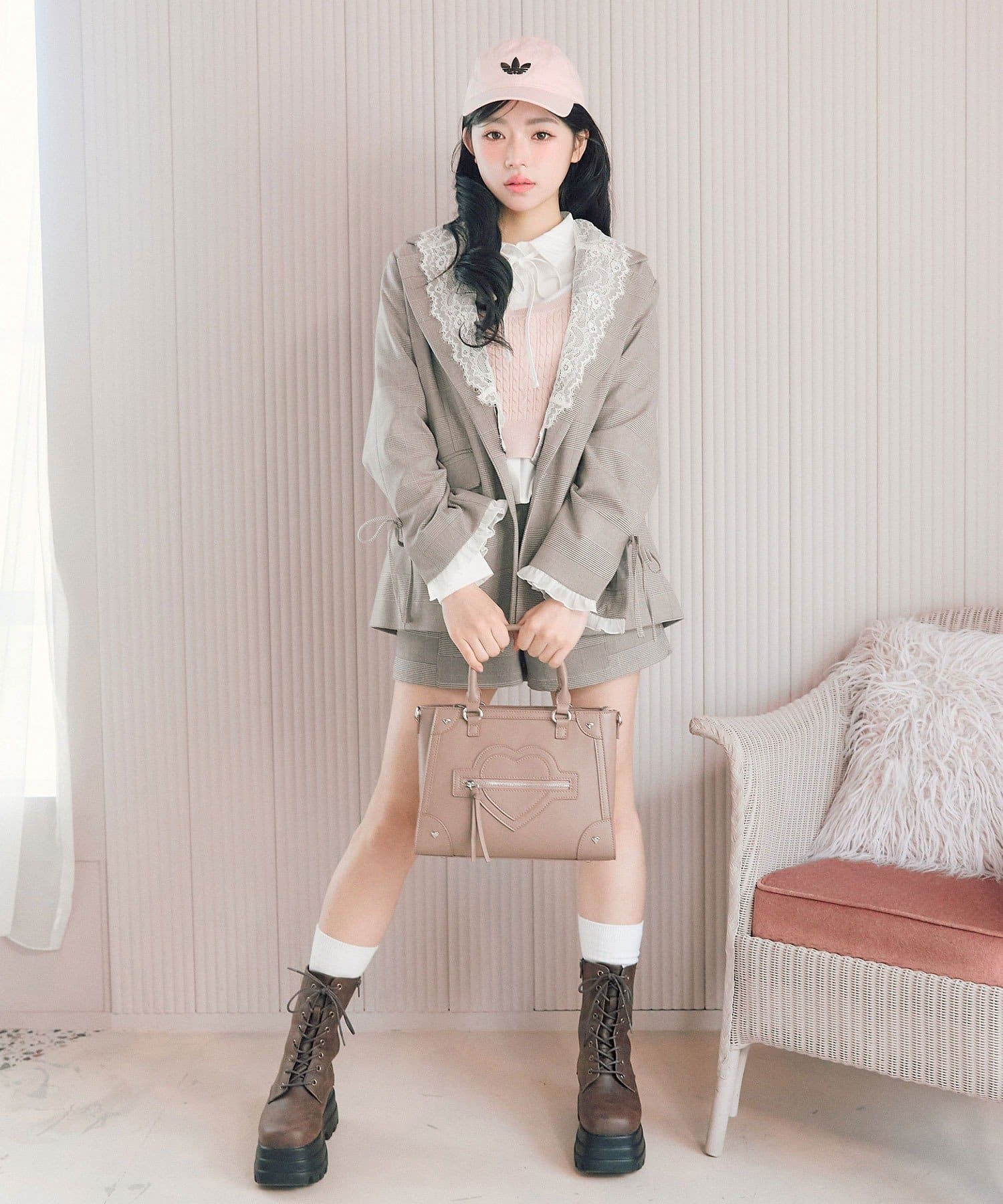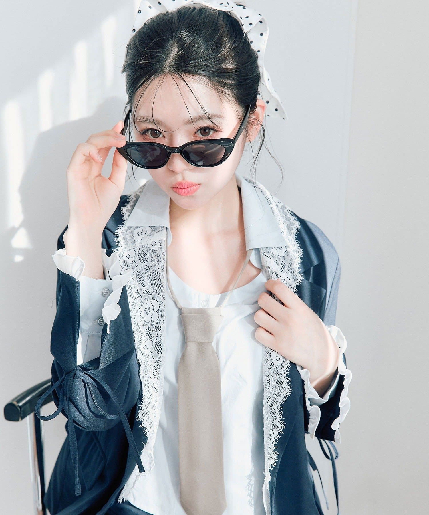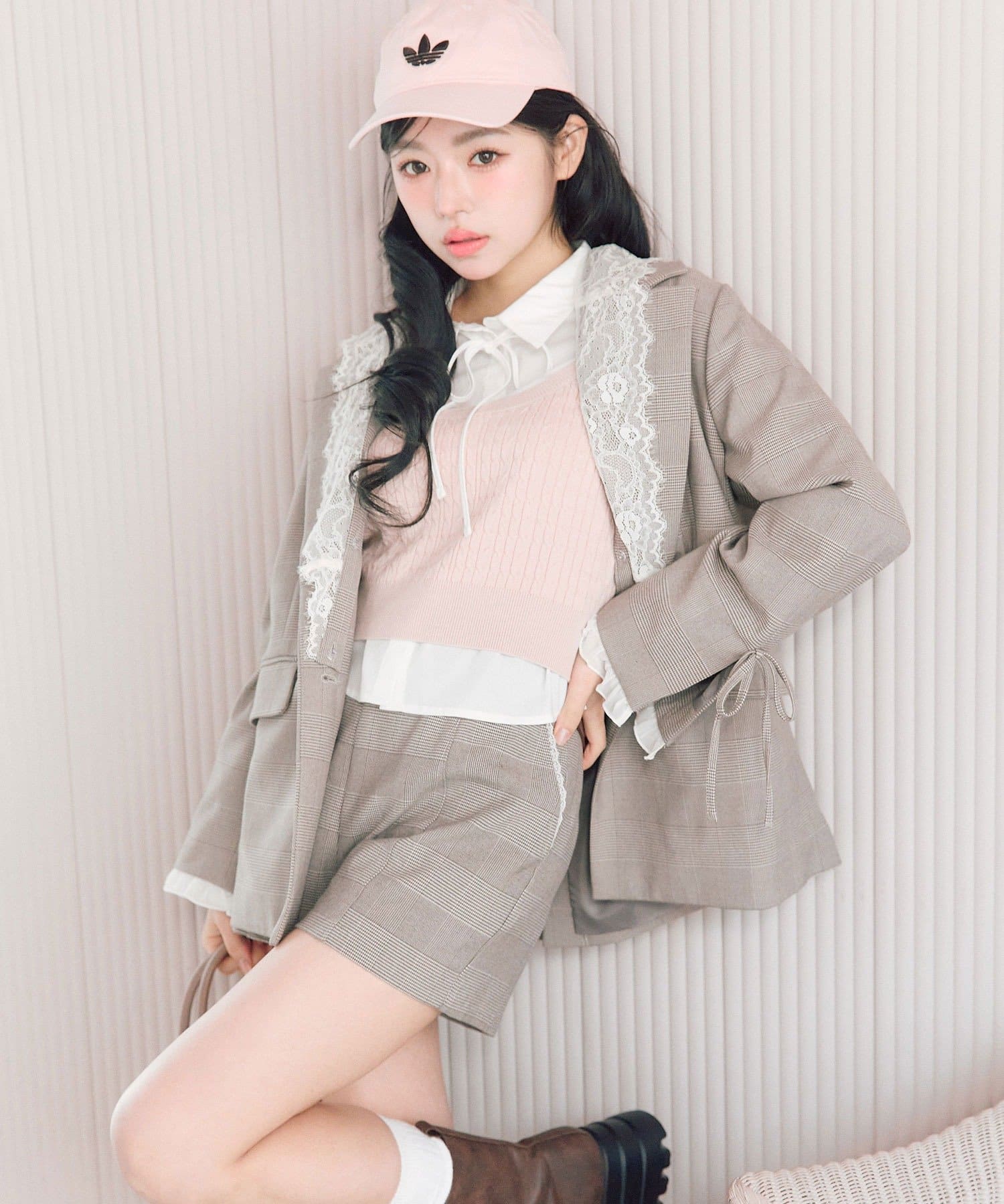・袖口のスリットで抜け感を作りつつ、さりげないリボンとフリルで手元までかわいい印象に。