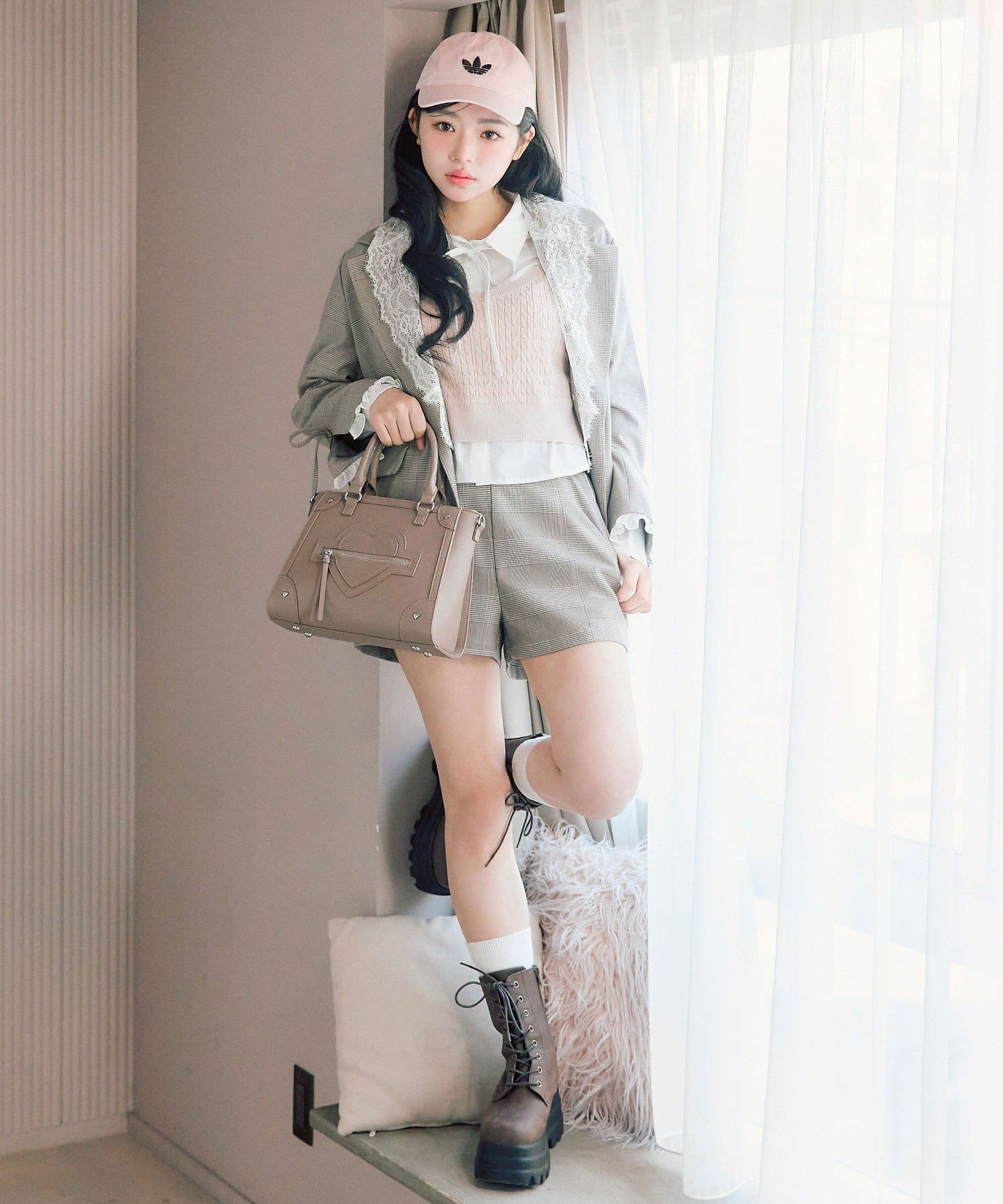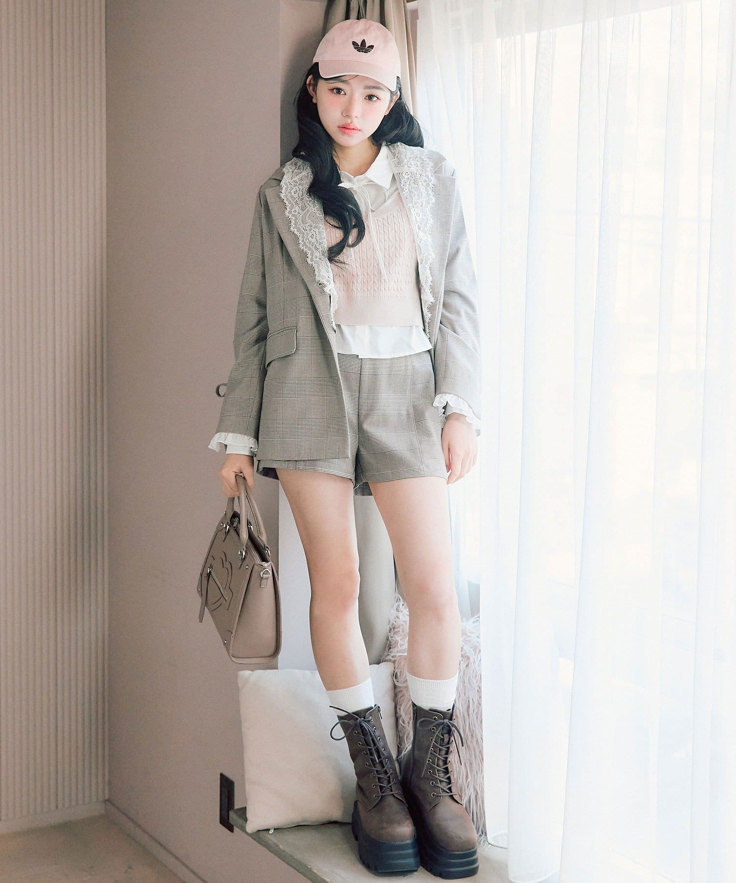 ・ブラウン(チェック柄)/グレー/ネイビーの3色展開