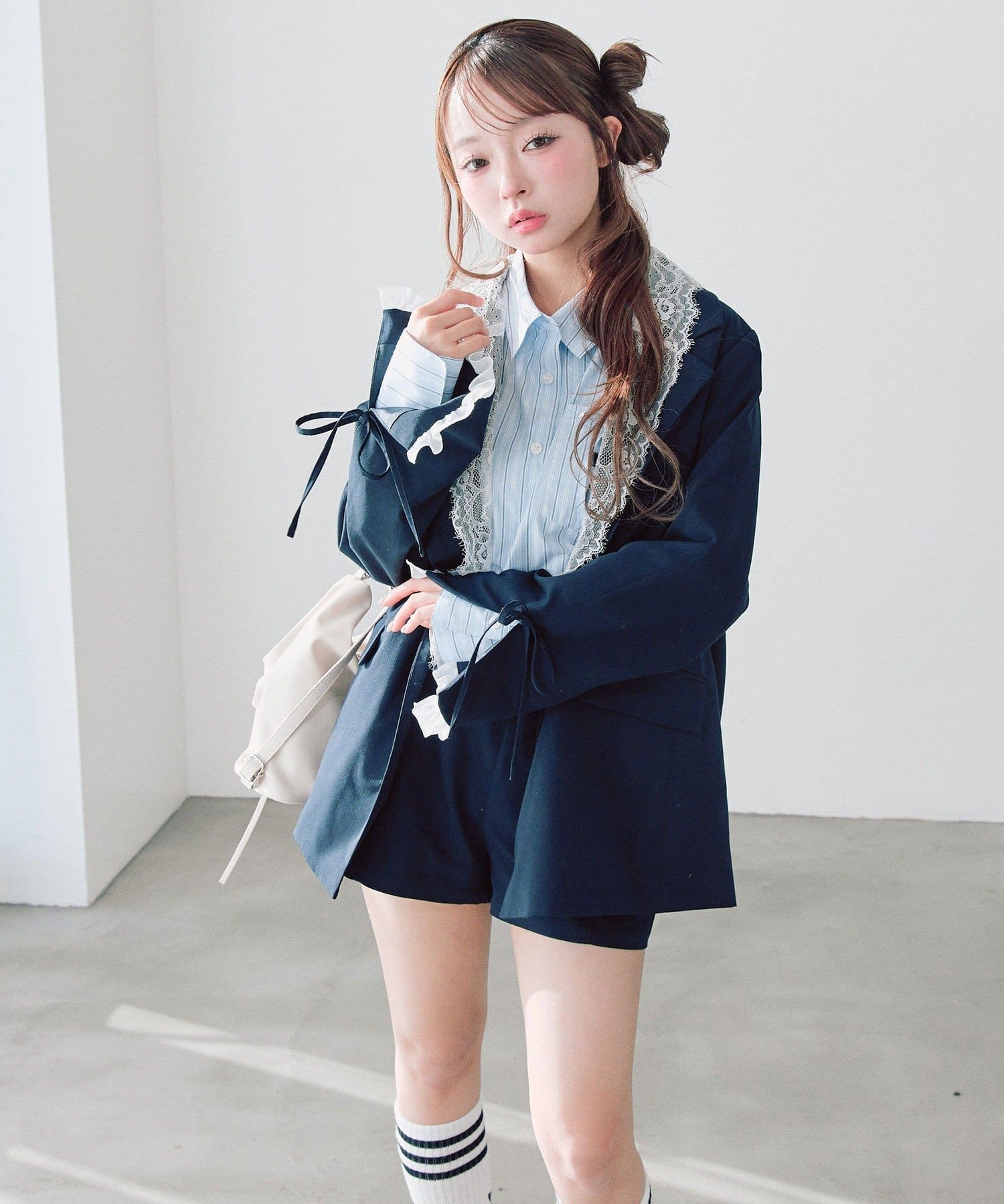 ・レース襟はボタンで取り外しが可能で、華やかにもシンプルにもシーンに合わせた着こなしを楽しめます。