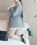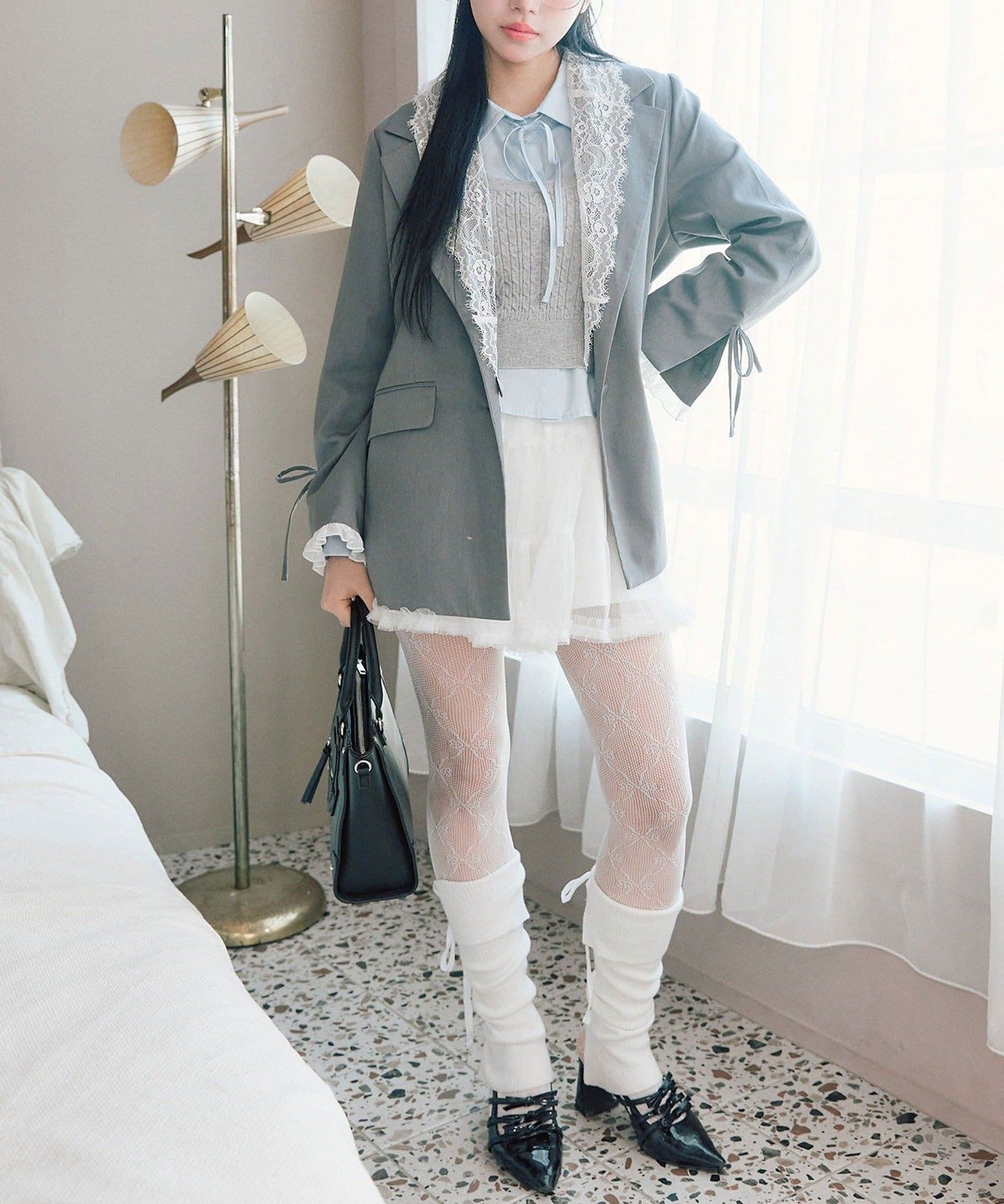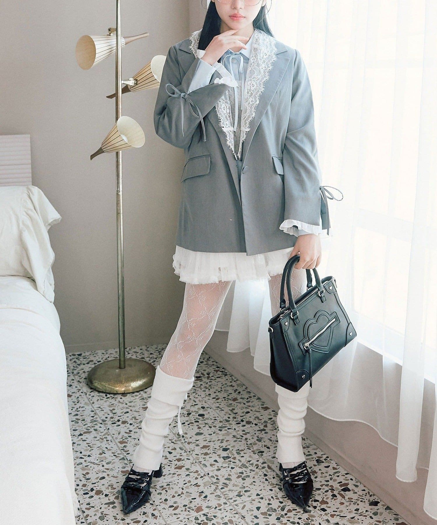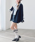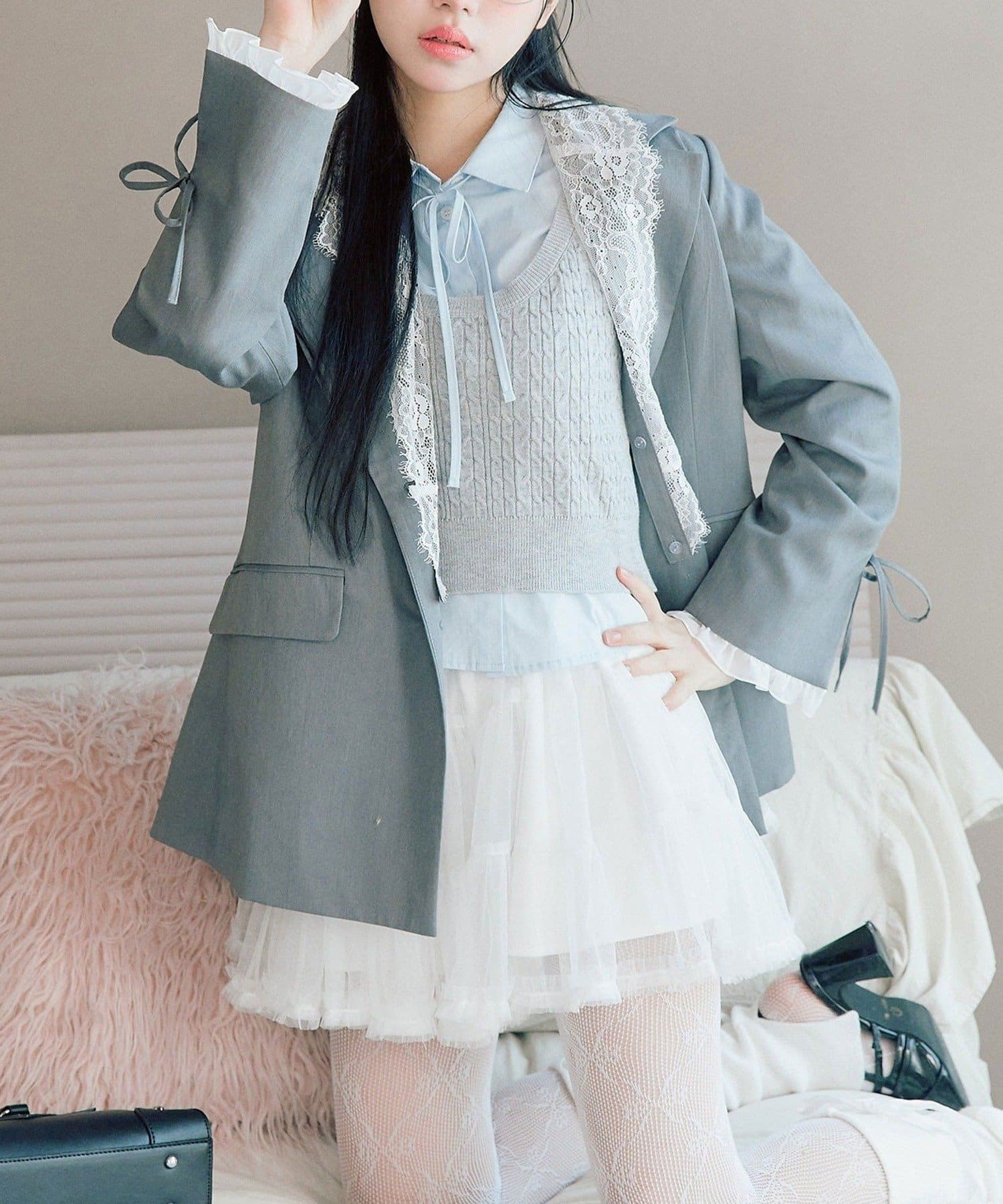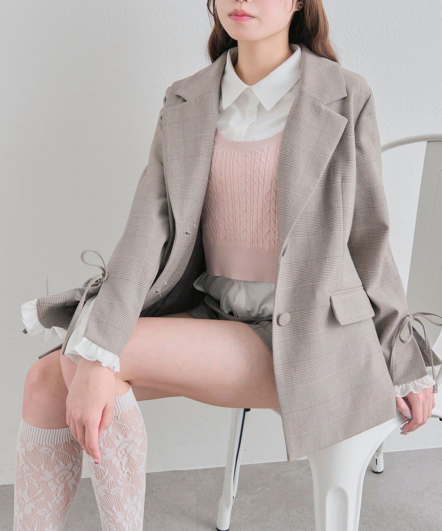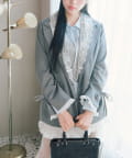 ・袖口のスリットで抜け感を作りつつ、さりげないリボンとフリルで手元までかわいい印象に。