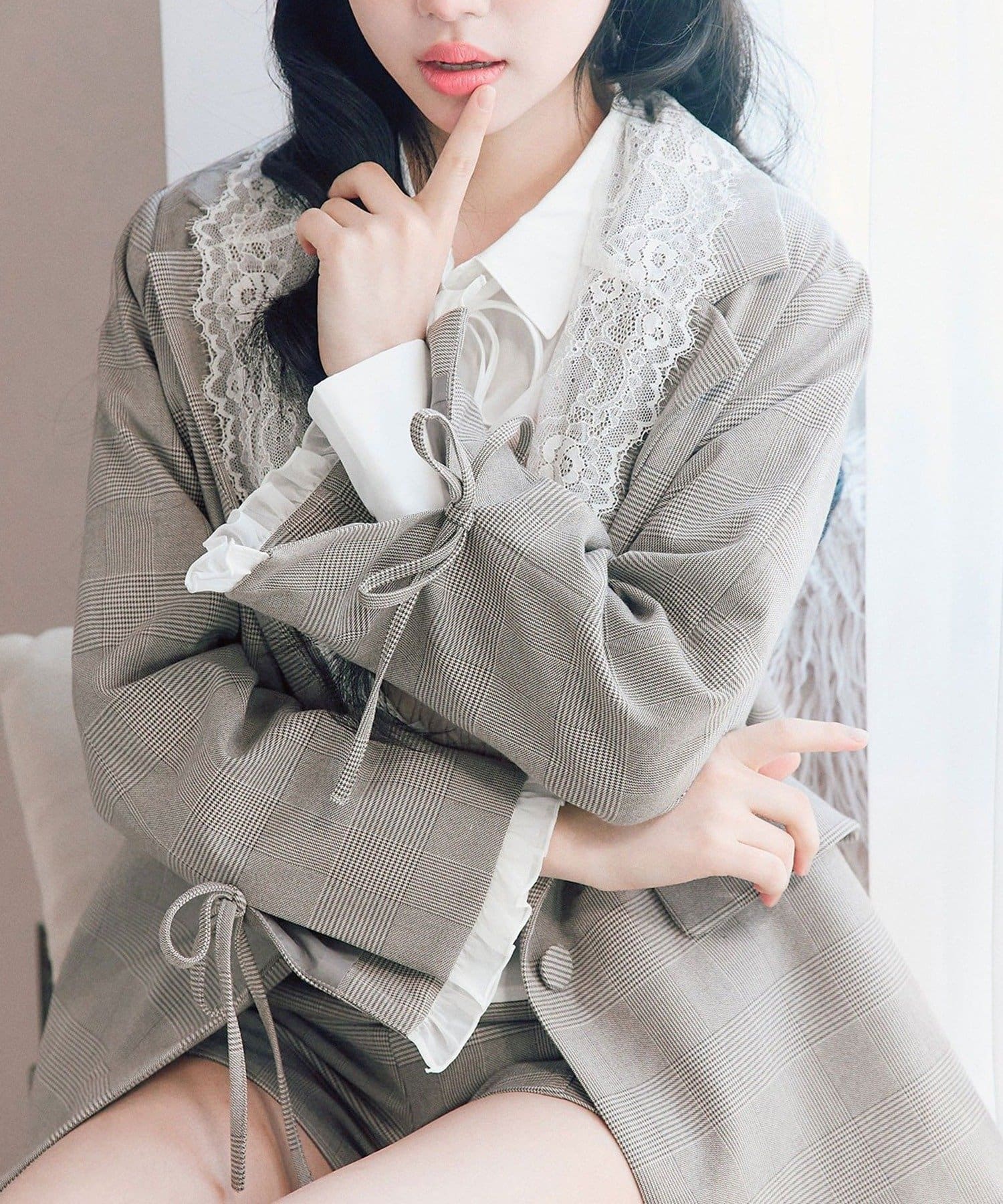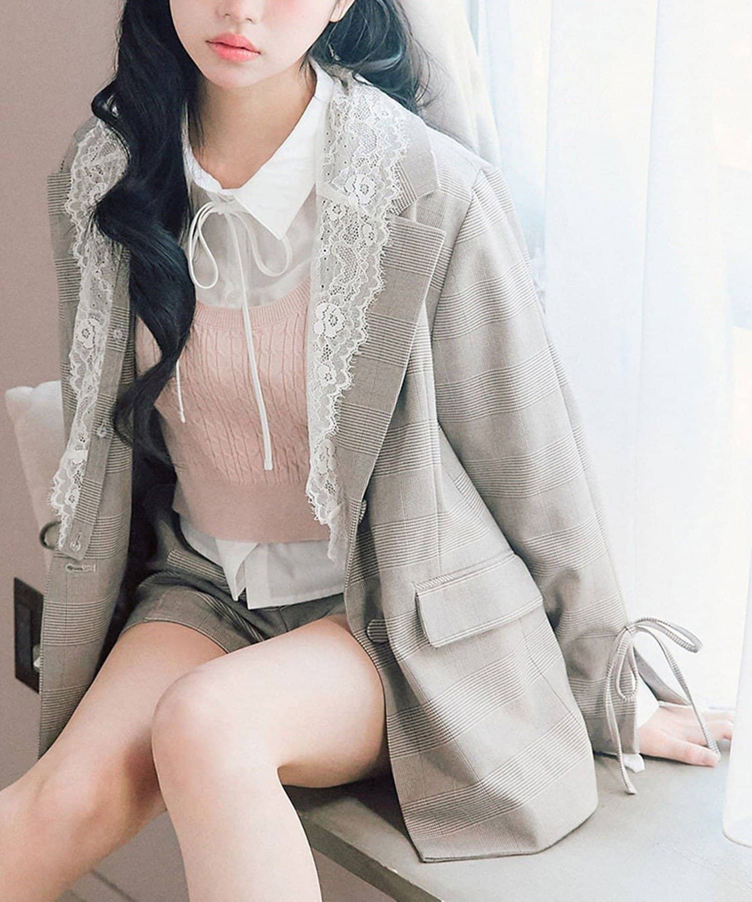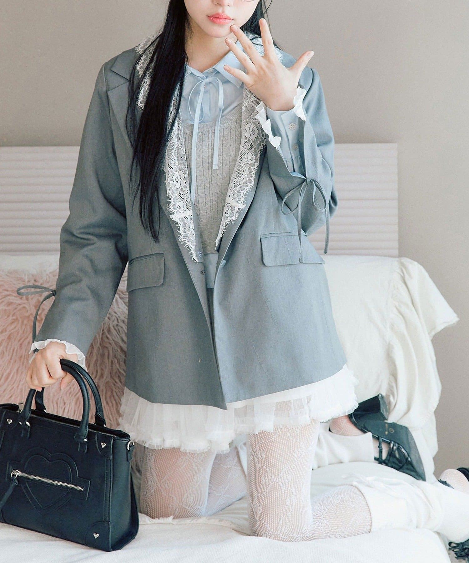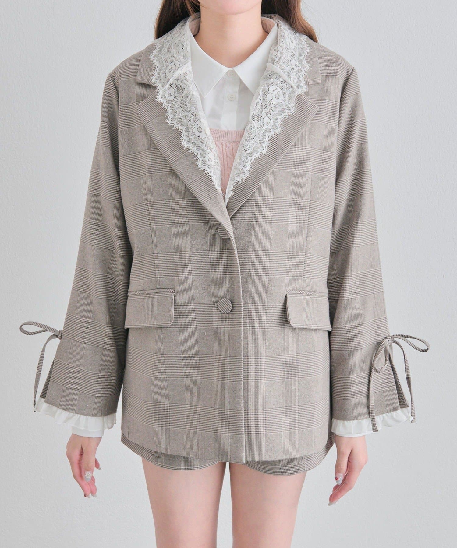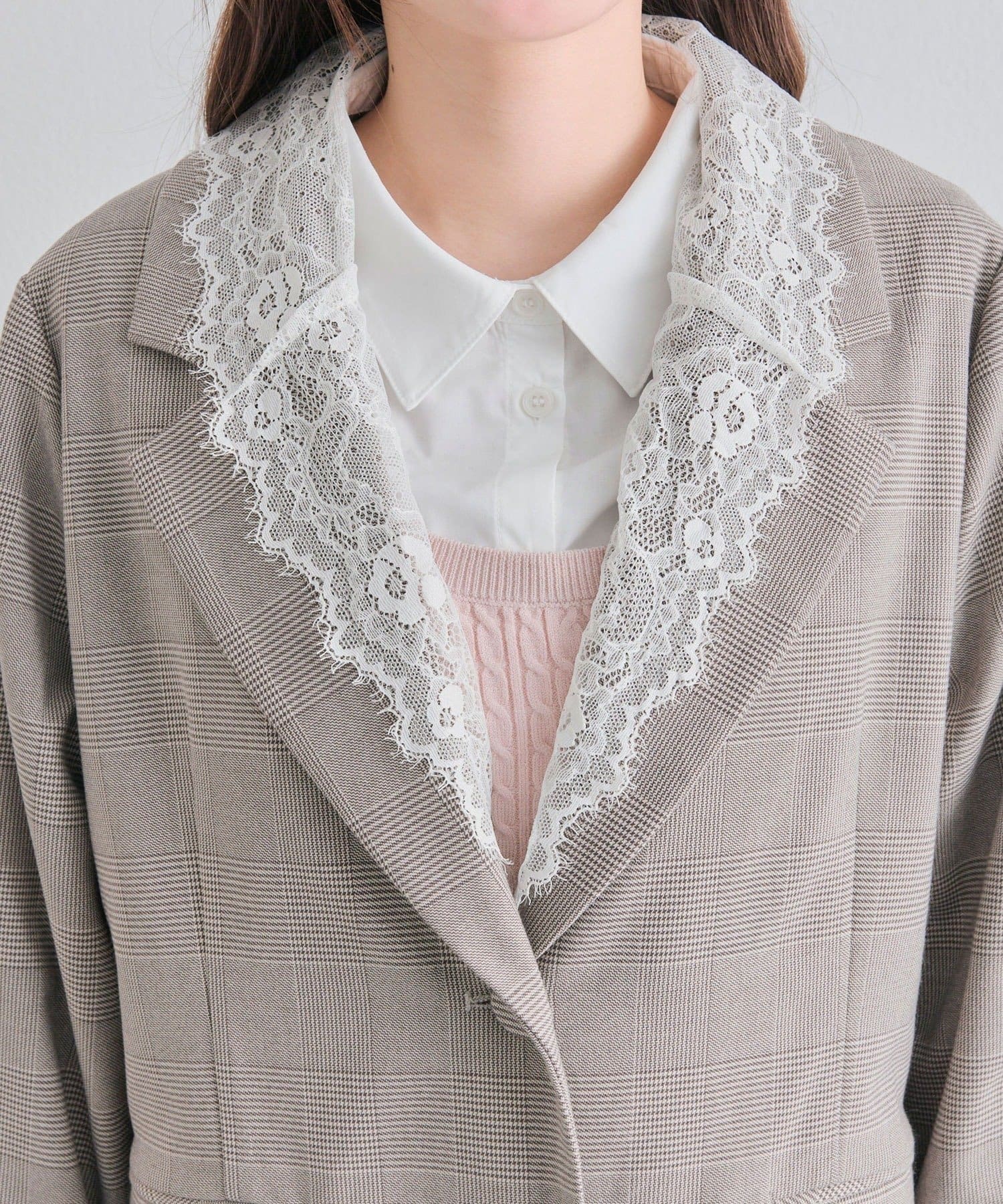 TOP > NICE CLAUP / OLIVE des OLIVE OUTLET > レディース > ジャケット/アウター > その他ジャケット/ブルゾン > 【OLIVE des OLIVE】レース衿ゆるたぽテーラードジャケット