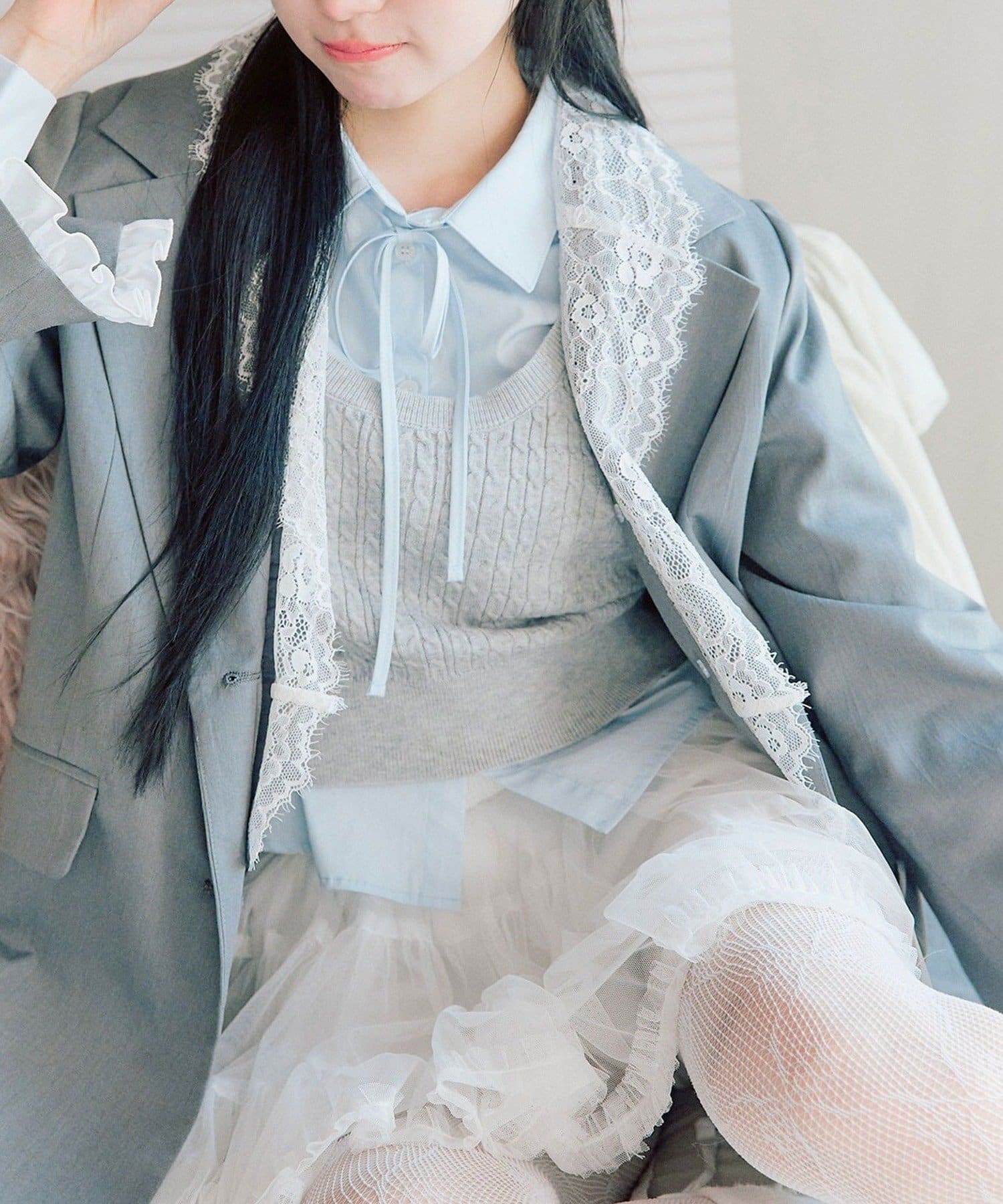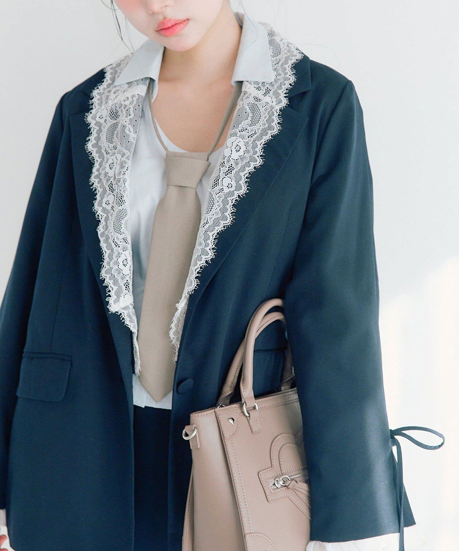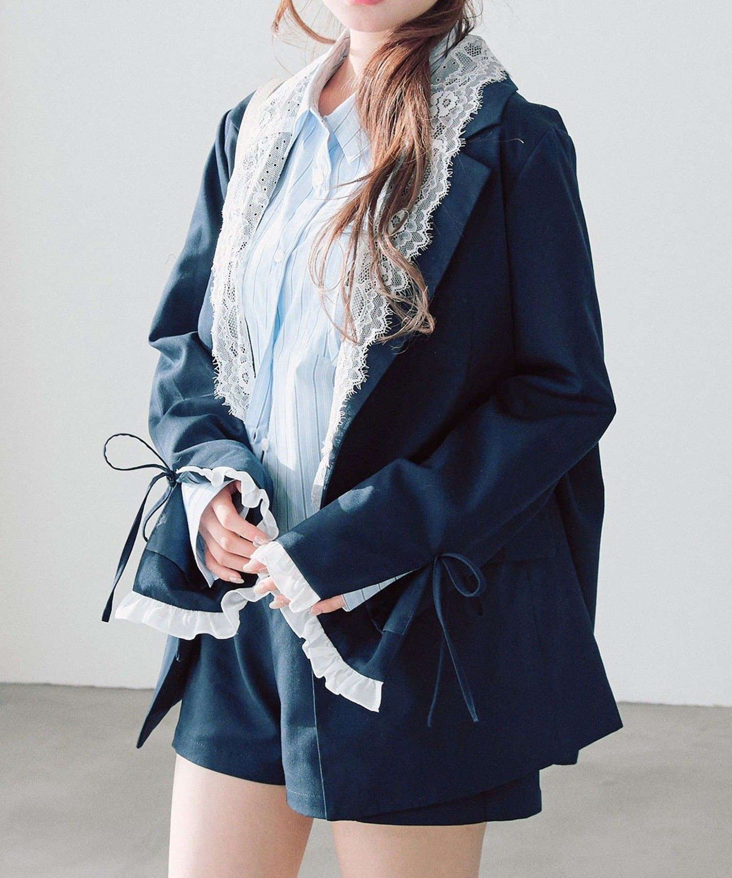 • NICE CLAUP / OLIVE des OLIVE OUTLET(ナイスクラップ  / オリーブ デ オリーブ アウトレット) 【OLIVE des OLIVE】レース衿ゆるたぽテーラードジャケット