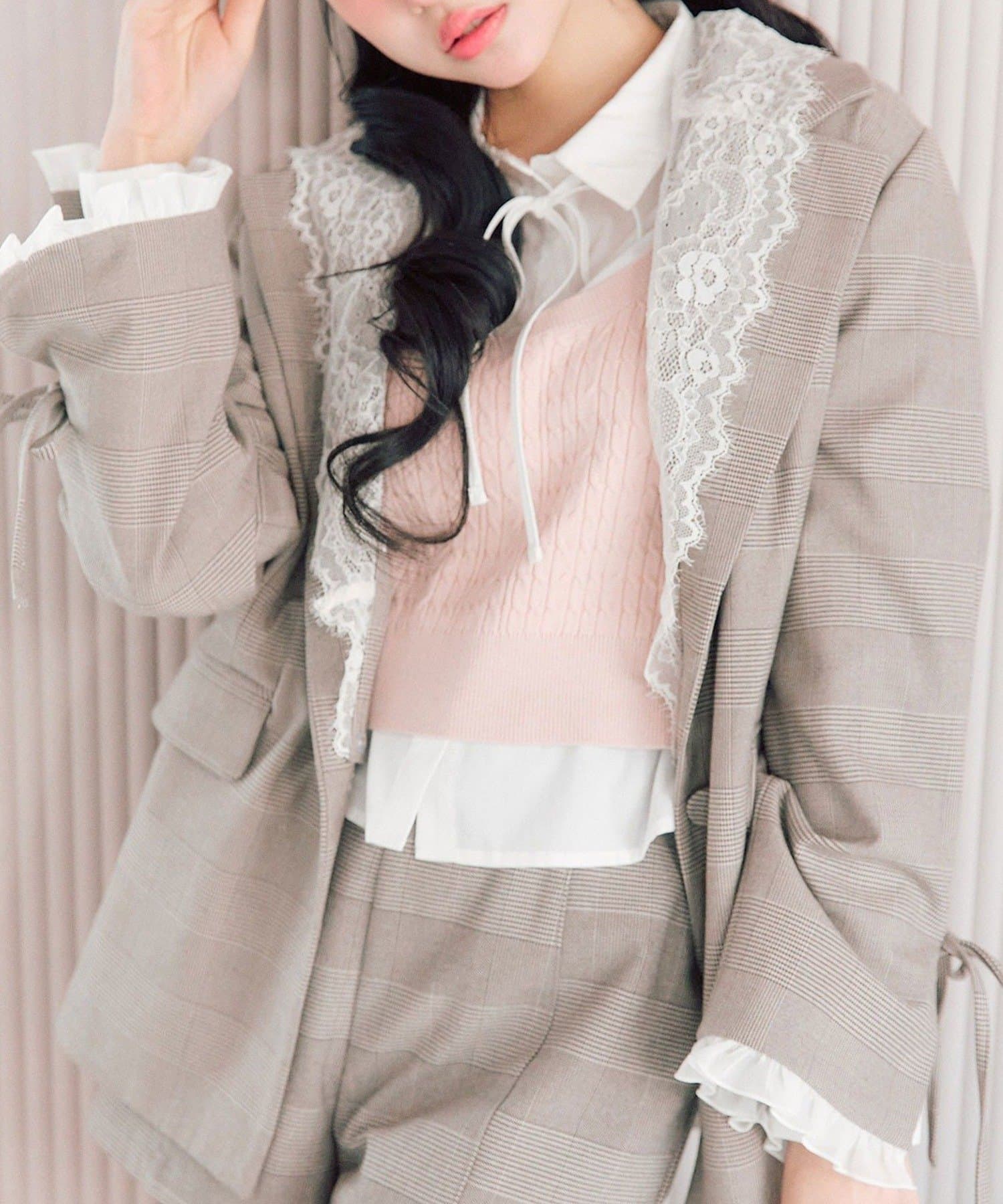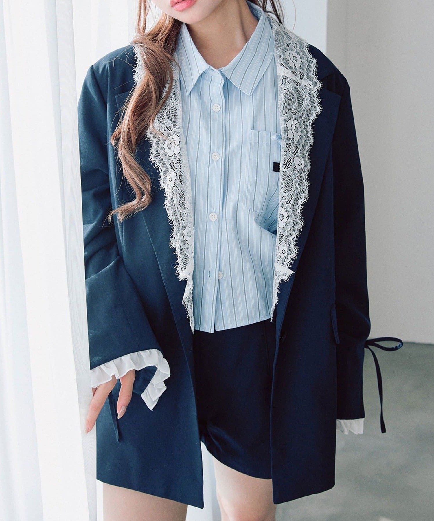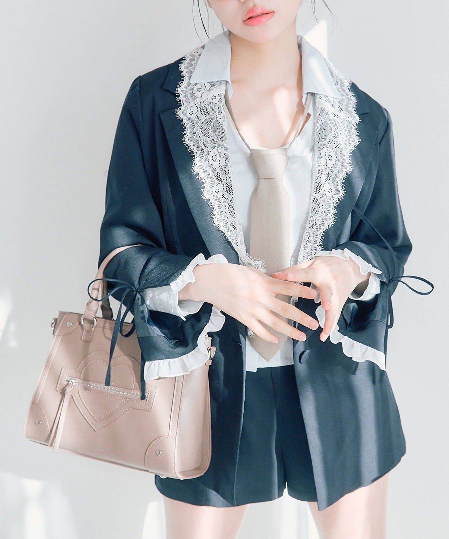 • NICE CLAUP / OLIVE des OLIVE OUTLET(ナイスクラップ  / オリーブ デ オリーブ アウトレット) 【OLIVE des OLIVE】レース衿ゆるたぽテーラードジャケット