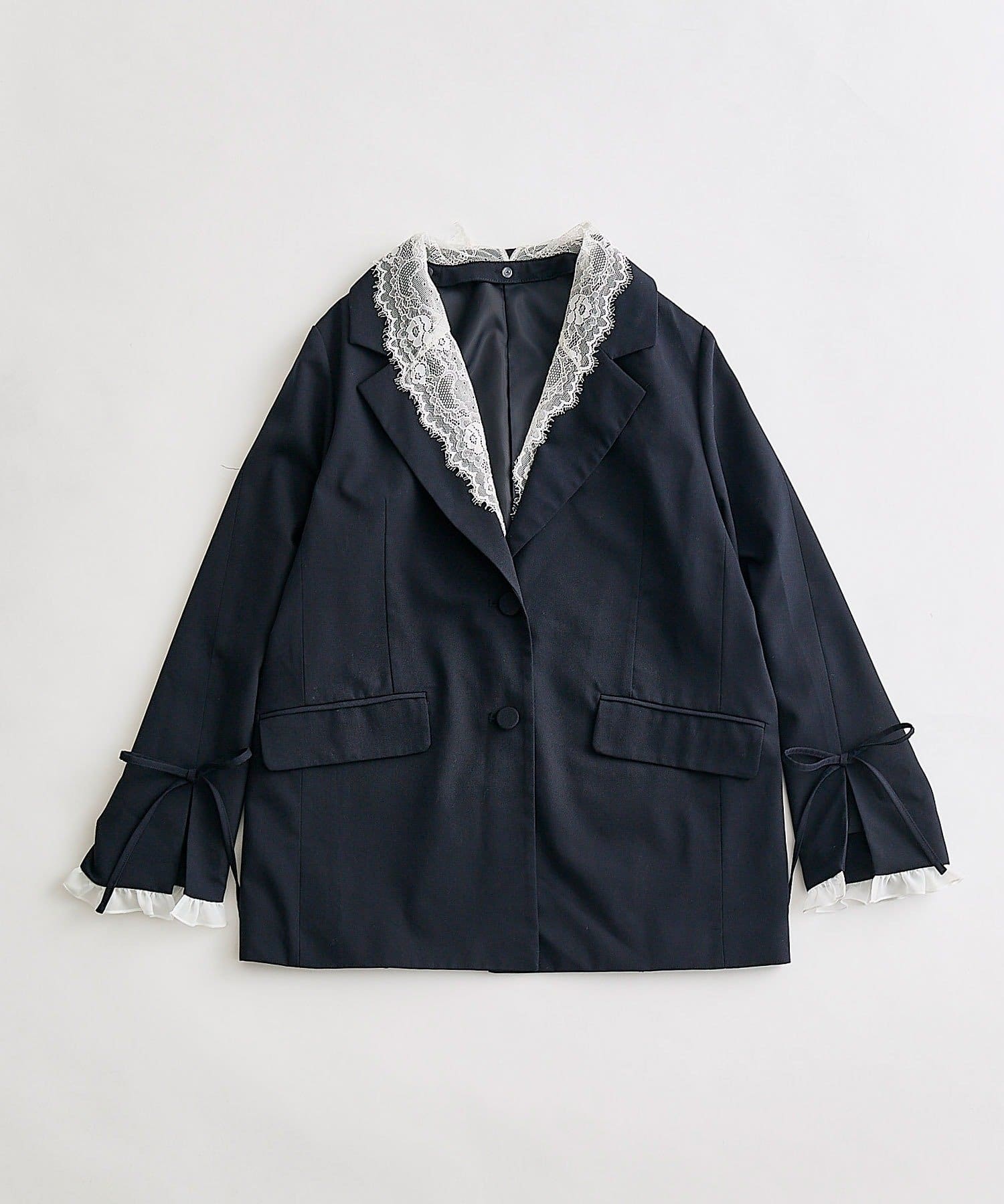 NICE CLAUP / OLIVE des OLIVE OUTLET(ナイスクラップ  / オリーブ デ オリーブ アウトレット) 【OLIVE des OLIVE】レース衿ゆるたぽテーラードジャケット
