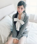 ・袖口のスリットで抜け感を作りつつ、さりげないリボンとフリルで手元までかわいい印象に。