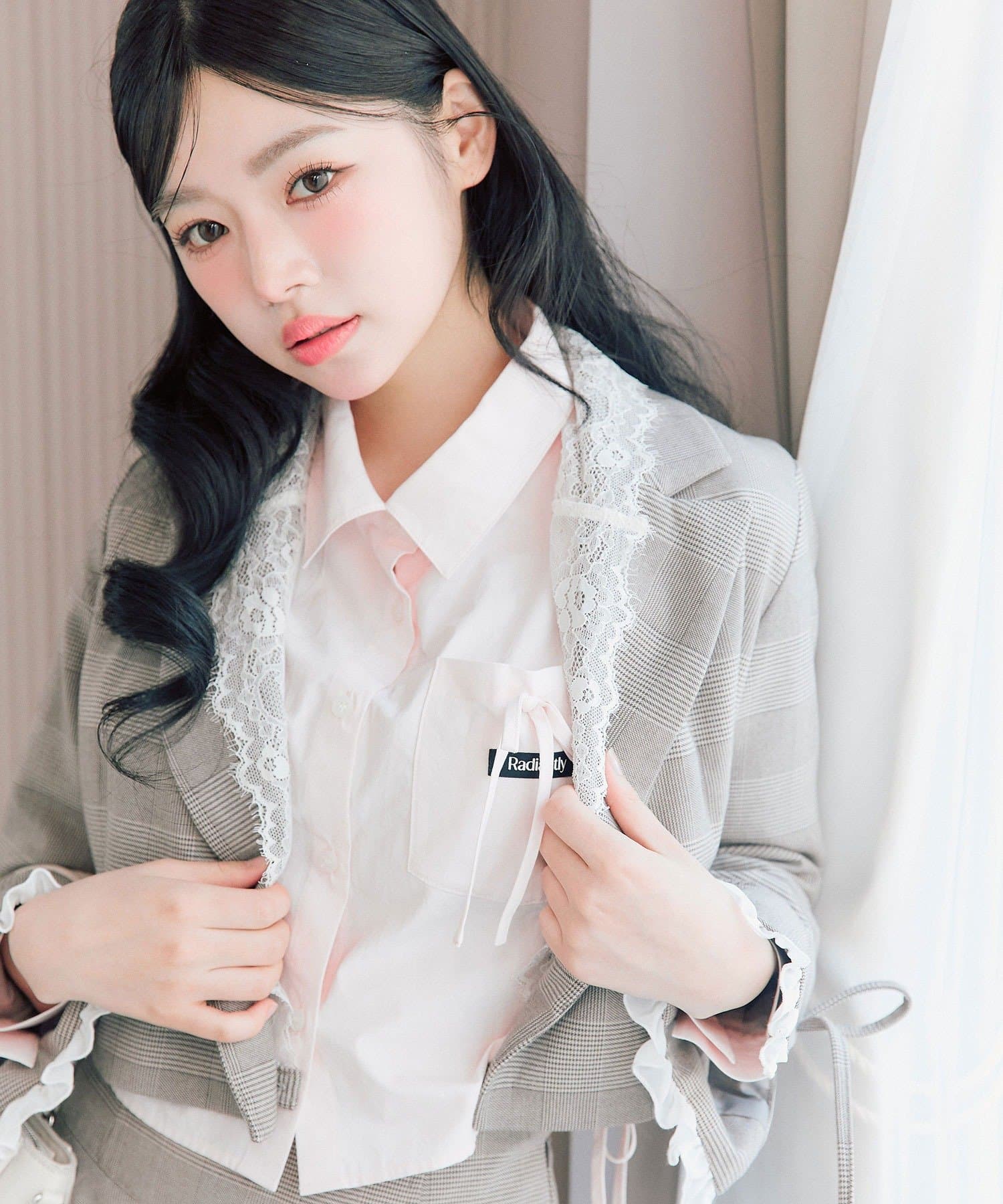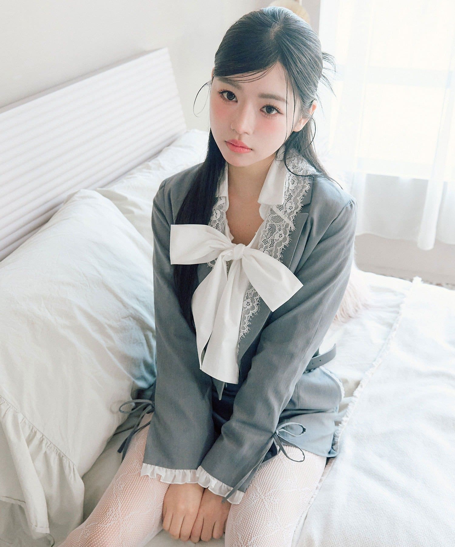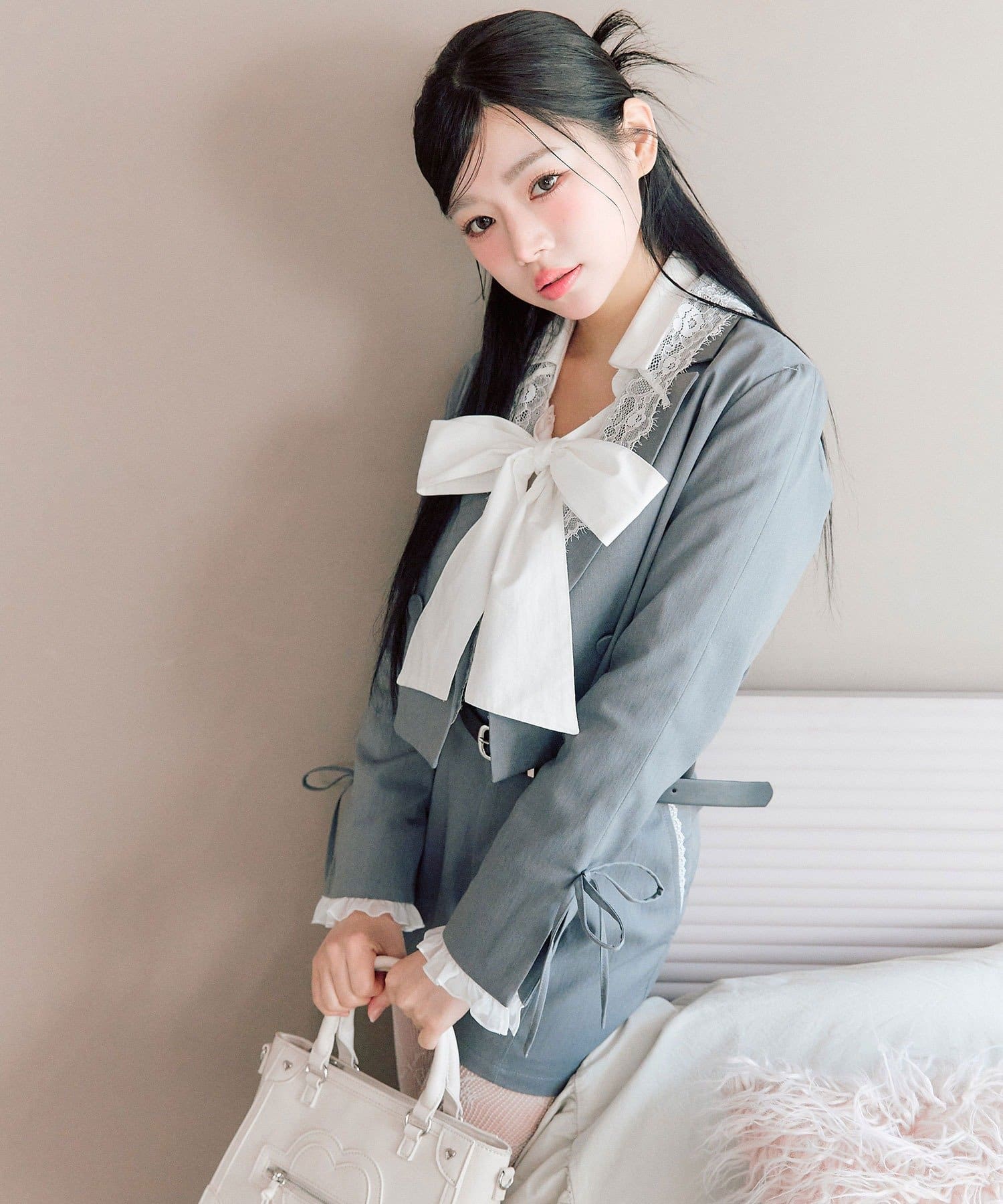 ・レース襟はボタンで取り外しが可能で、華やかにもシンプルにもシーンに合わせた着こなしを楽しめます。