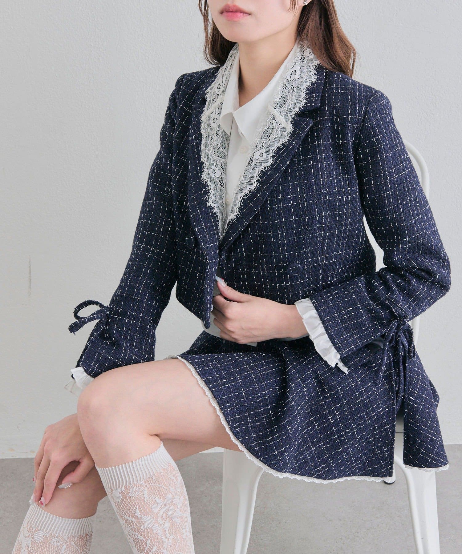 ・かっちりしがちなジャケットに、オリーブらしい甘さを詰め込んだこだわりのデザイン。