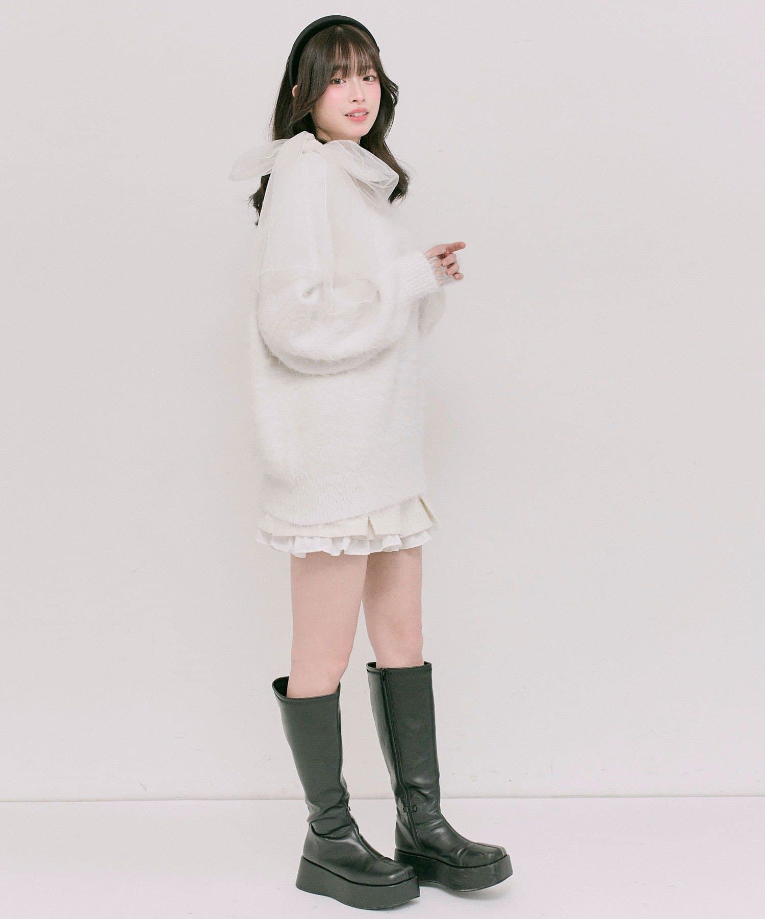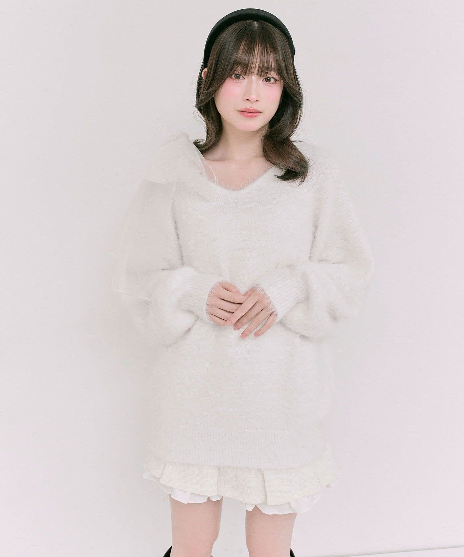 ふわふわのチュールリボンが目を惹くニットチュニック