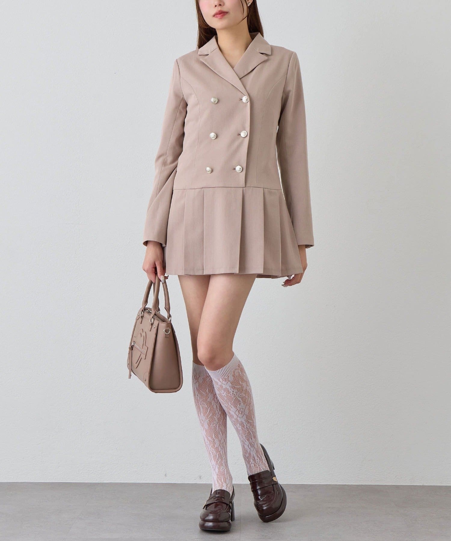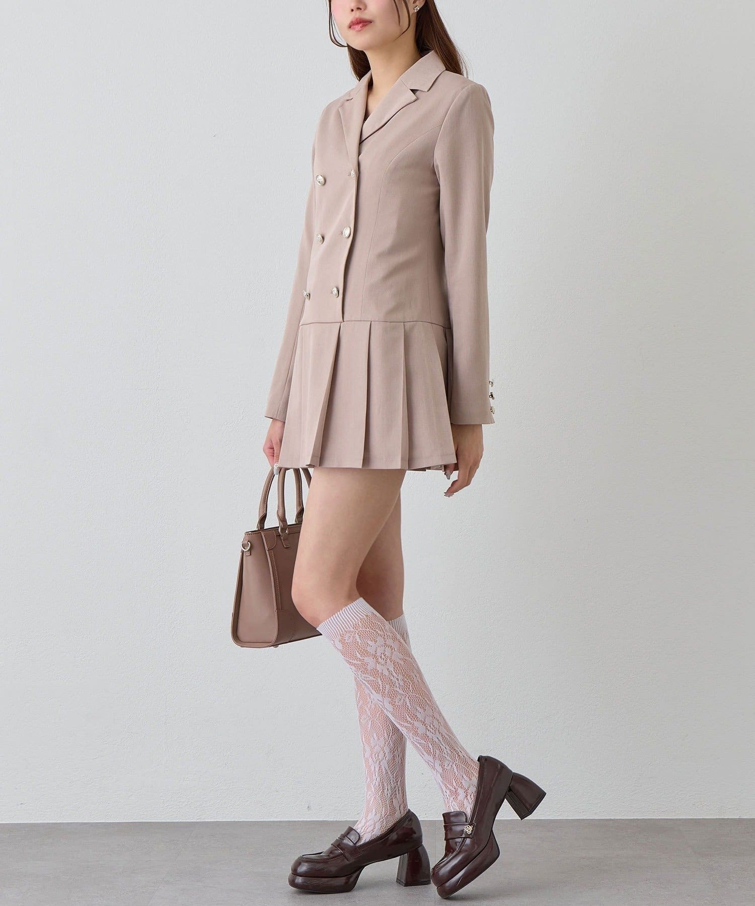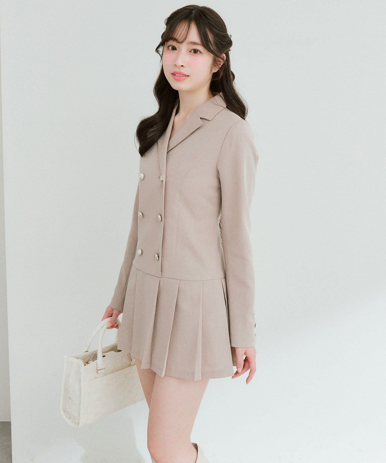 ・裾はプリーツデザインで動くたびに揺れ、女性らしさをプラスしてくれます。