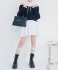 ・ショート丈のニットとふんわり広がるミニワンピで、自然とスタイルアップも◎