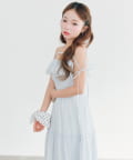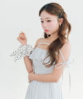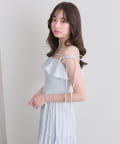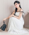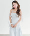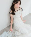 ・さりげないフリルや腕にかかる華奢なリボンが女性らしさを女性らしさを引き立てるデザイン。