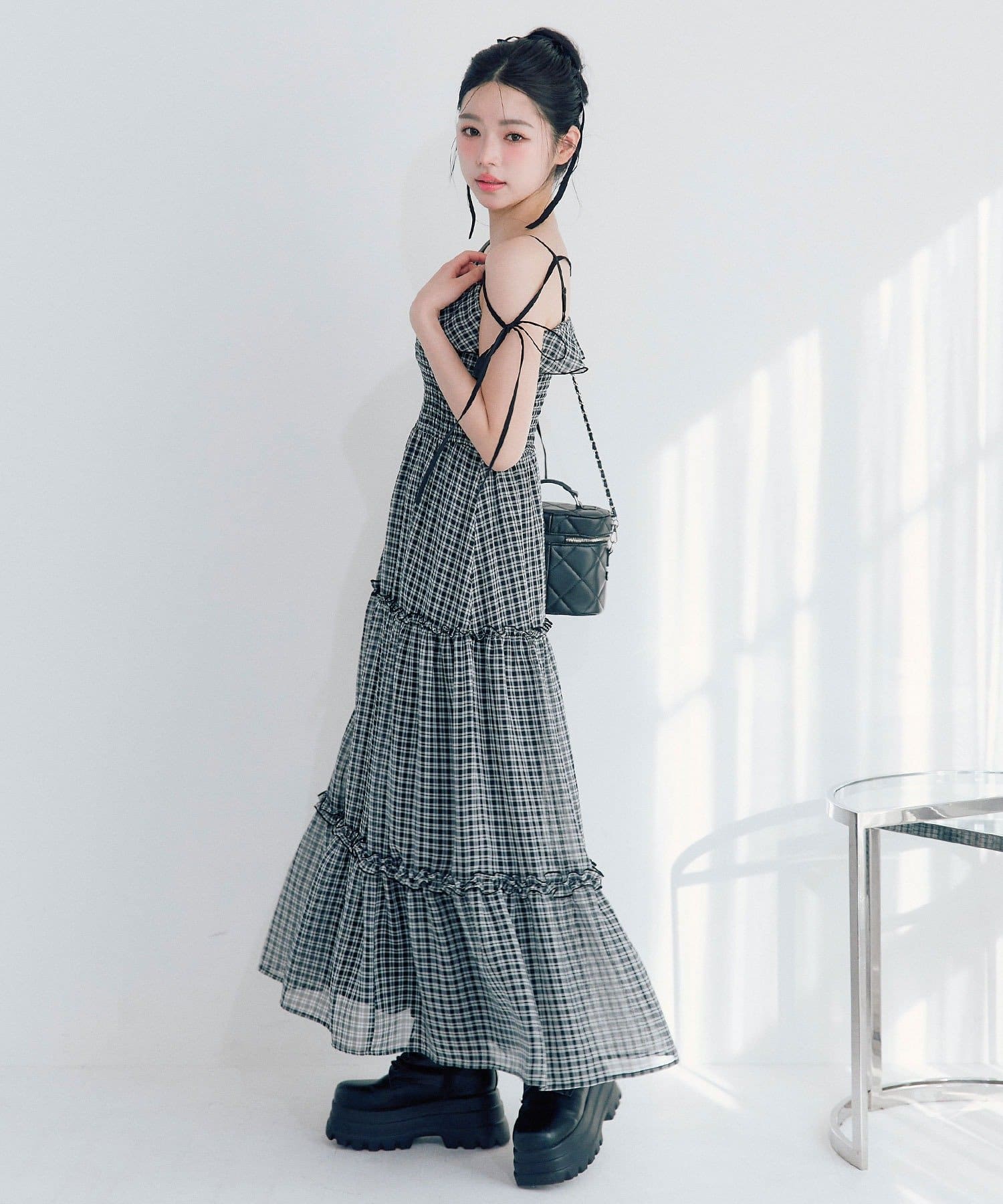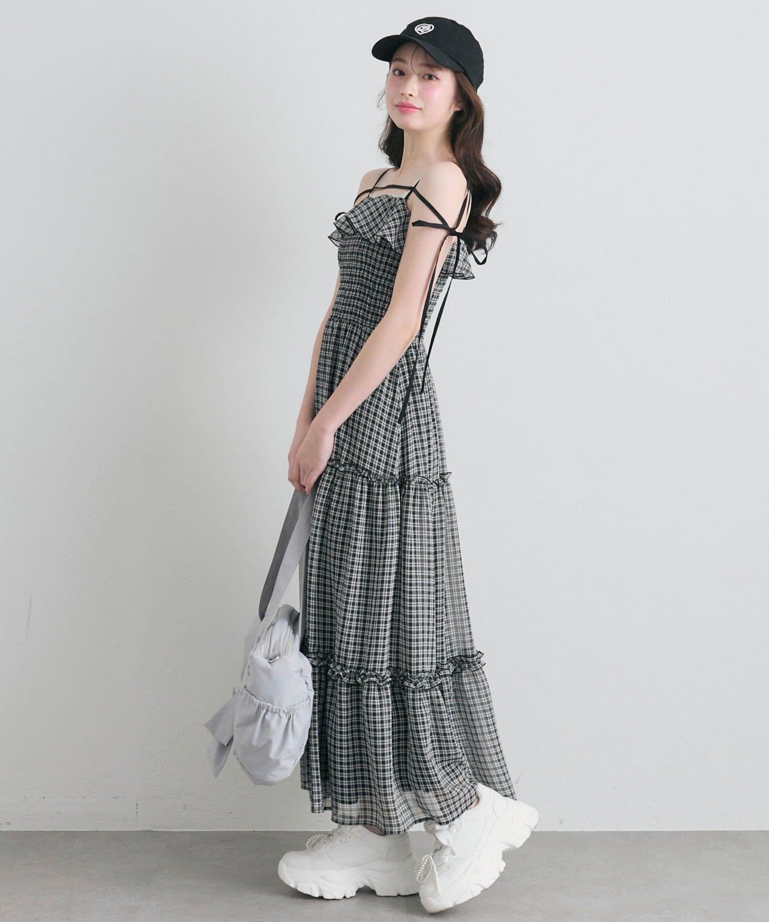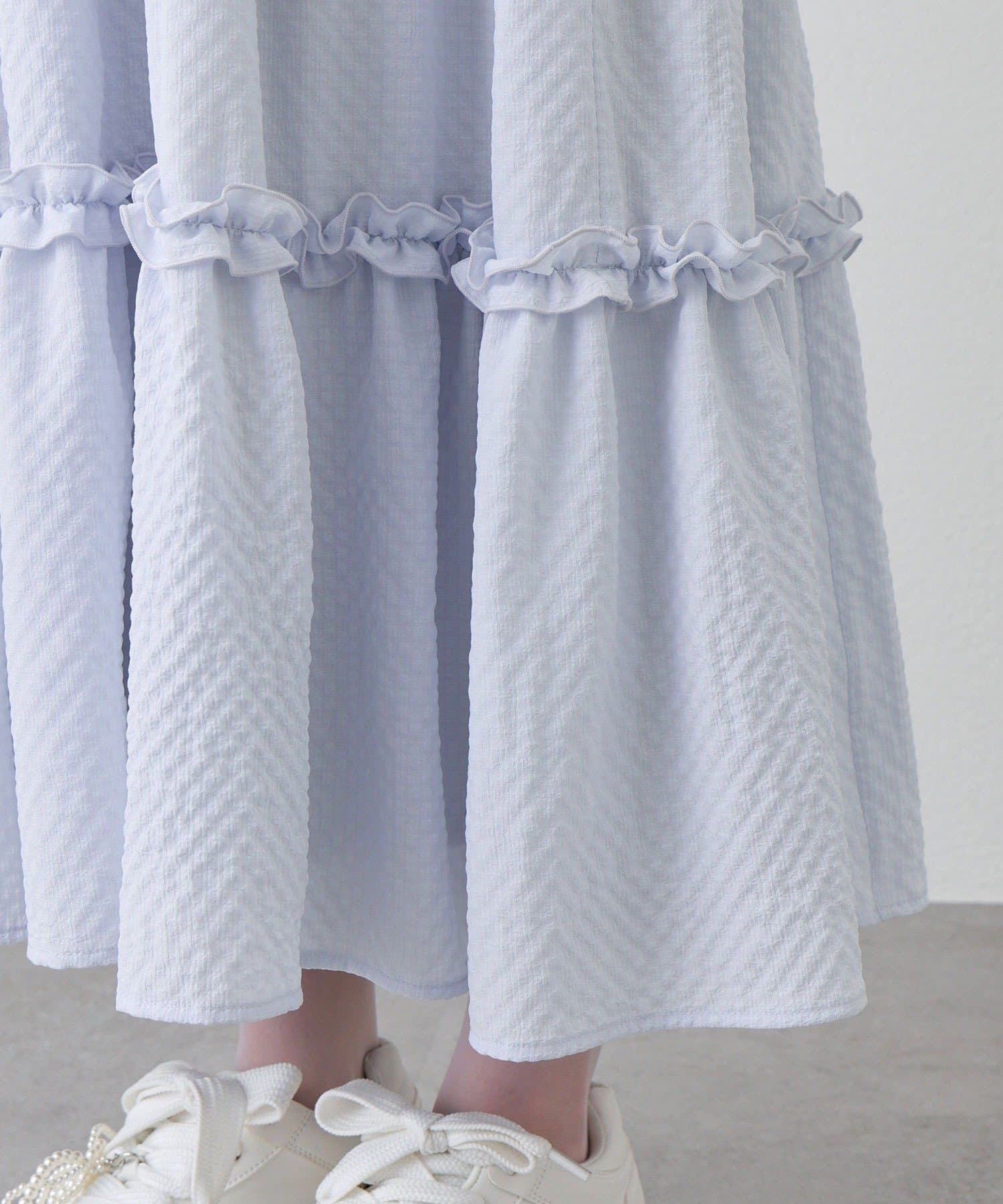 ・ふんわり広がるティアードシルエットが、動くたび柔らかく揺れて大人かわいい印象に。
