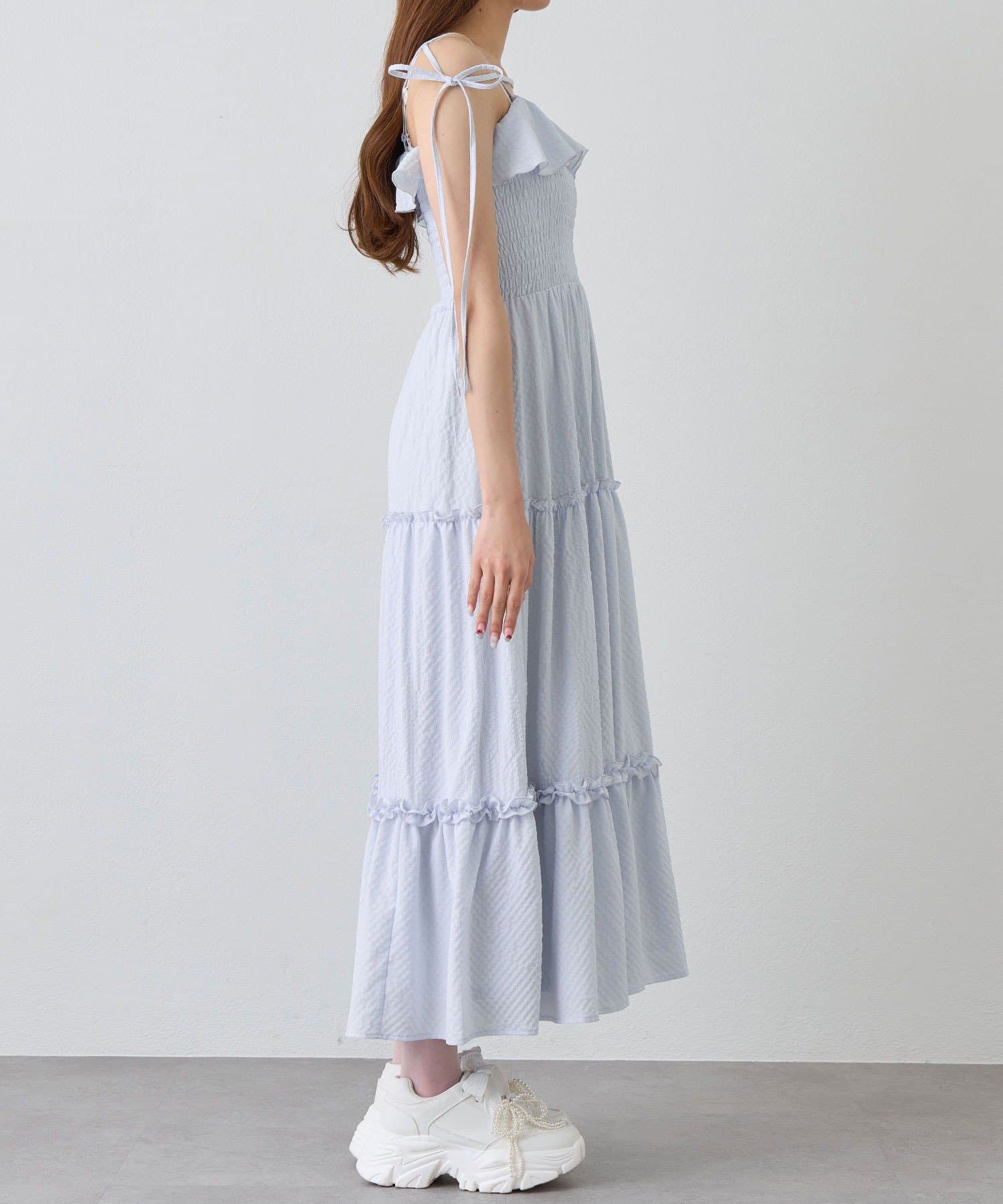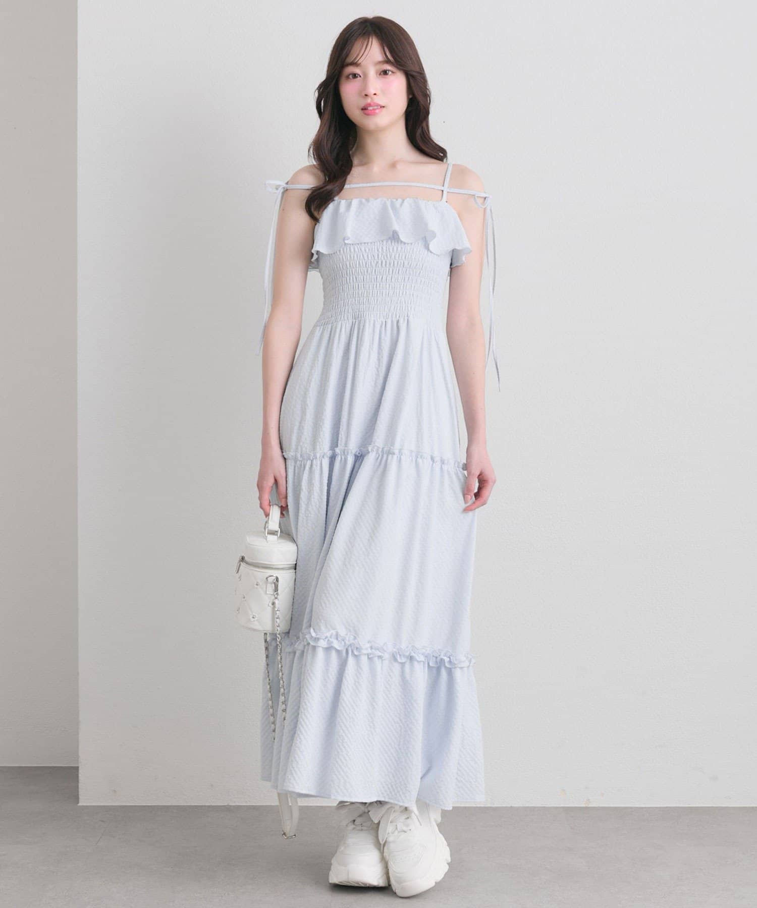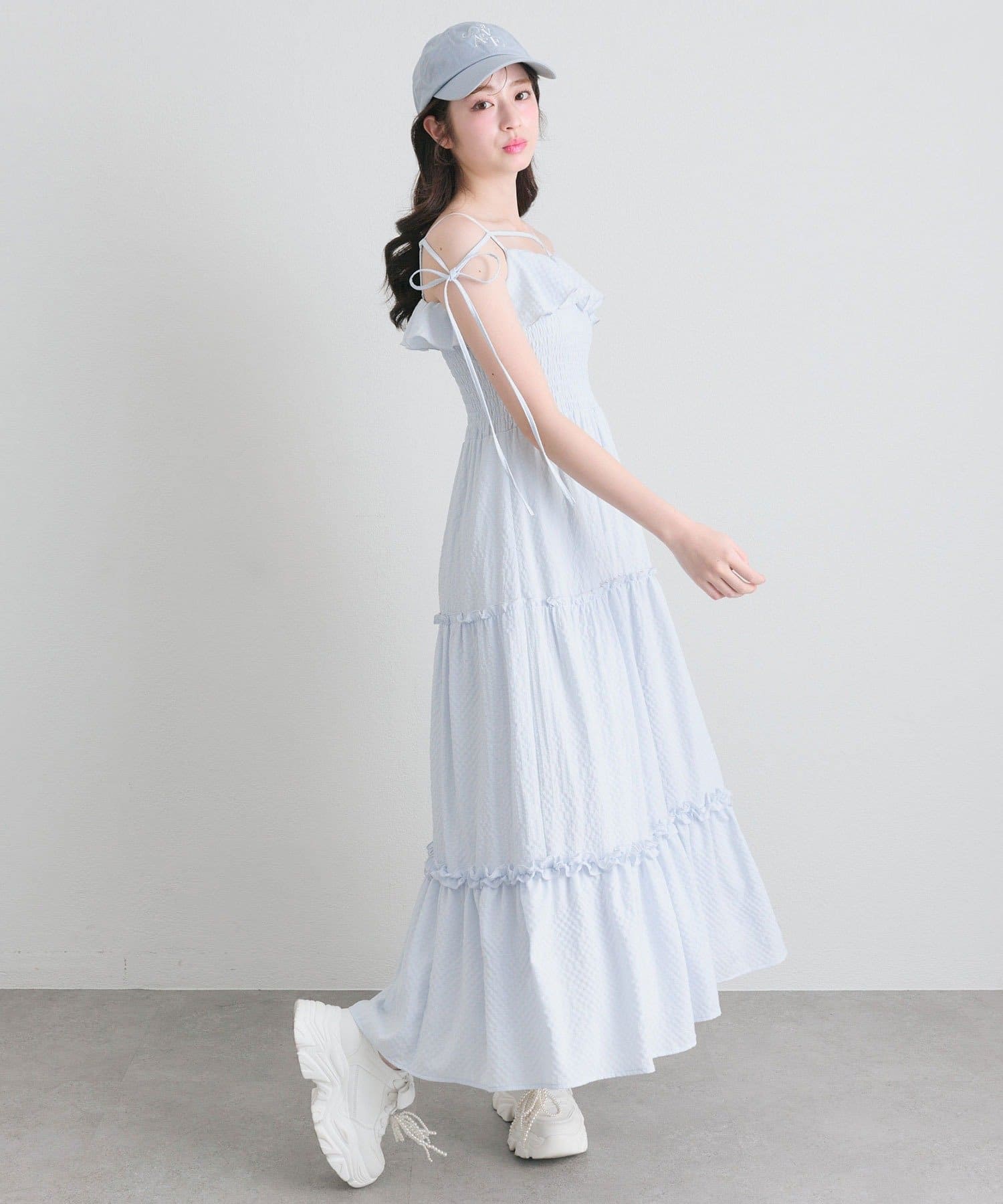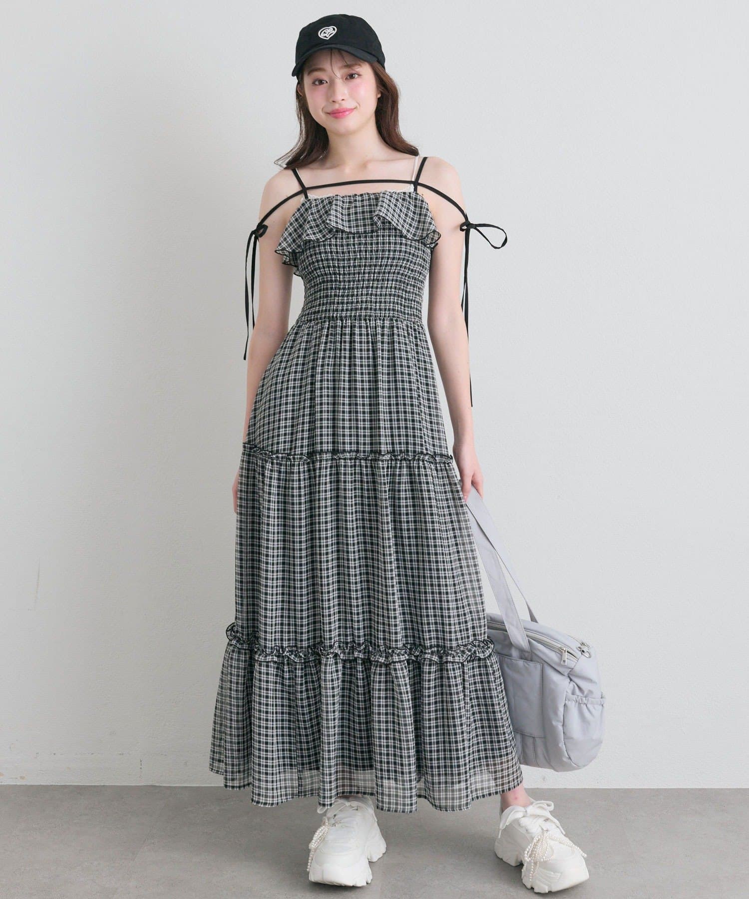 ・ふんわり広がるティアードシルエットが、動くたび柔らかく揺れて大人かわいい印象に。