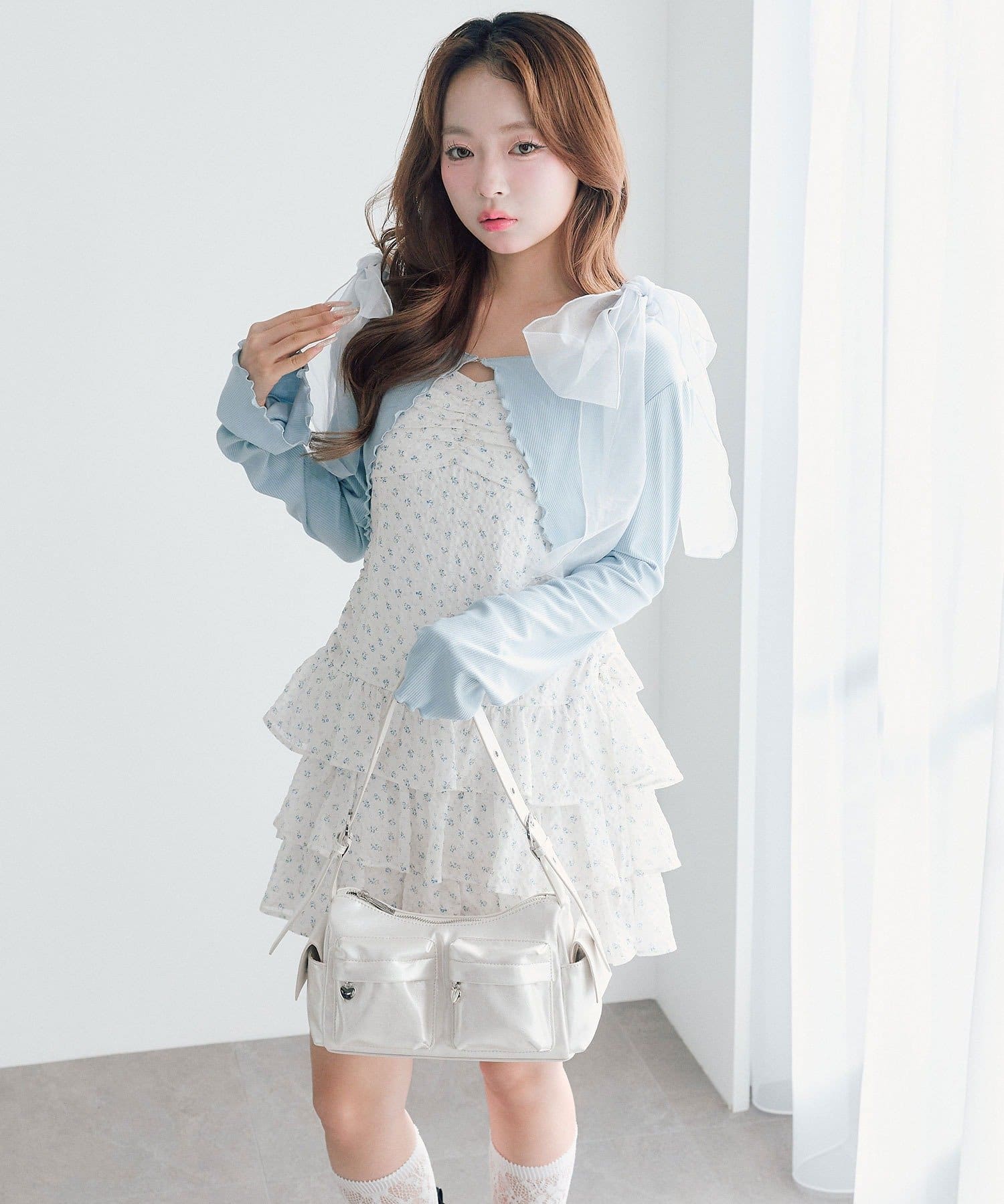 肩リボンミニキャミワンピとボレロセット