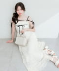 ・フリルや腕にかかる華奢なリボンが女性らしさを引き立てるデザインです。