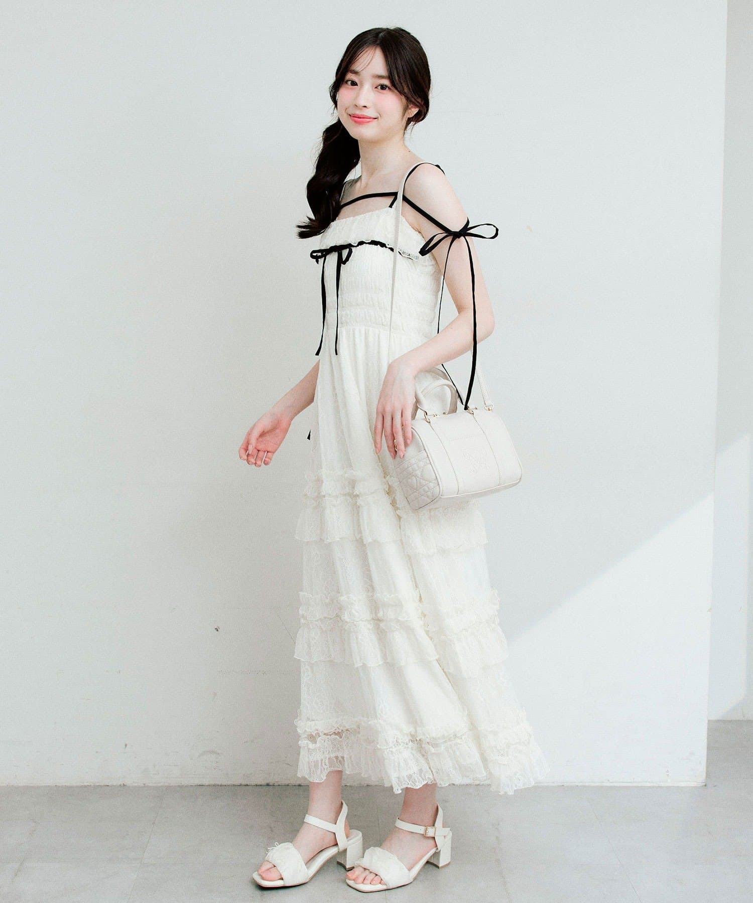 ・1枚でさらっと着ると、リボンやシルエットがより映えておすすめです。