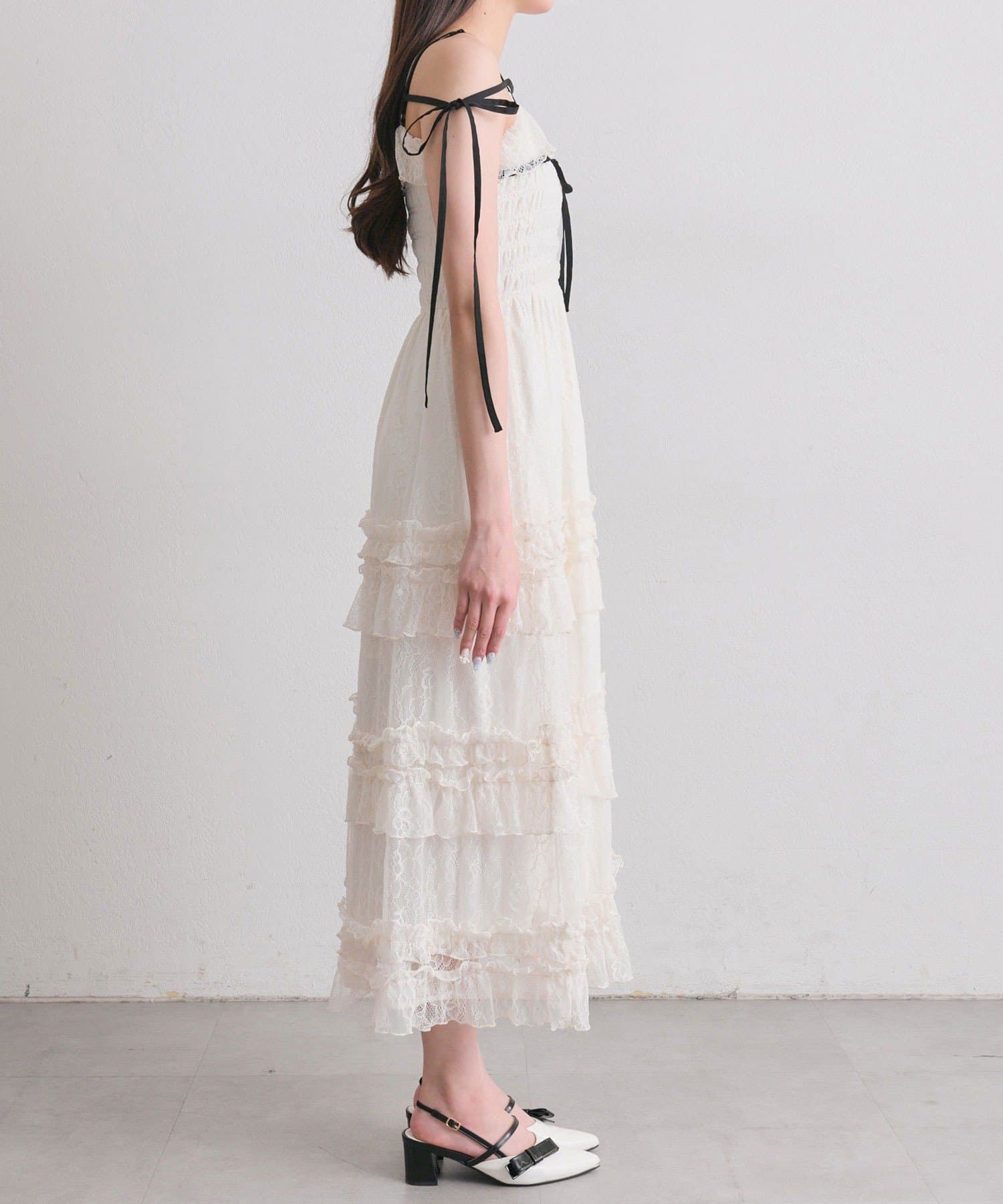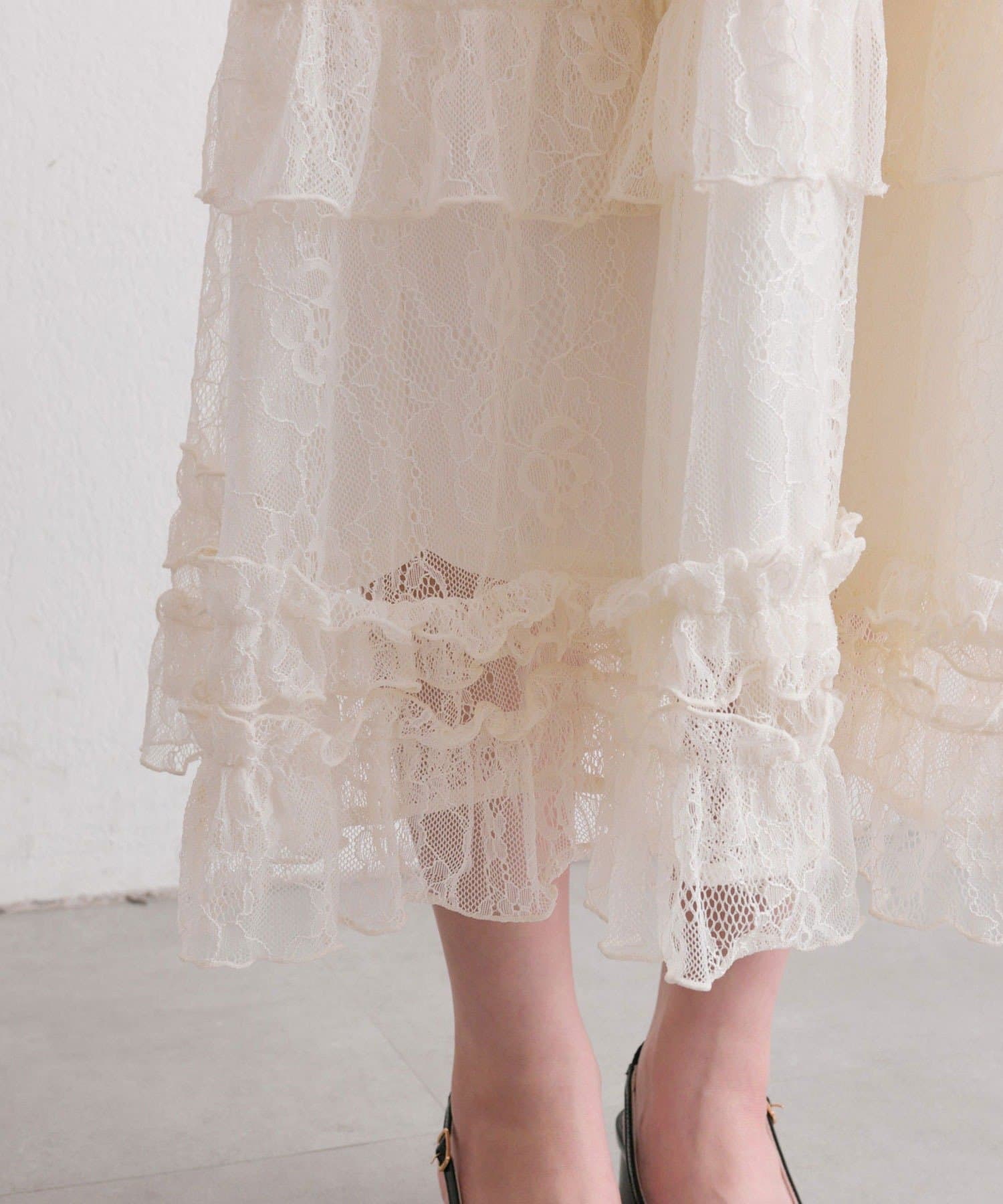 ・ふわふわのティアードが動くたびにふんわりと揺れて、1枚で華やかな印象になります。