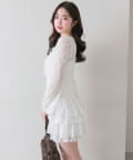 レースティアードワンピとカーデのセット