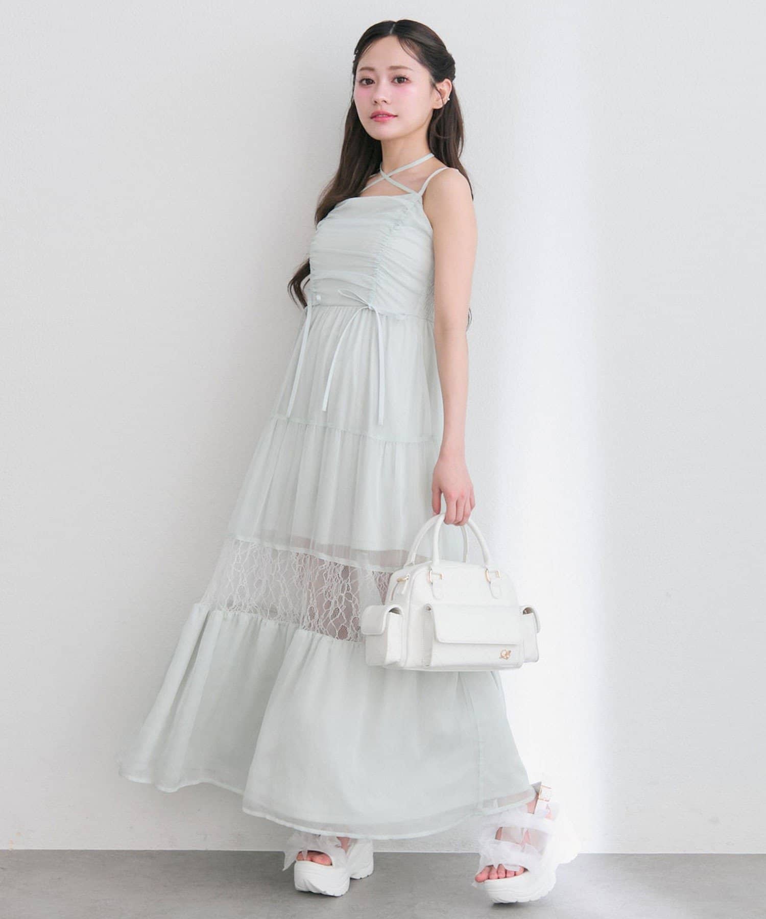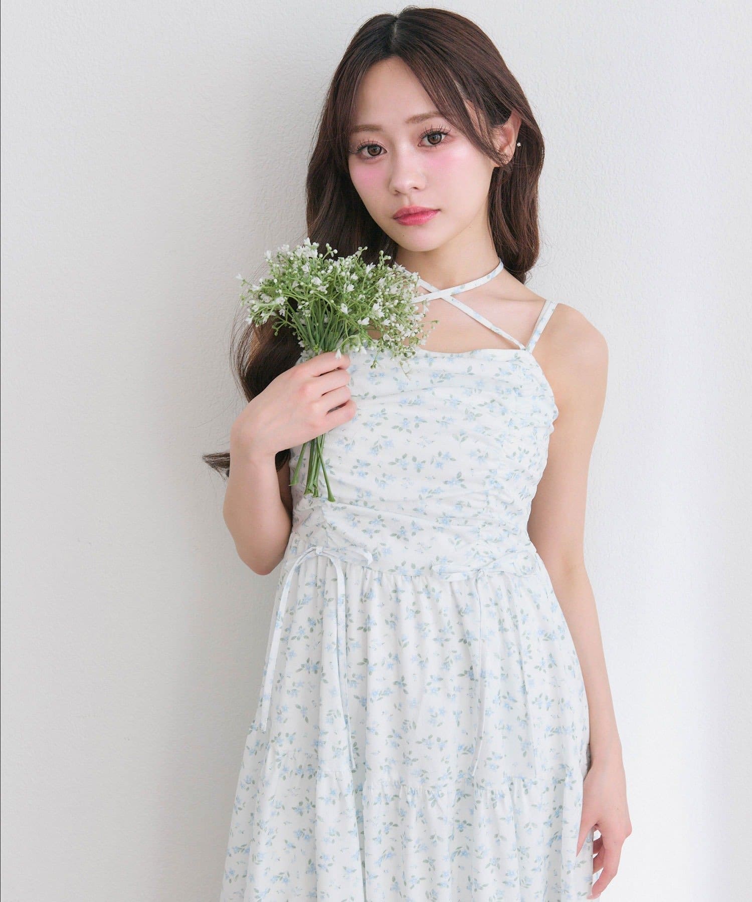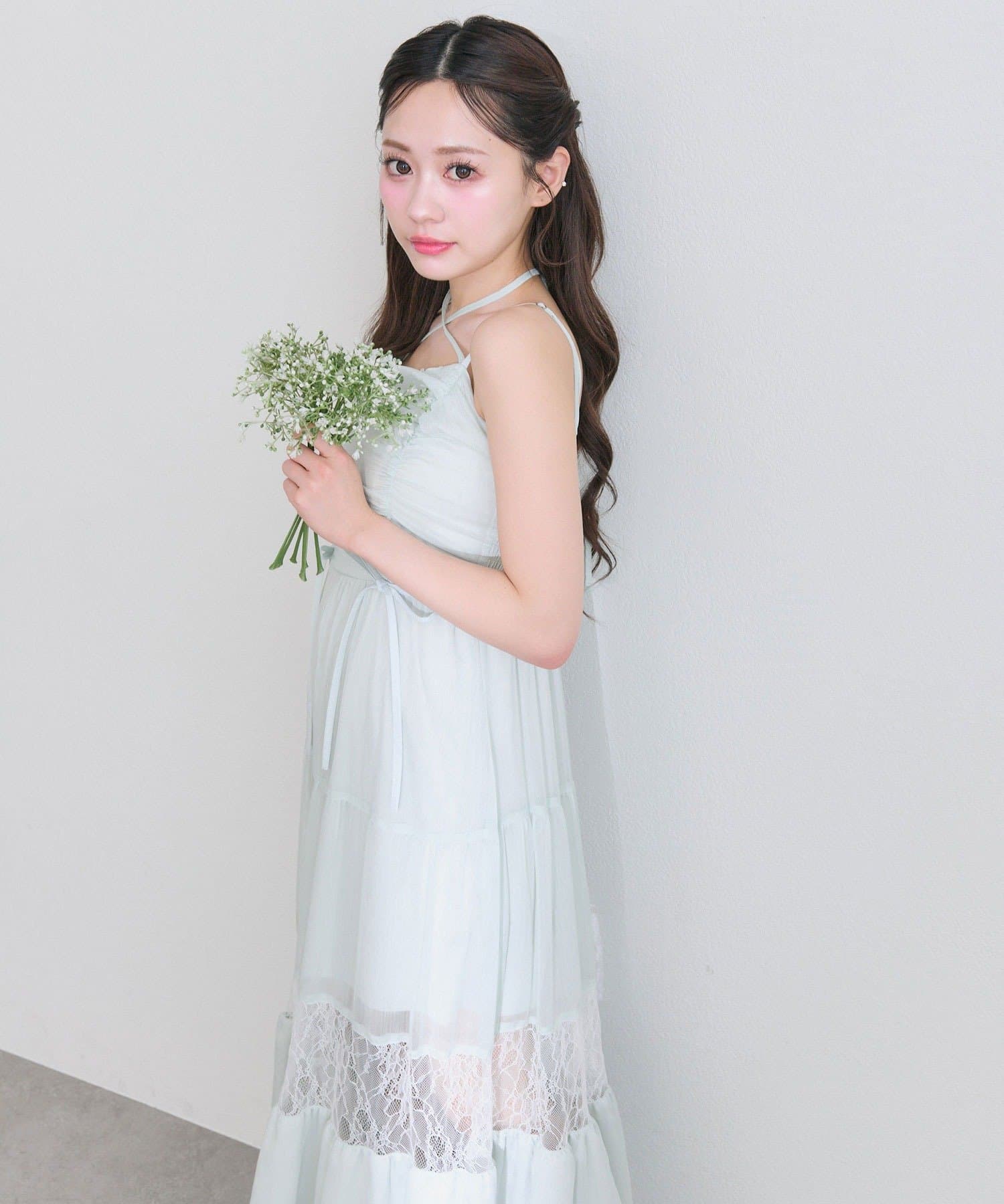 ・胸元のドロストリボンやホルターネックで、どこから見てもかわいいデザインです。