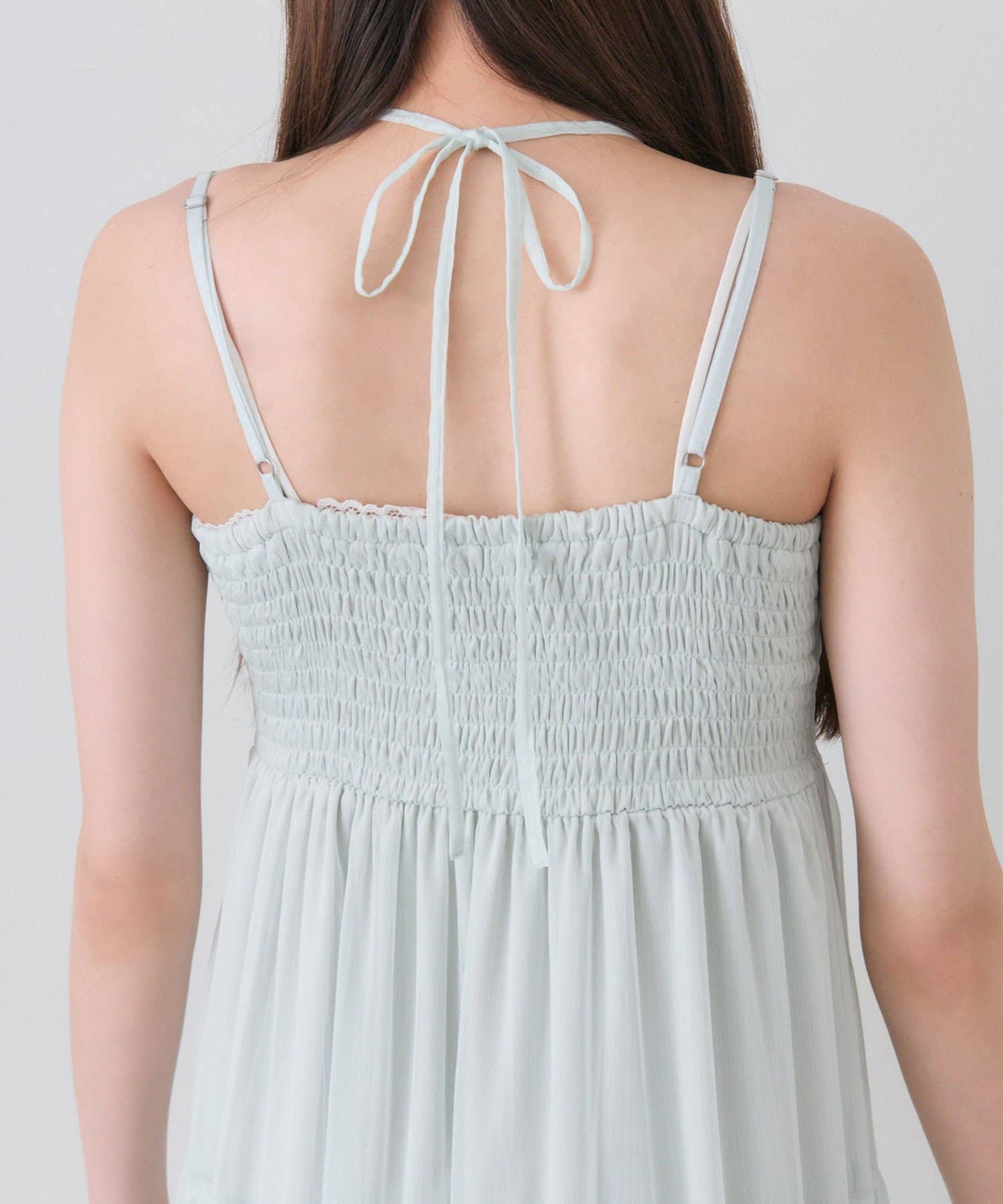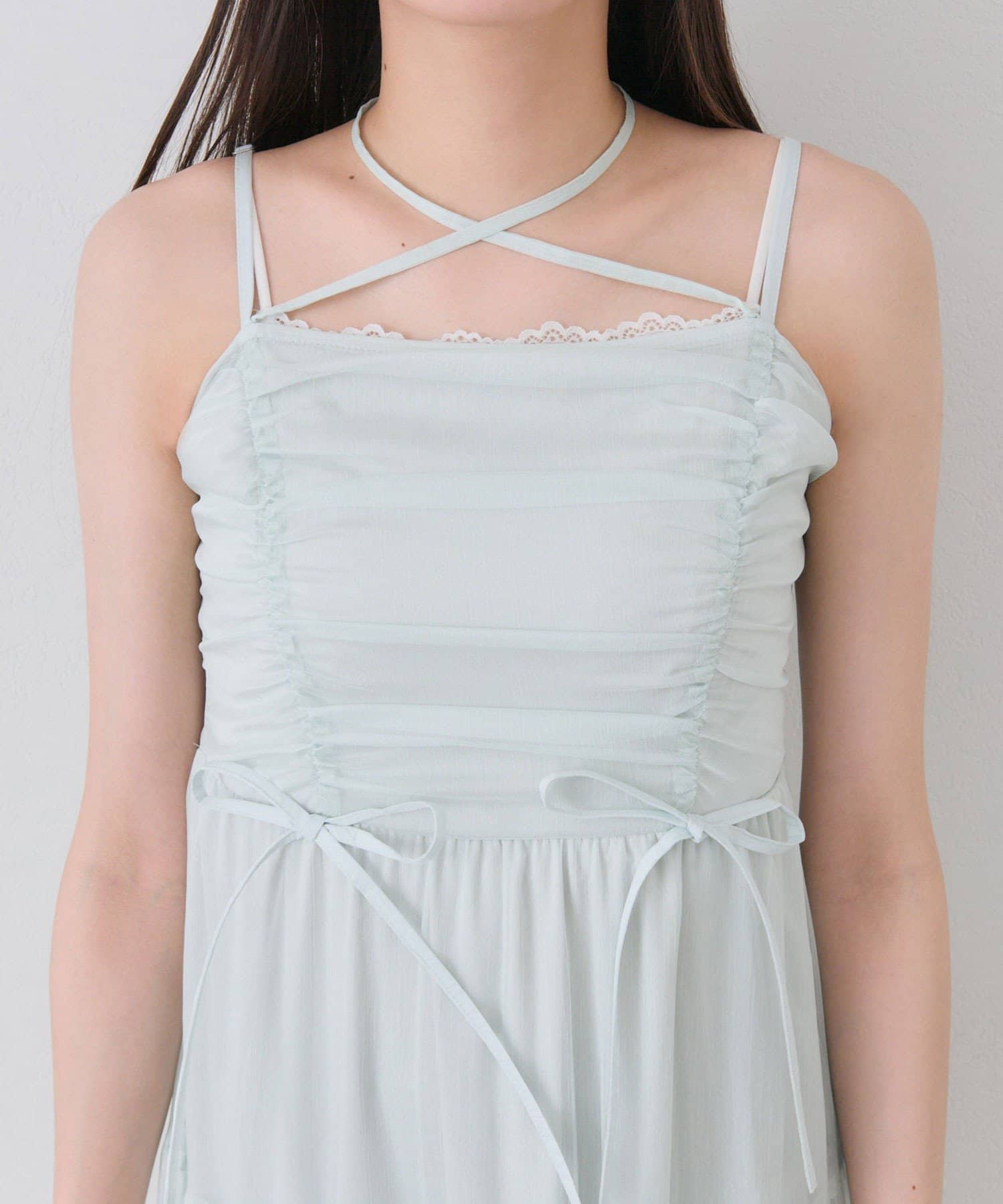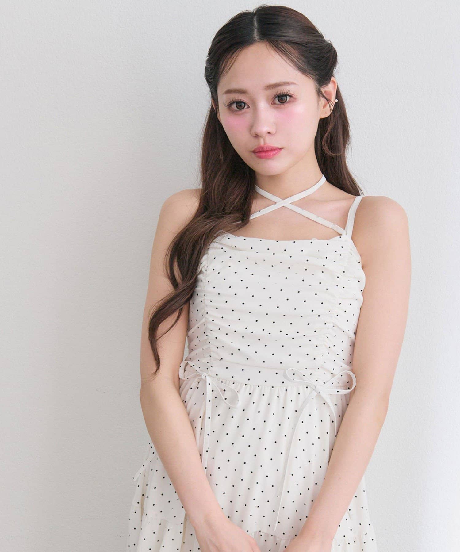 ・胸元のドロストリボンやホルターネックで、どこから見てもかわいいデザインです。