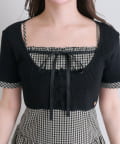 ・胸元のリボンとハートチャームが、さりげない甘さをプラスしてくれます。
