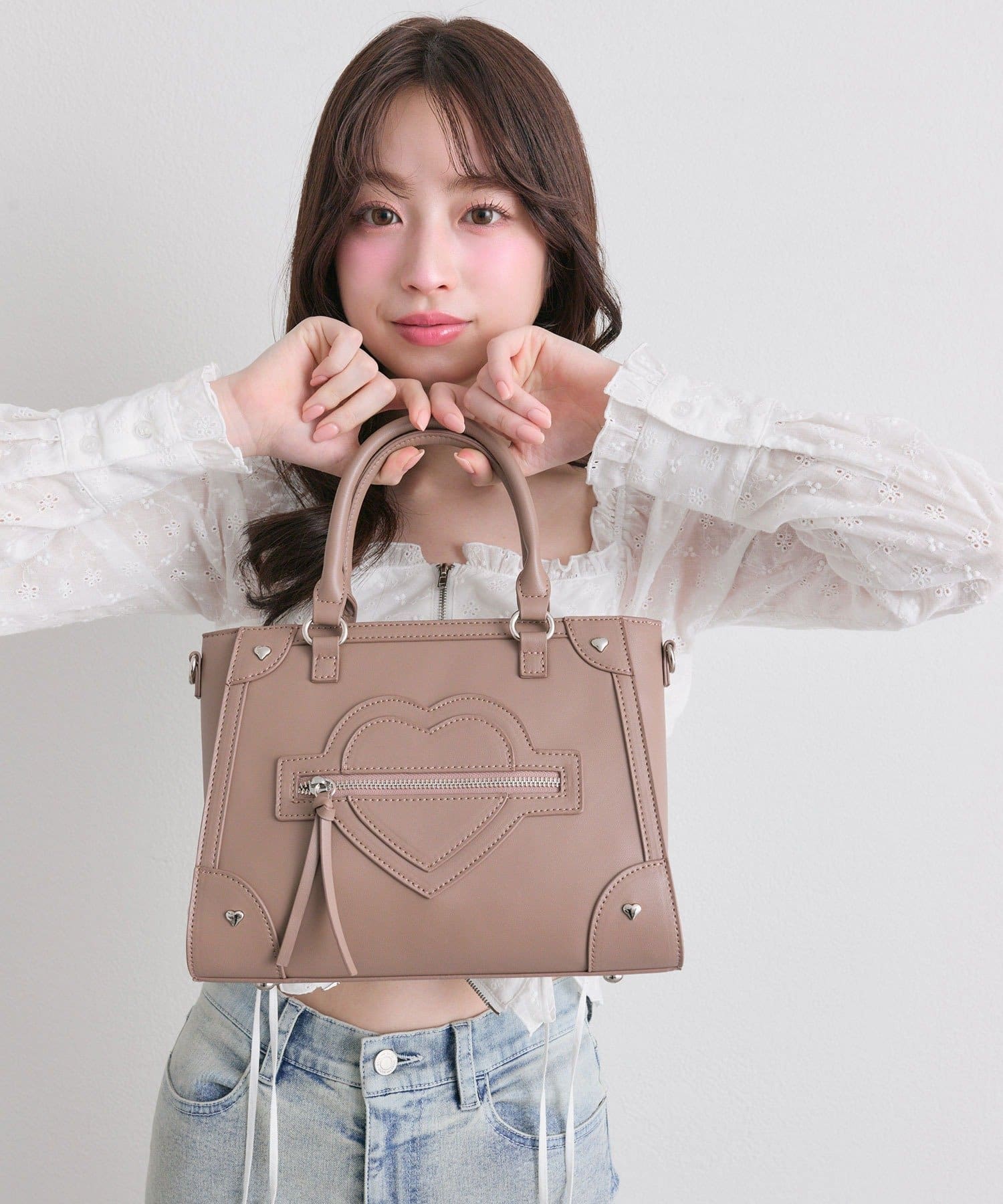 ・さりげない小さなハートスタッズが、可愛いのに大人っぽい印象を与えます。