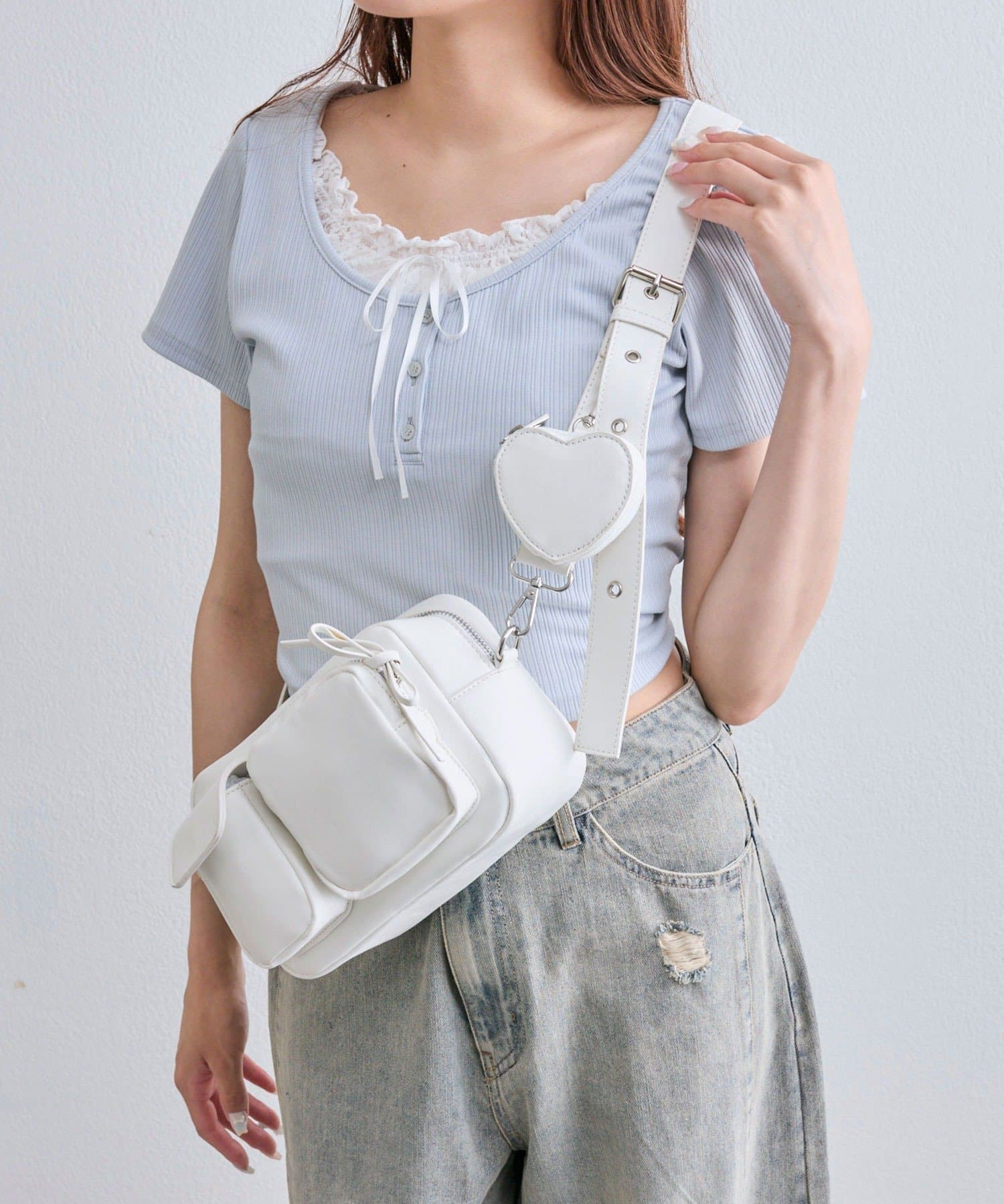 【リバイバル】ハートポーチ付きショルダーバッグ
