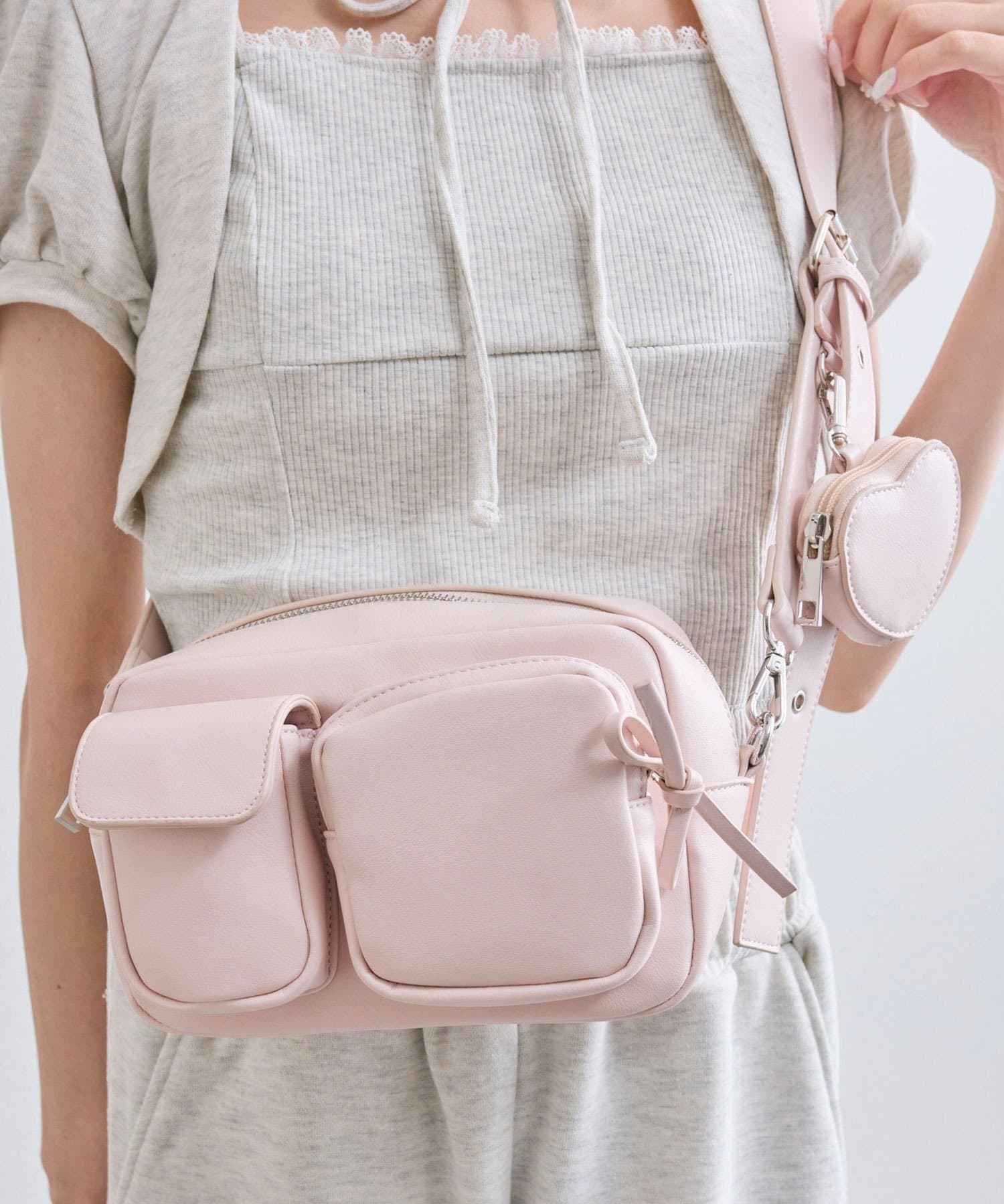 ・ハートポーチだけでなく、外ポケットが2つに内ポケット1つと、収納力もばっちりです。