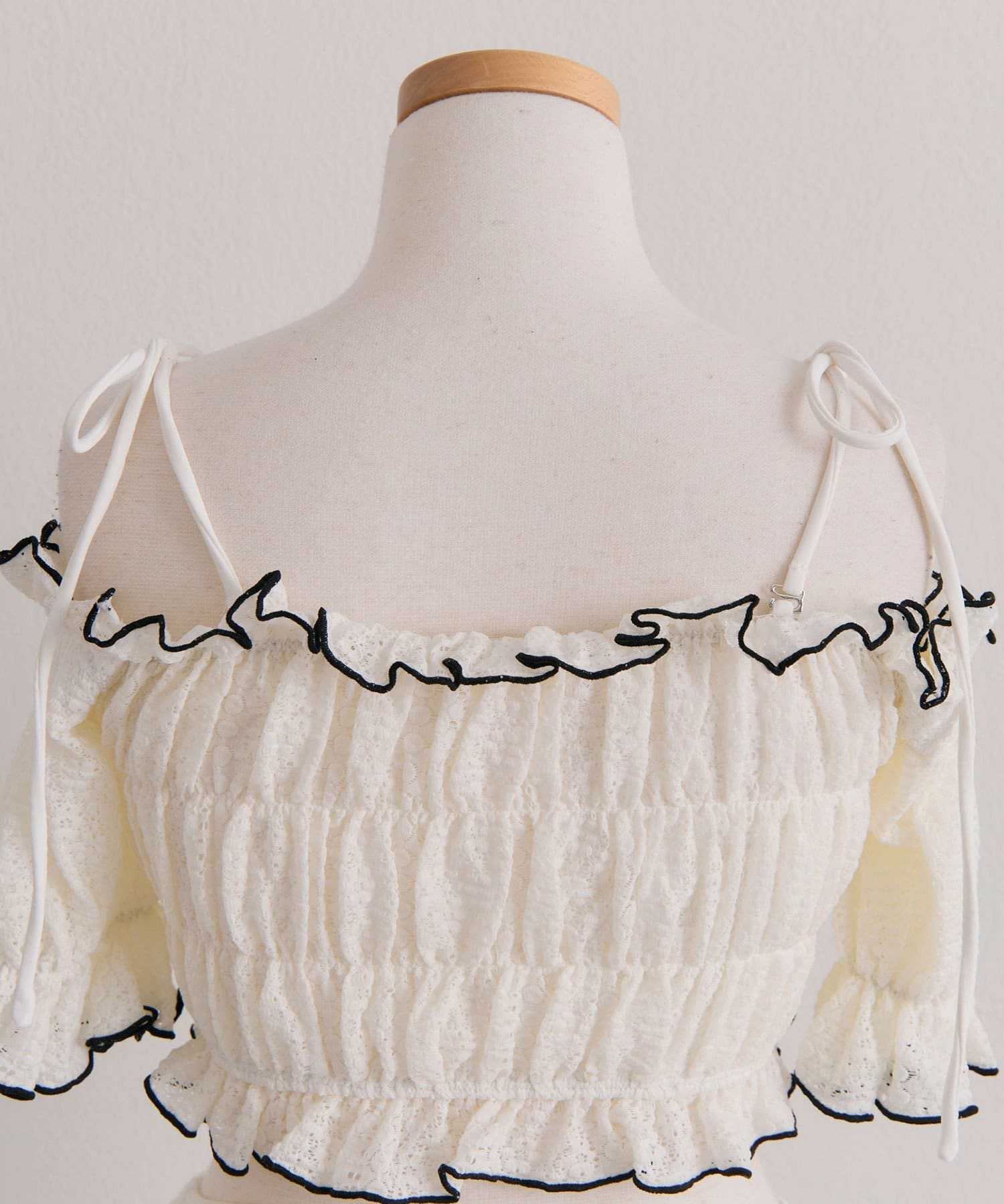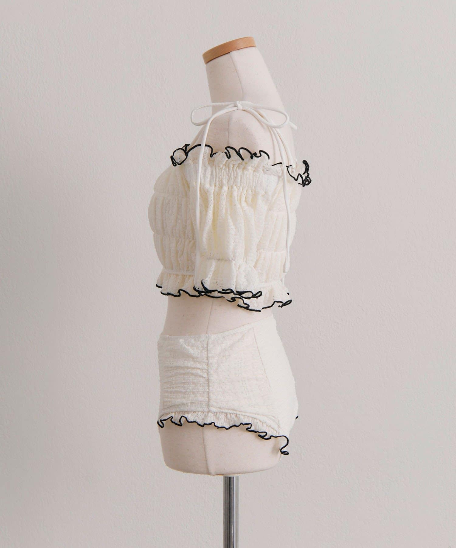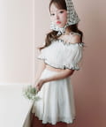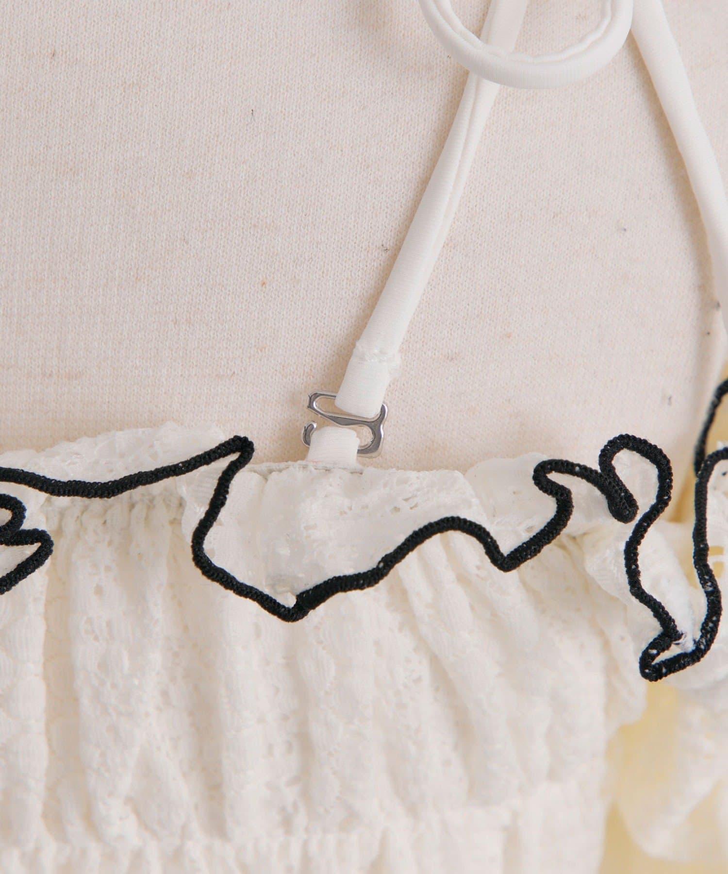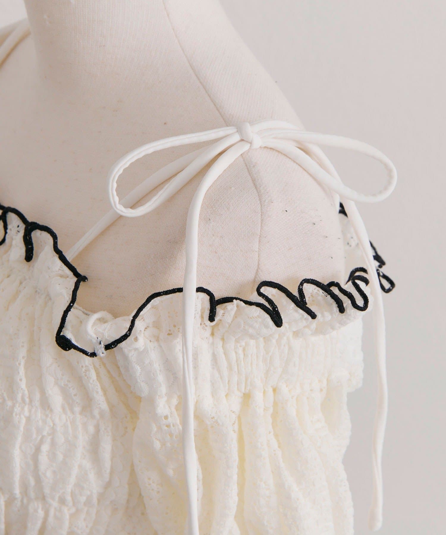 ・肩紐は左右でリボン、ホルターネック、取り外しの3way仕様で、気分に合わせてアレンジを楽しめます。