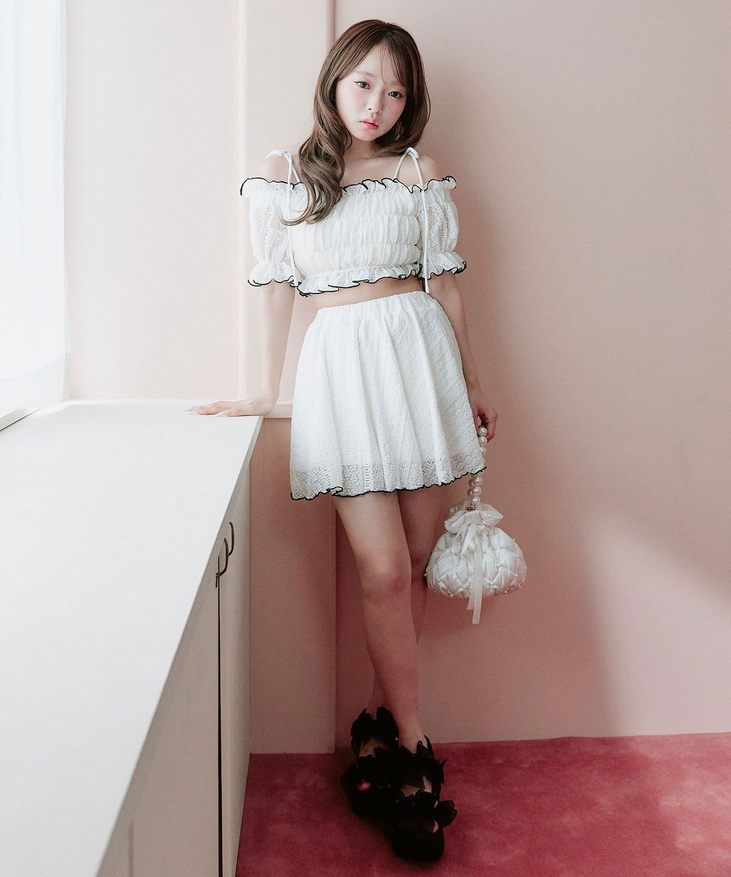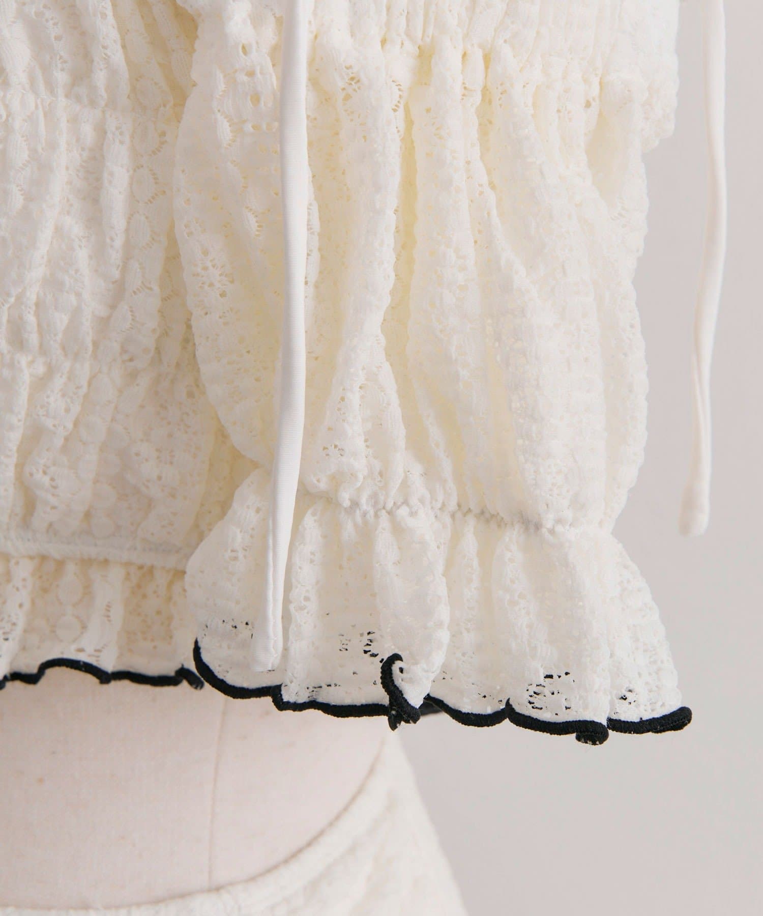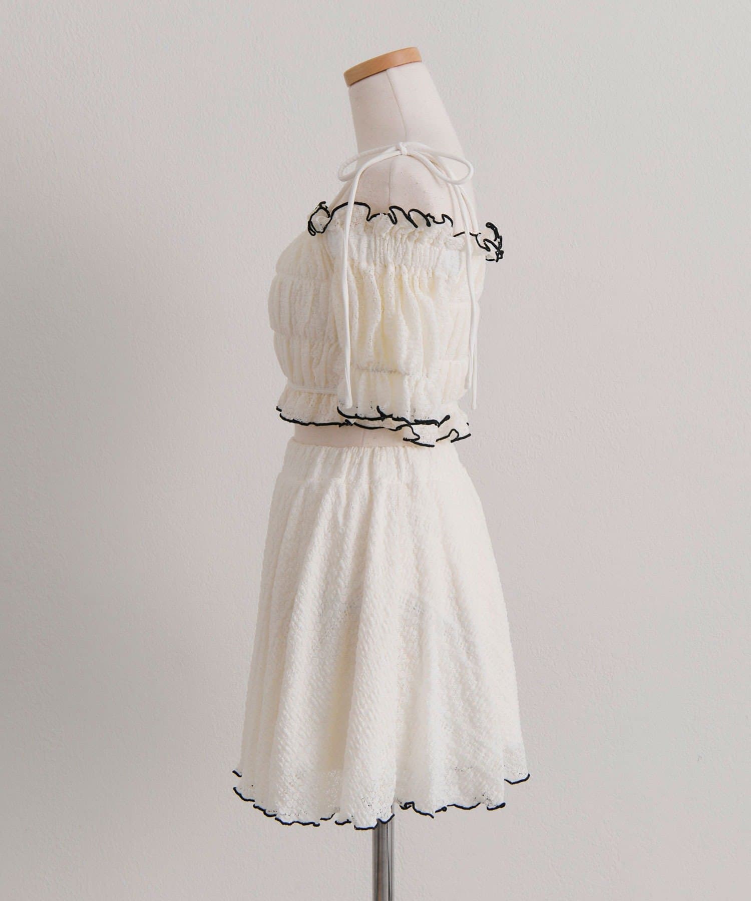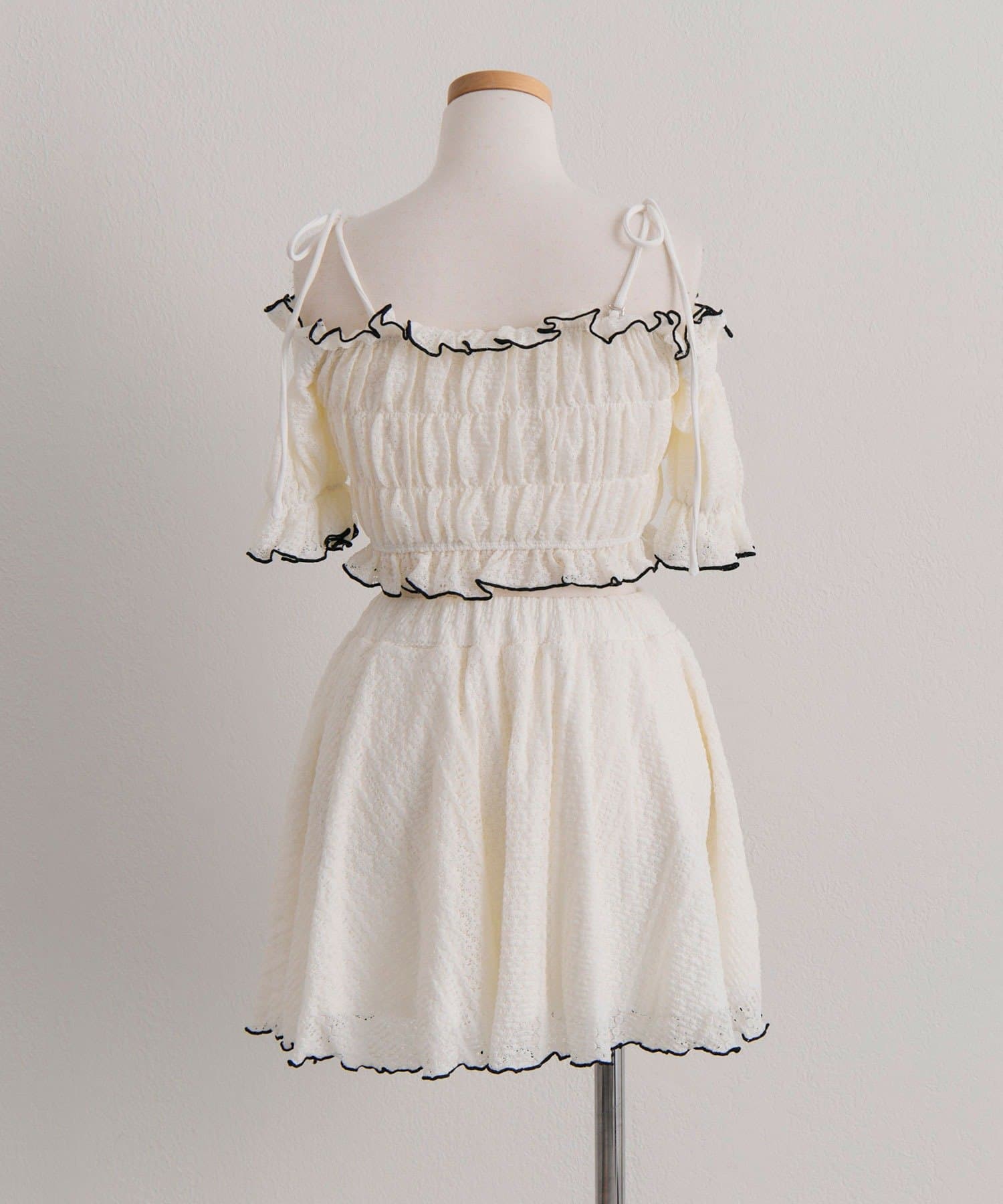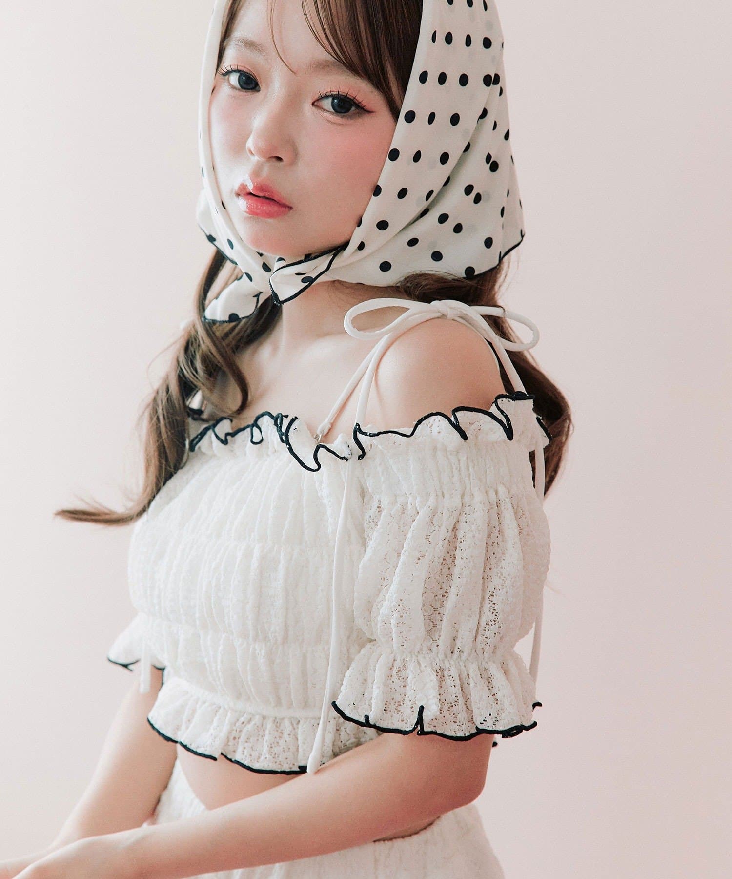 ・肩紐は左右でリボン、ホルターネック、取り外しの3way仕様で、気分に合わせてアレンジを楽しめます。