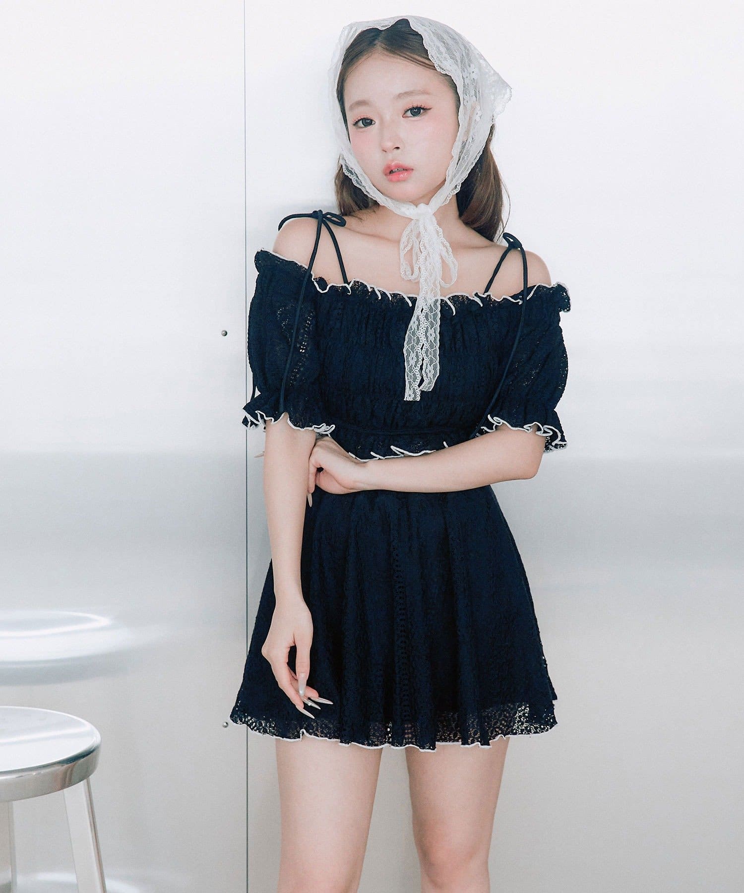 ・かわいく体型カバーしつつ、レース素材で甘すぎず大人っぽく着られるデザイン。