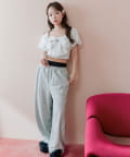 ・首元はスクエアネックでデコルテラインをきれいに演出し、すっきり見えを叶えます。