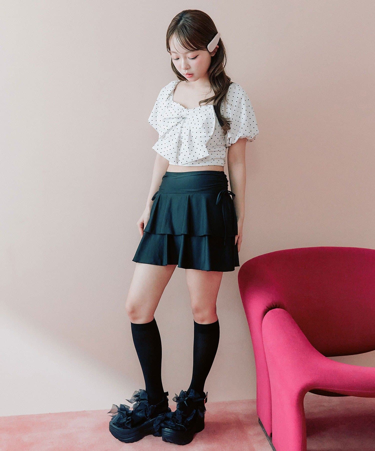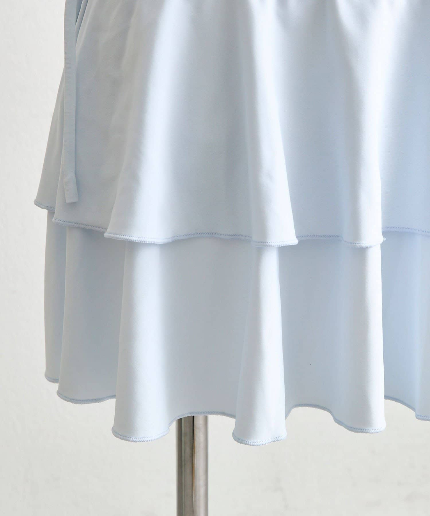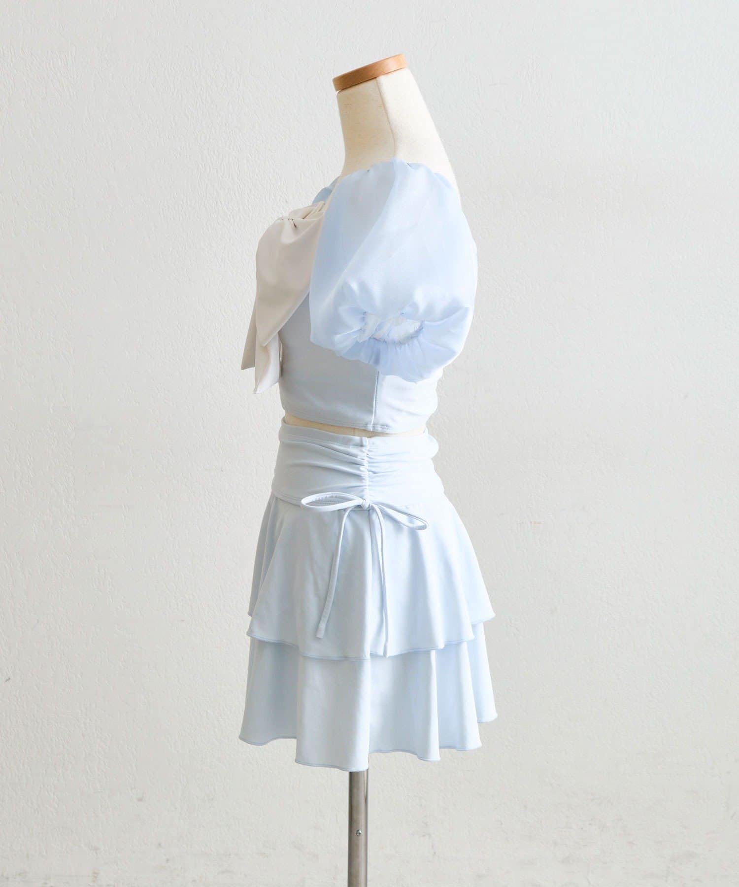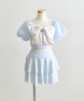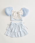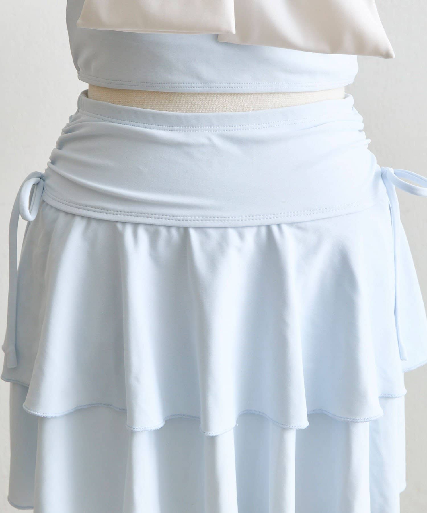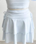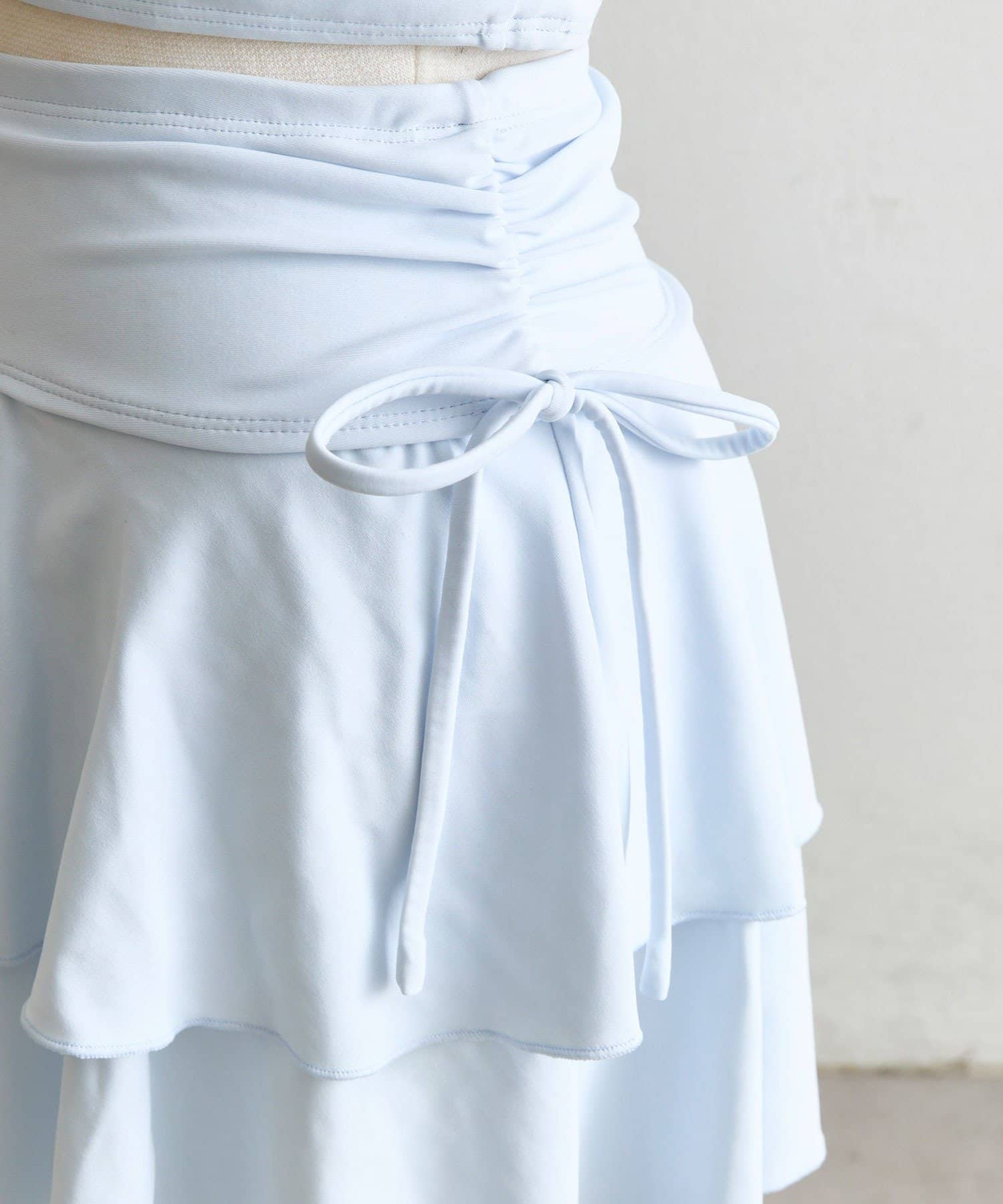 ・サイドにリボン付きのティアードスカートで、トレンド感と体型カバーを両立。