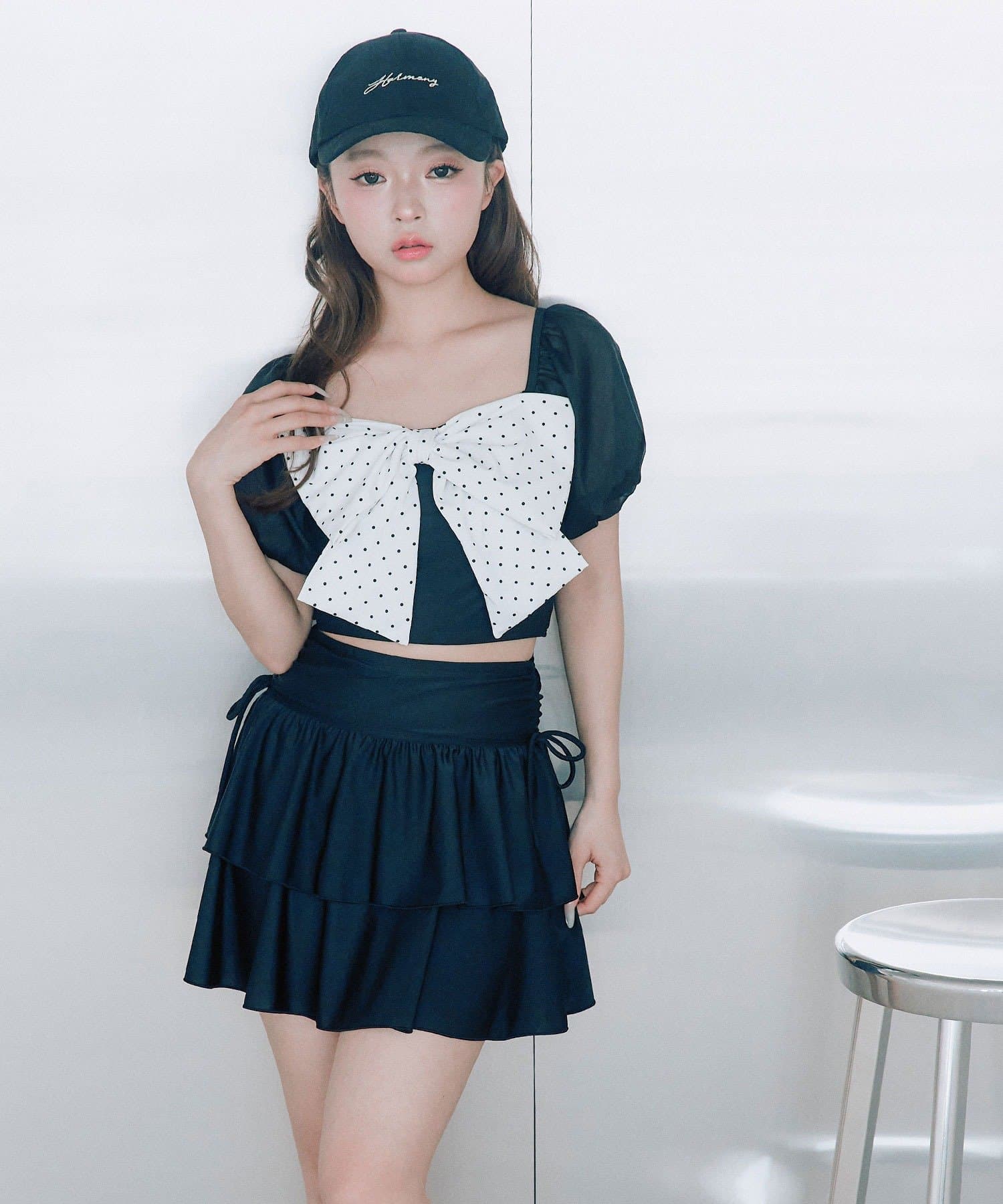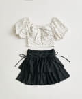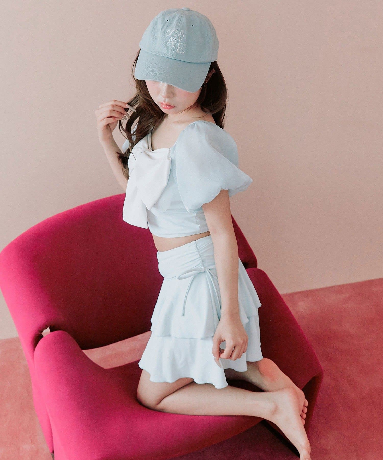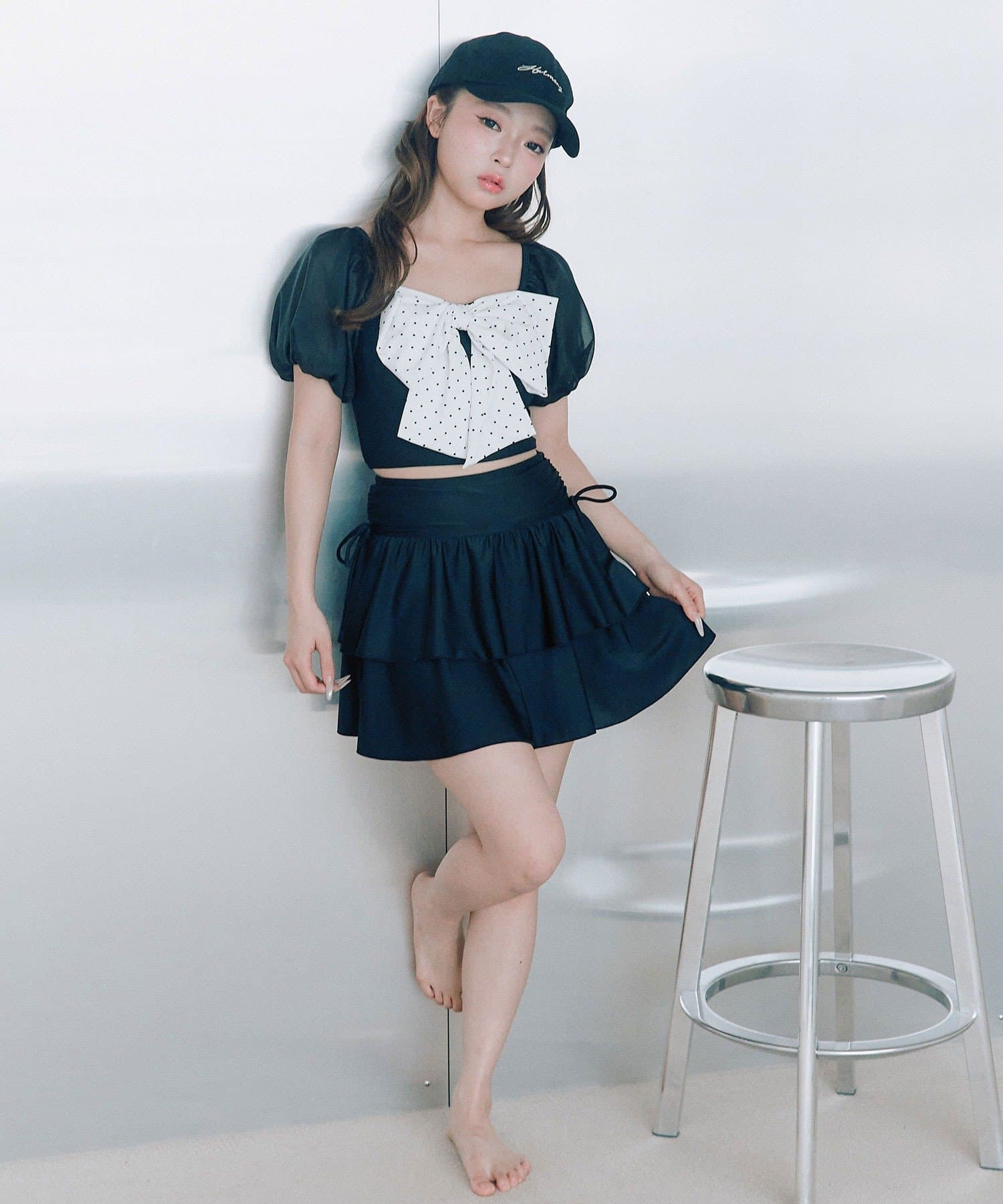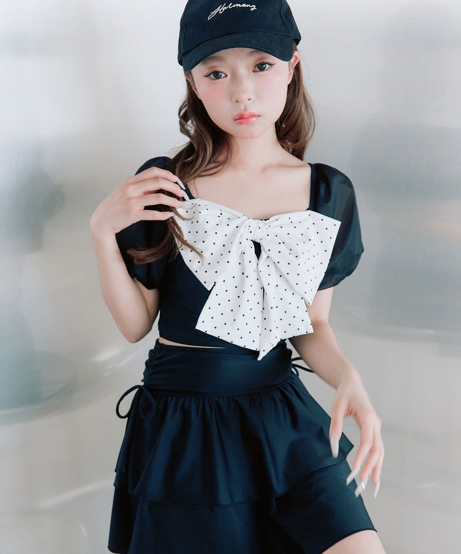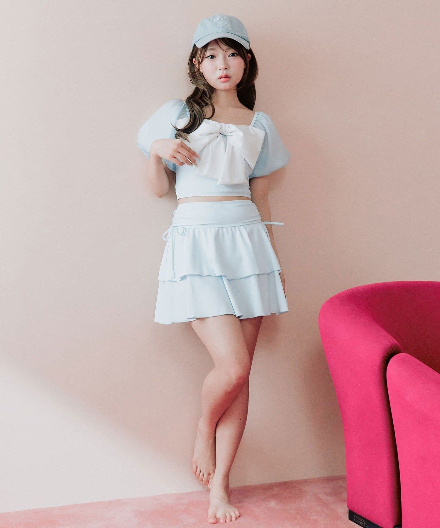 ・サイドにリボン付きのティアードスカートで、トレンド感と体型カバーを両立。