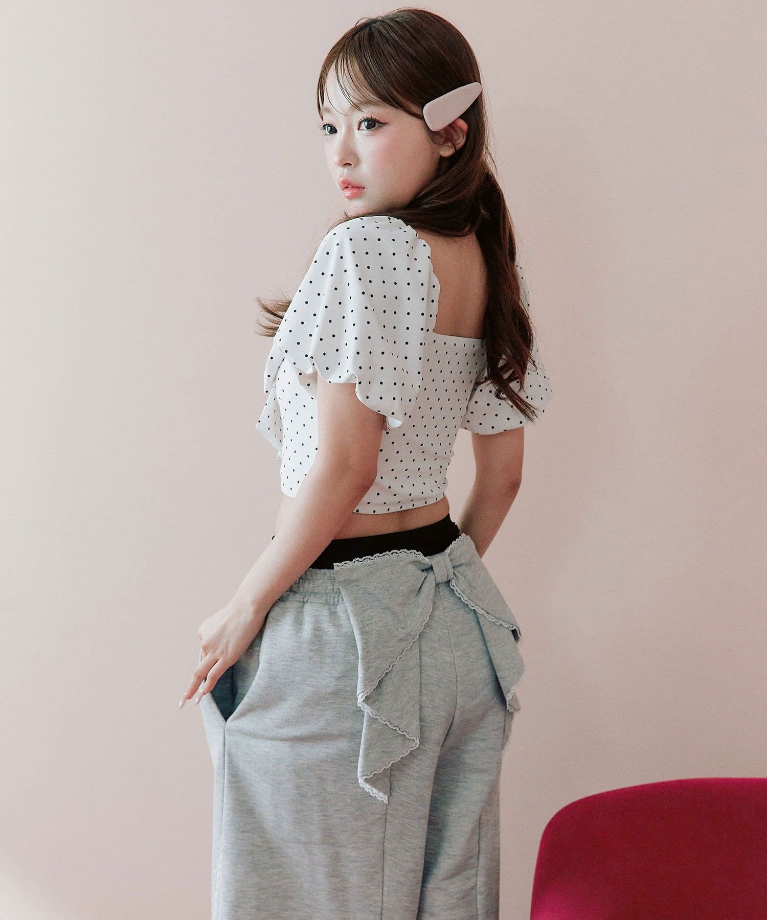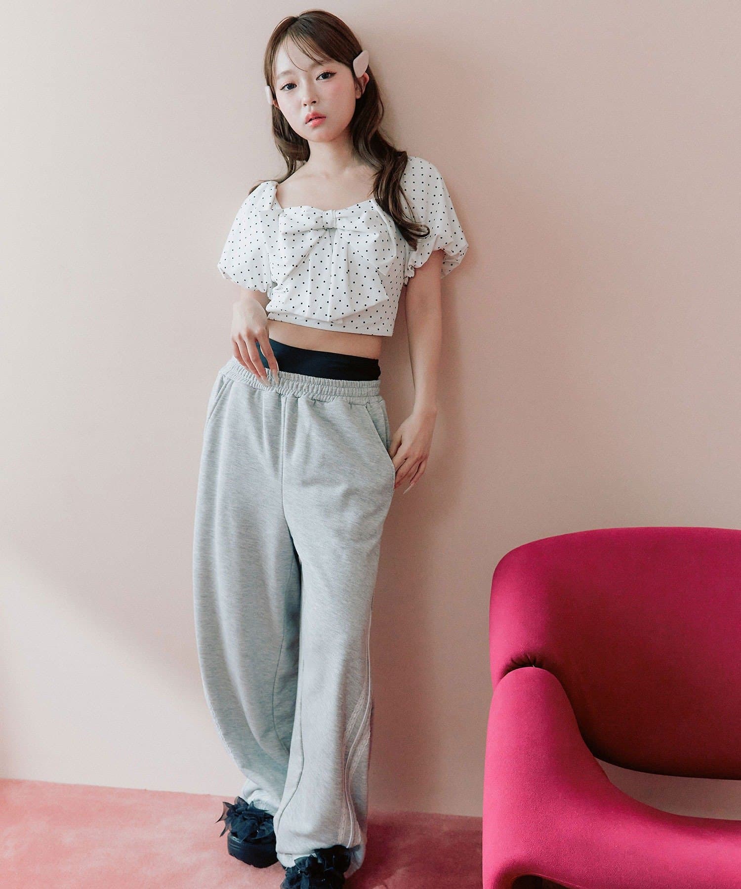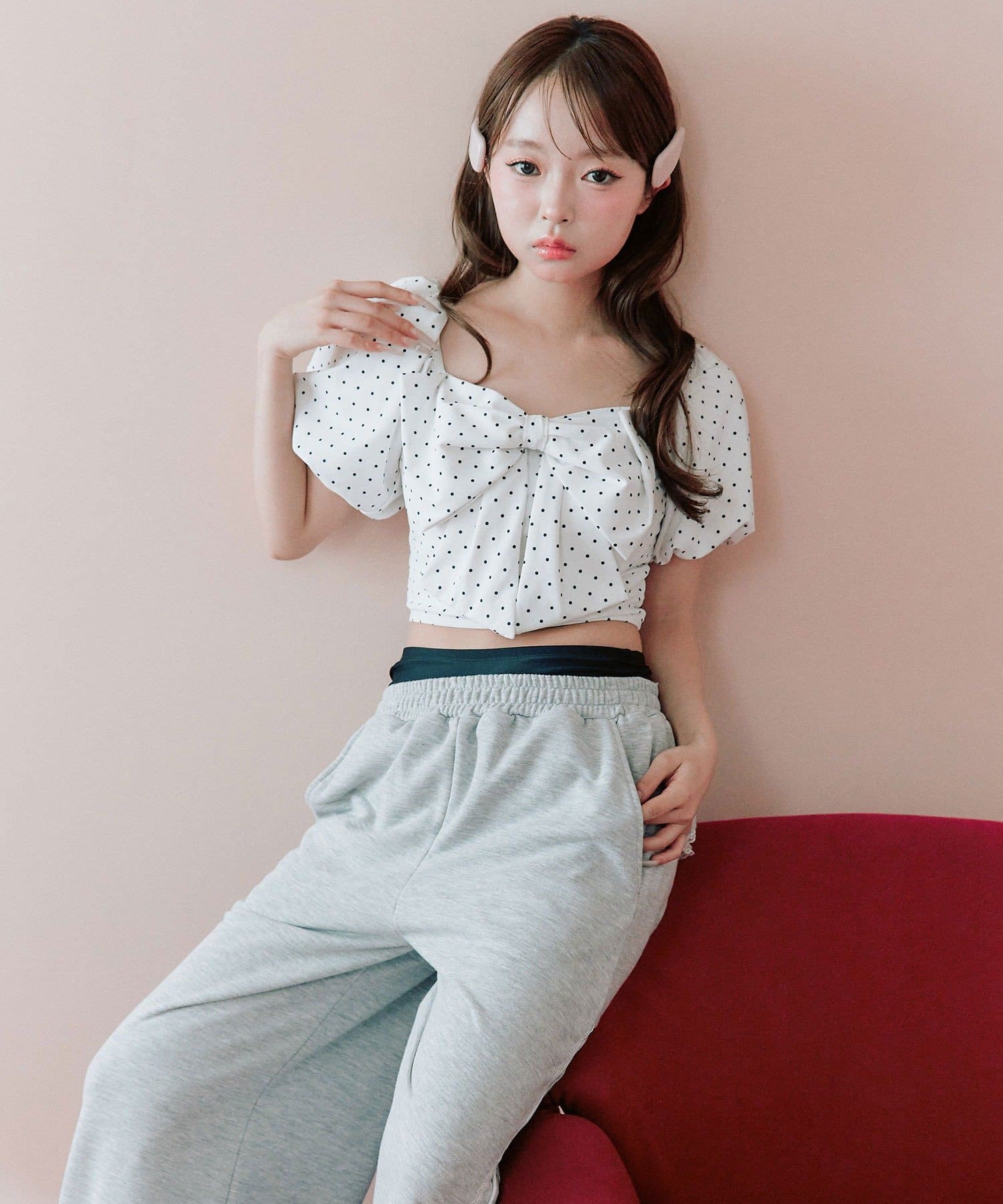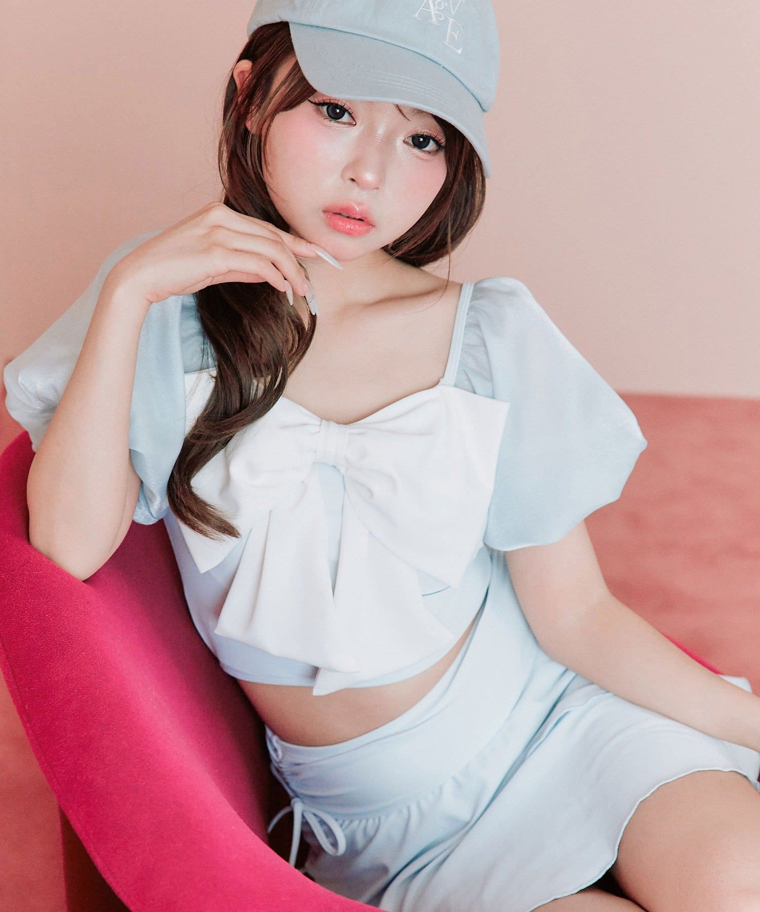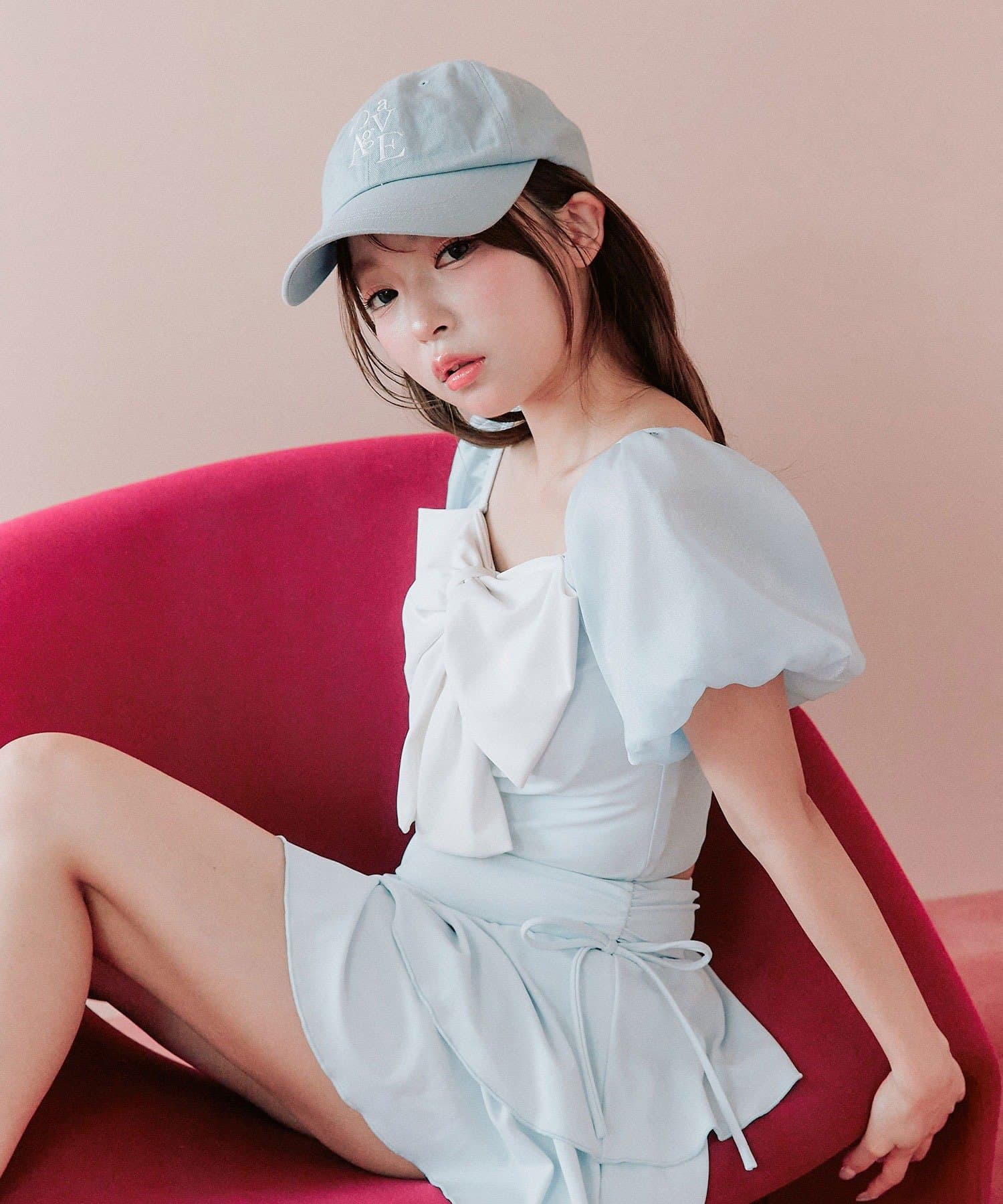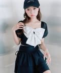 ・フロントの大きめリボンがアクセントになったガーリーデザイン。
