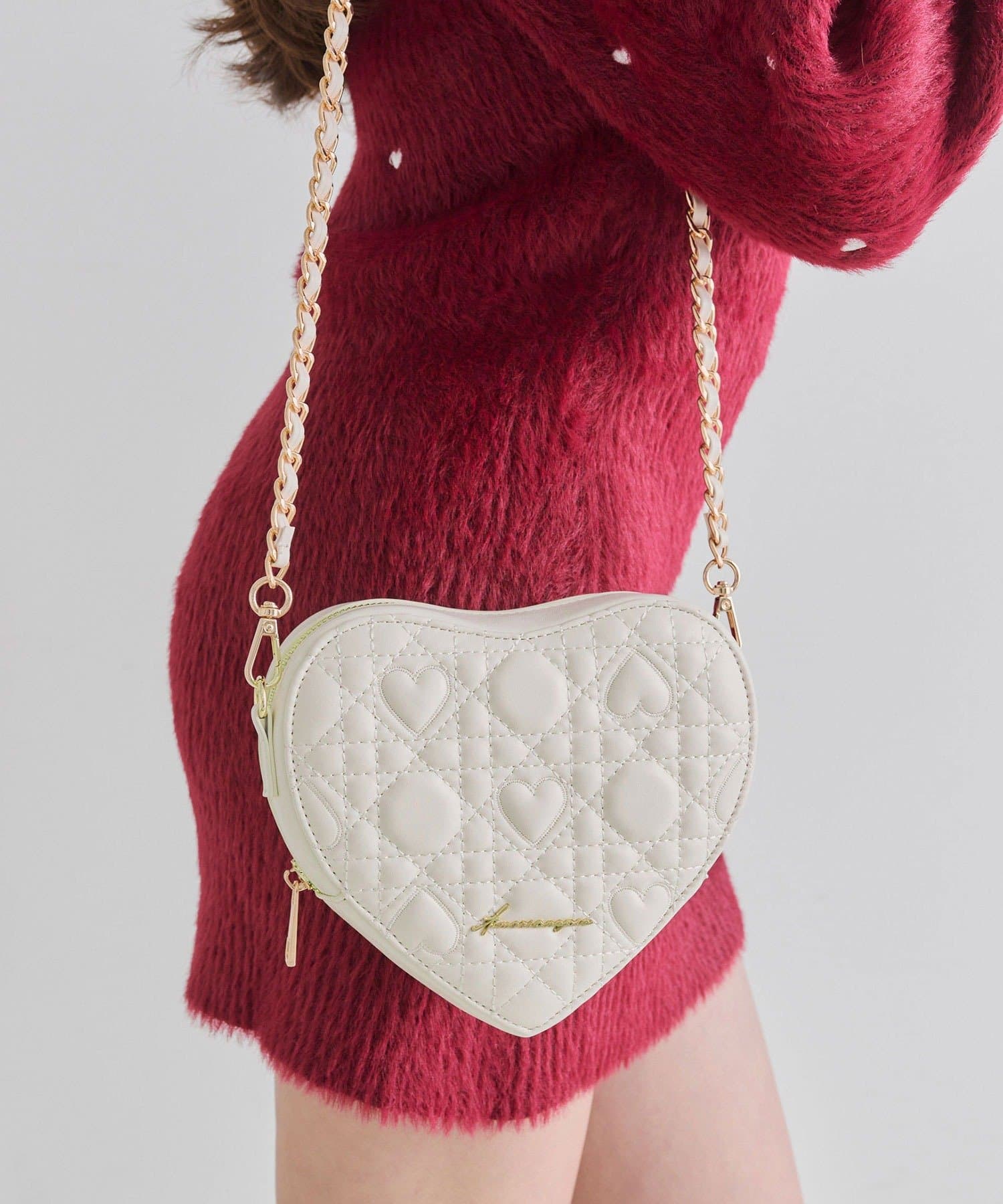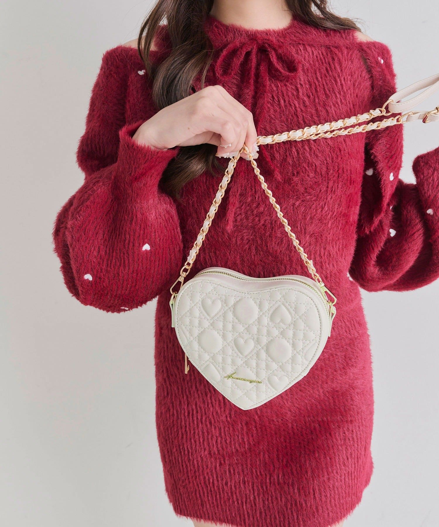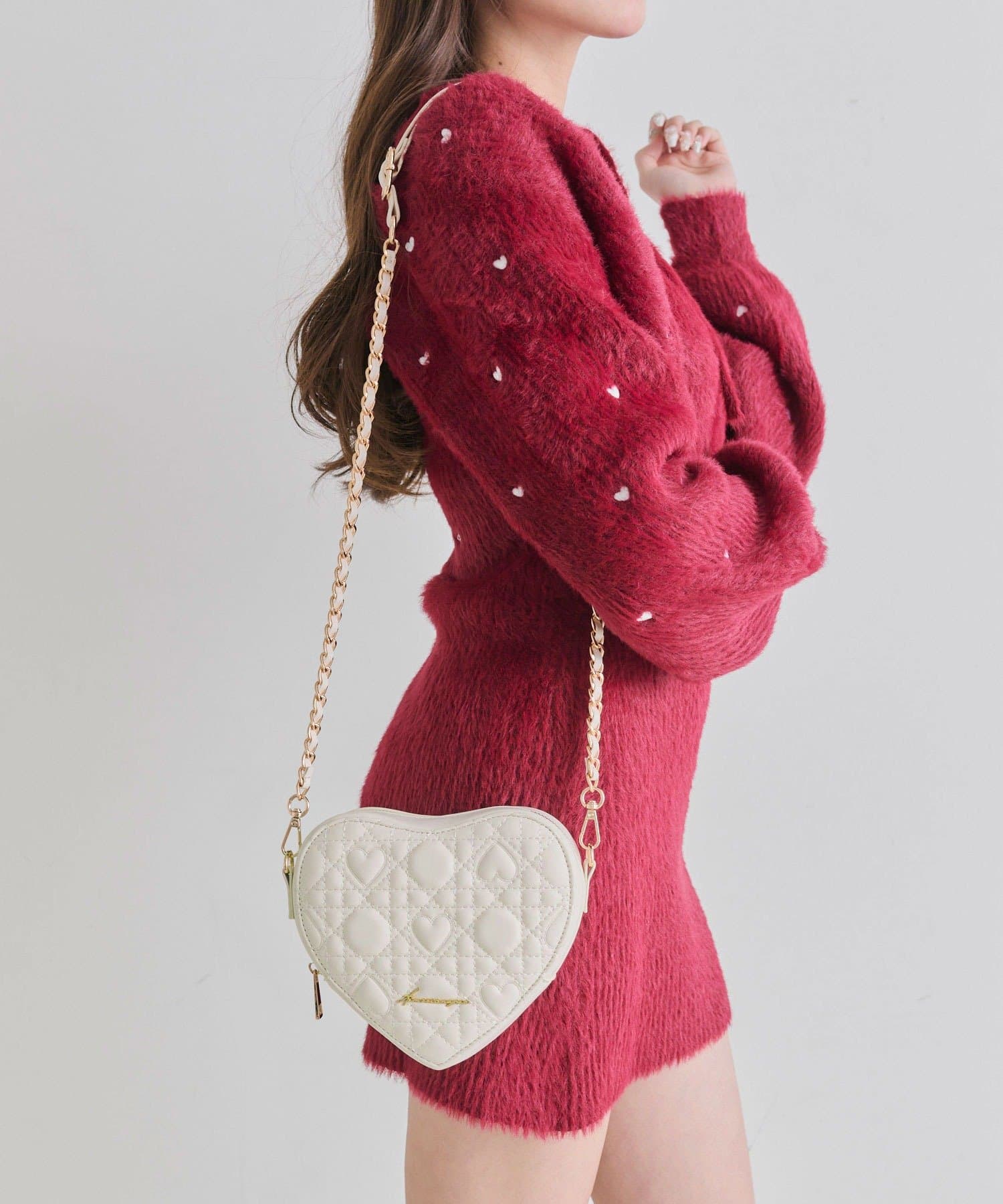 ・オリジナルのハートキルティングを使用した、ハート型のショルダーバッグ。