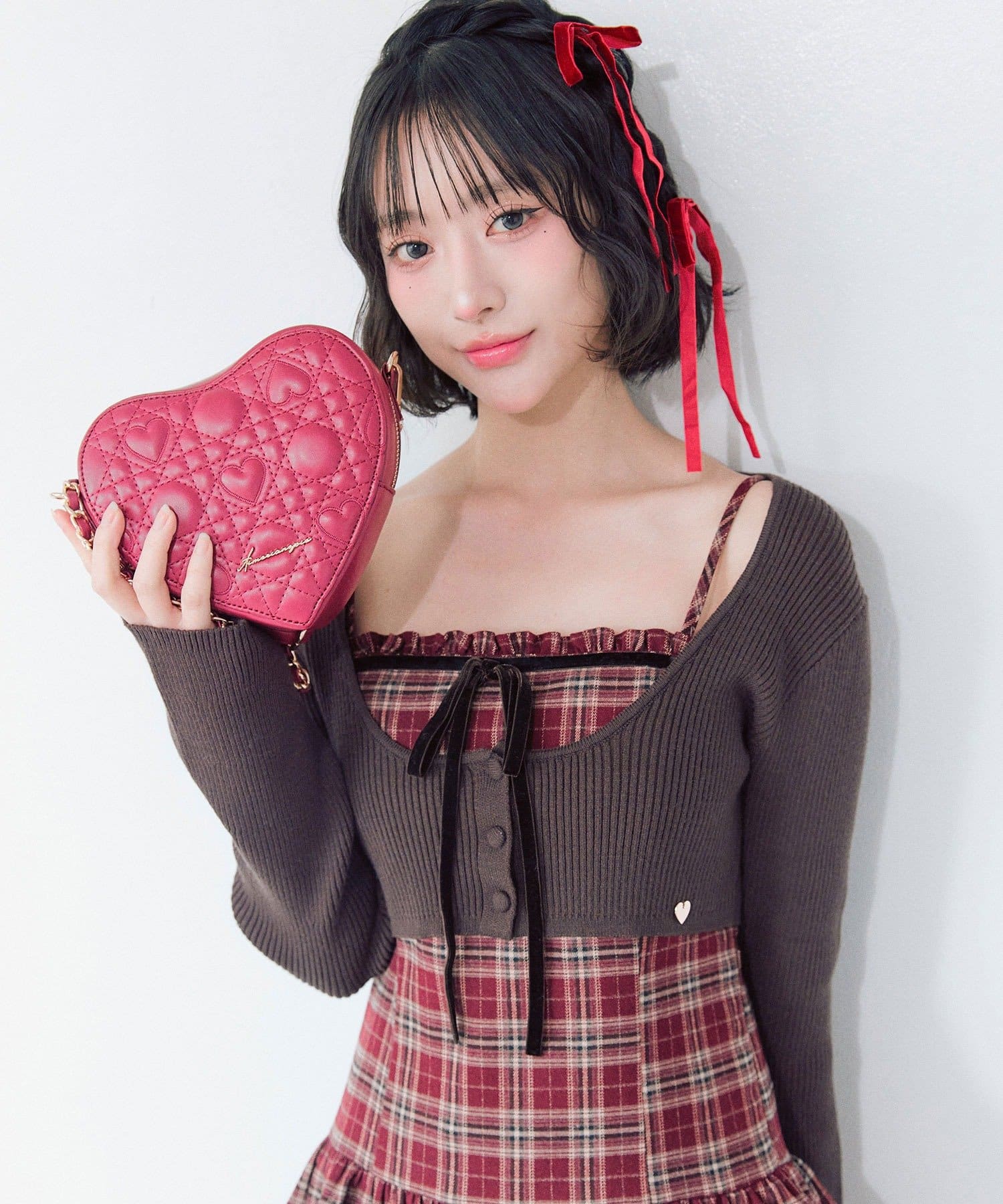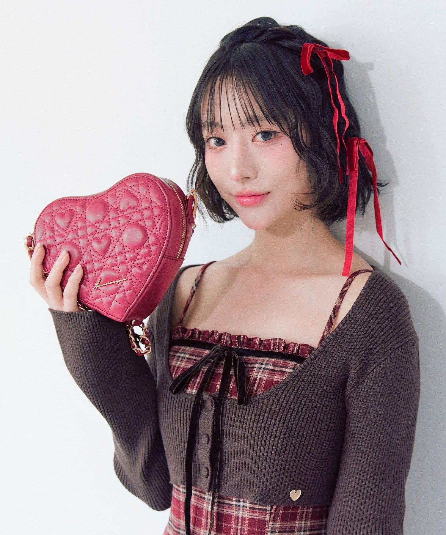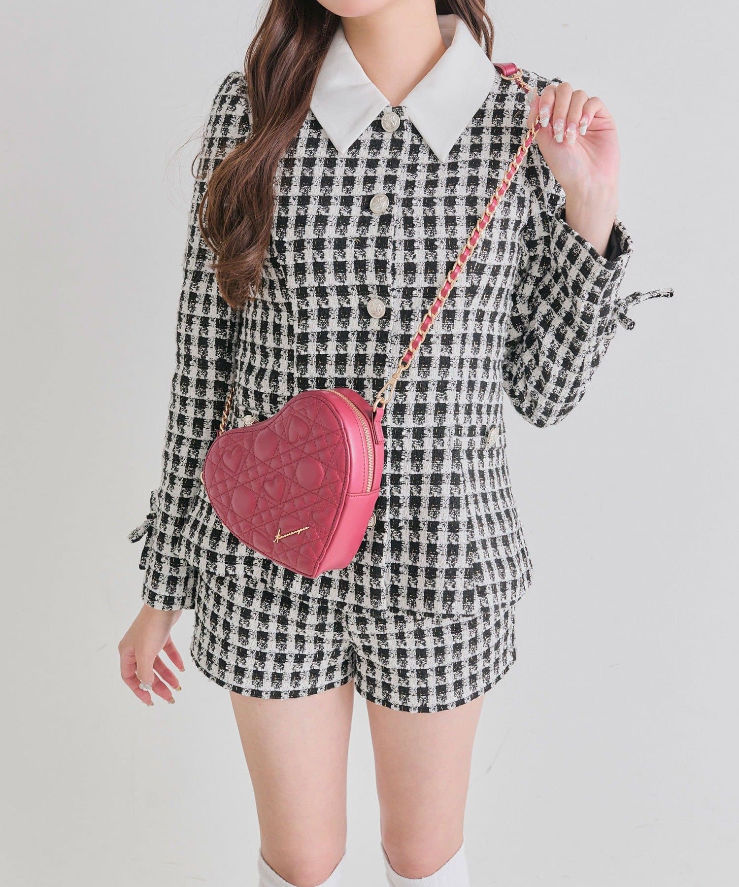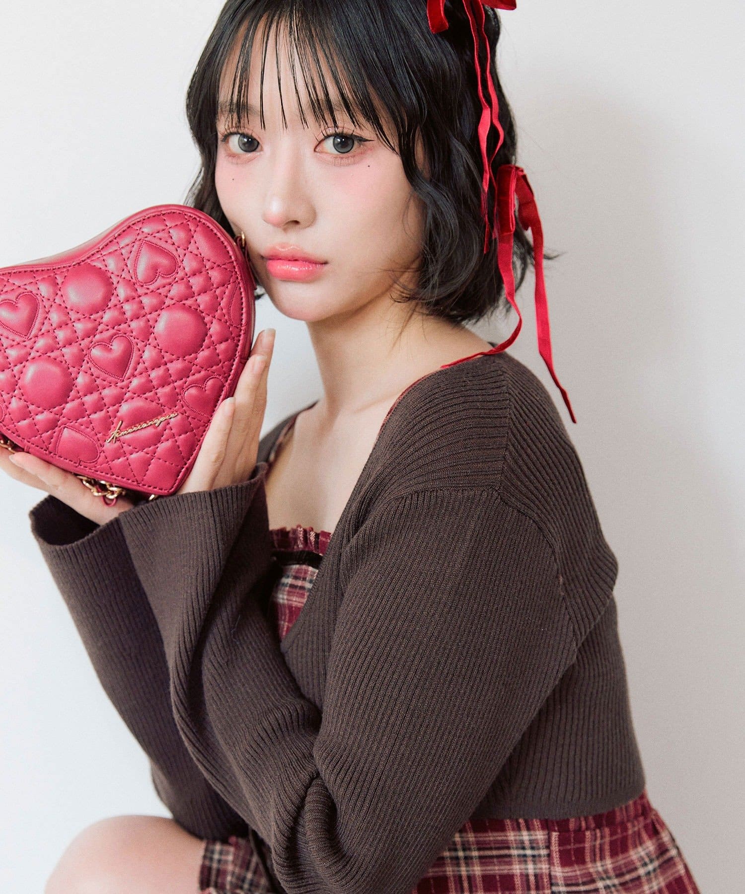 ・オリジナルのハートキルティングを使用した、ハート型のショルダーバッグ。