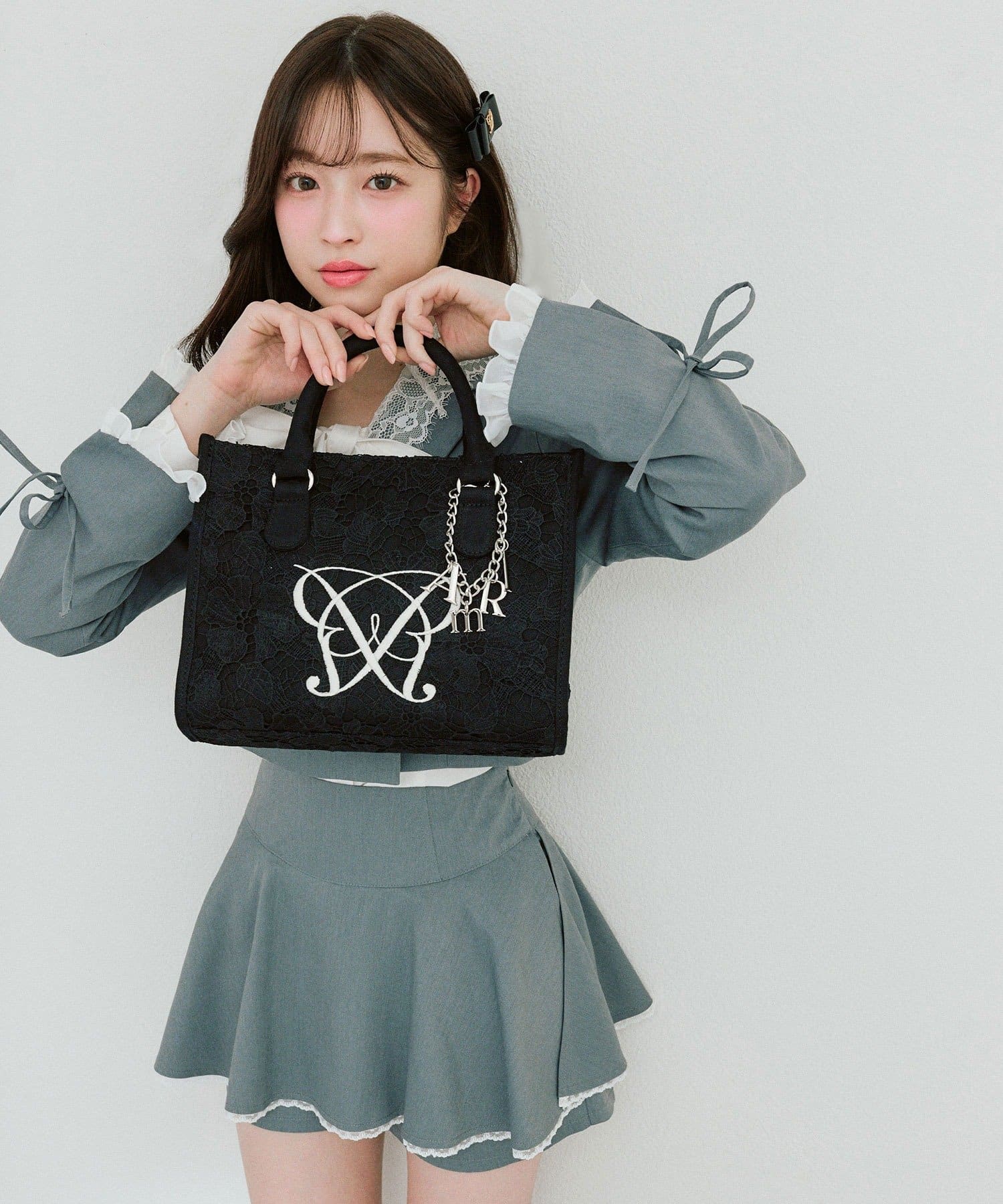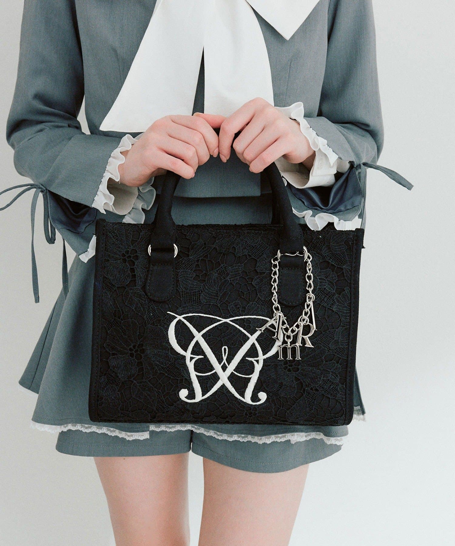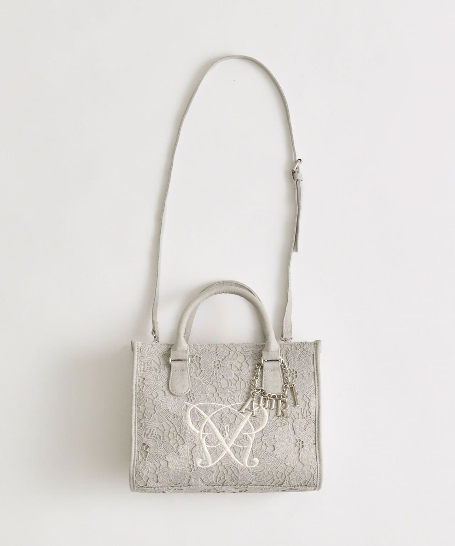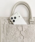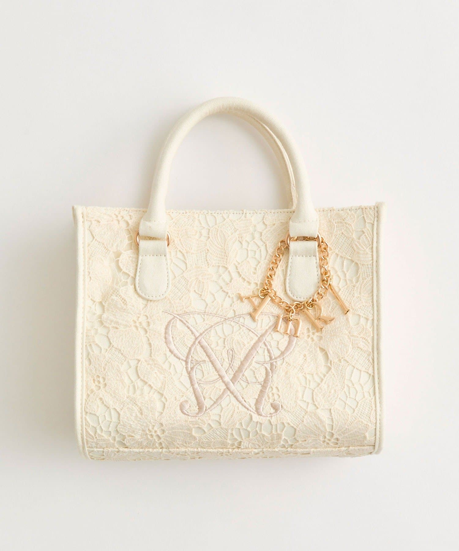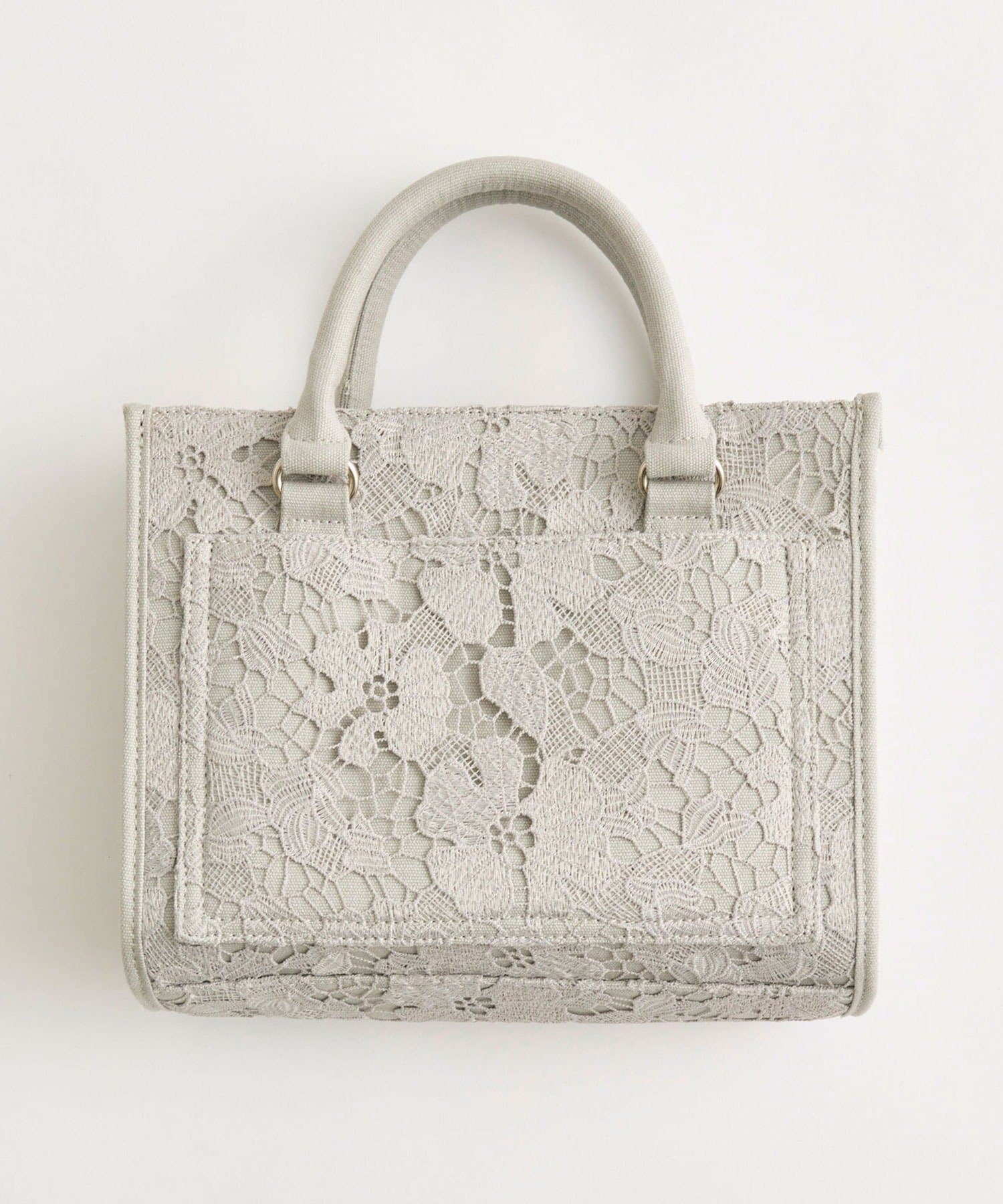 ・大人かわいいレース素材に、オリジナルのロゴ刺繍を施したミニサイズのトートバッグ。
