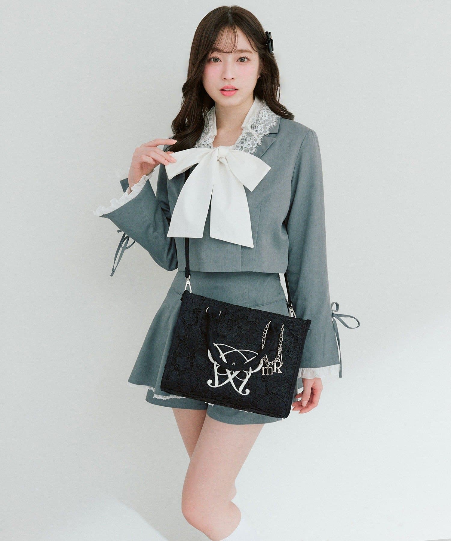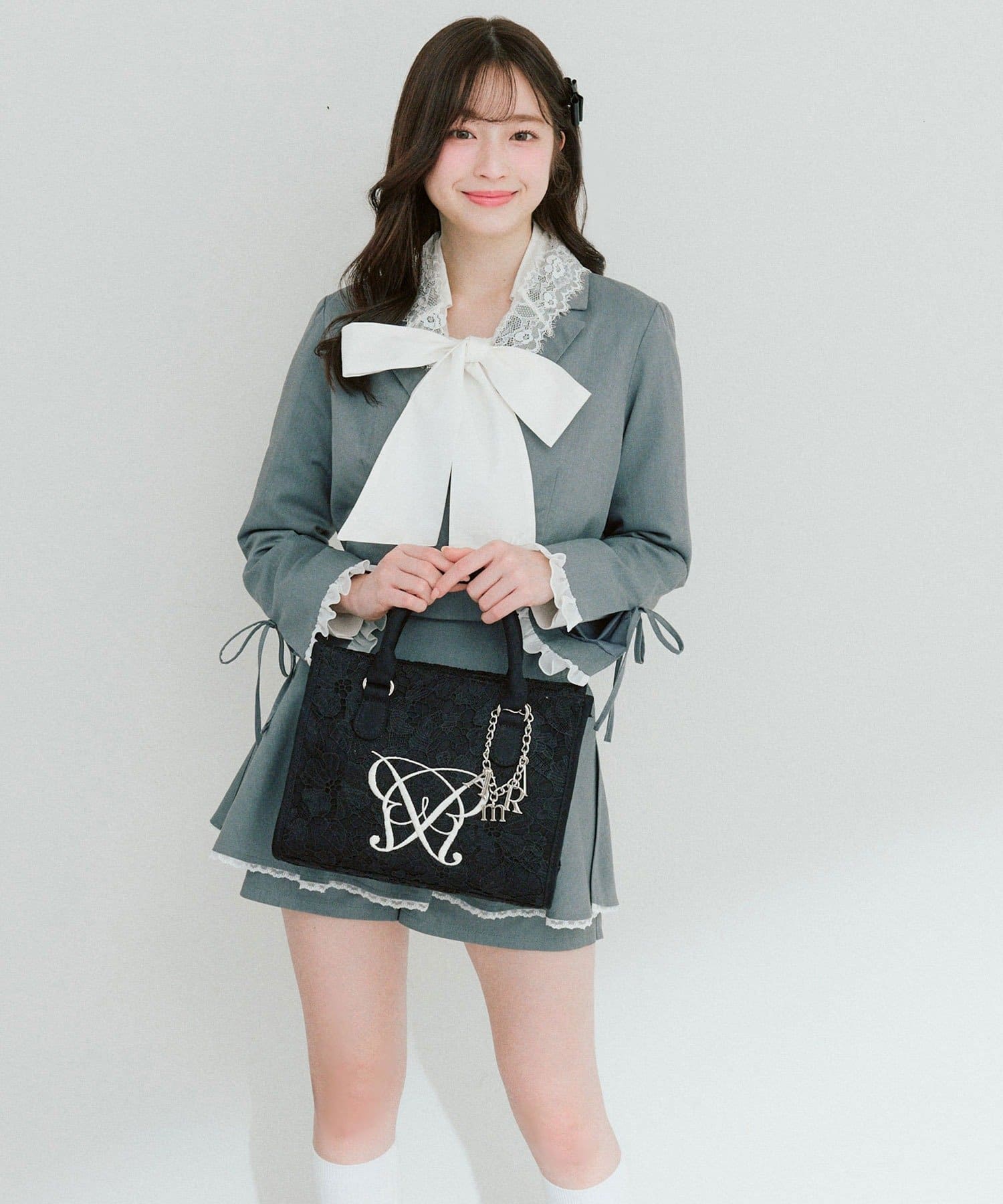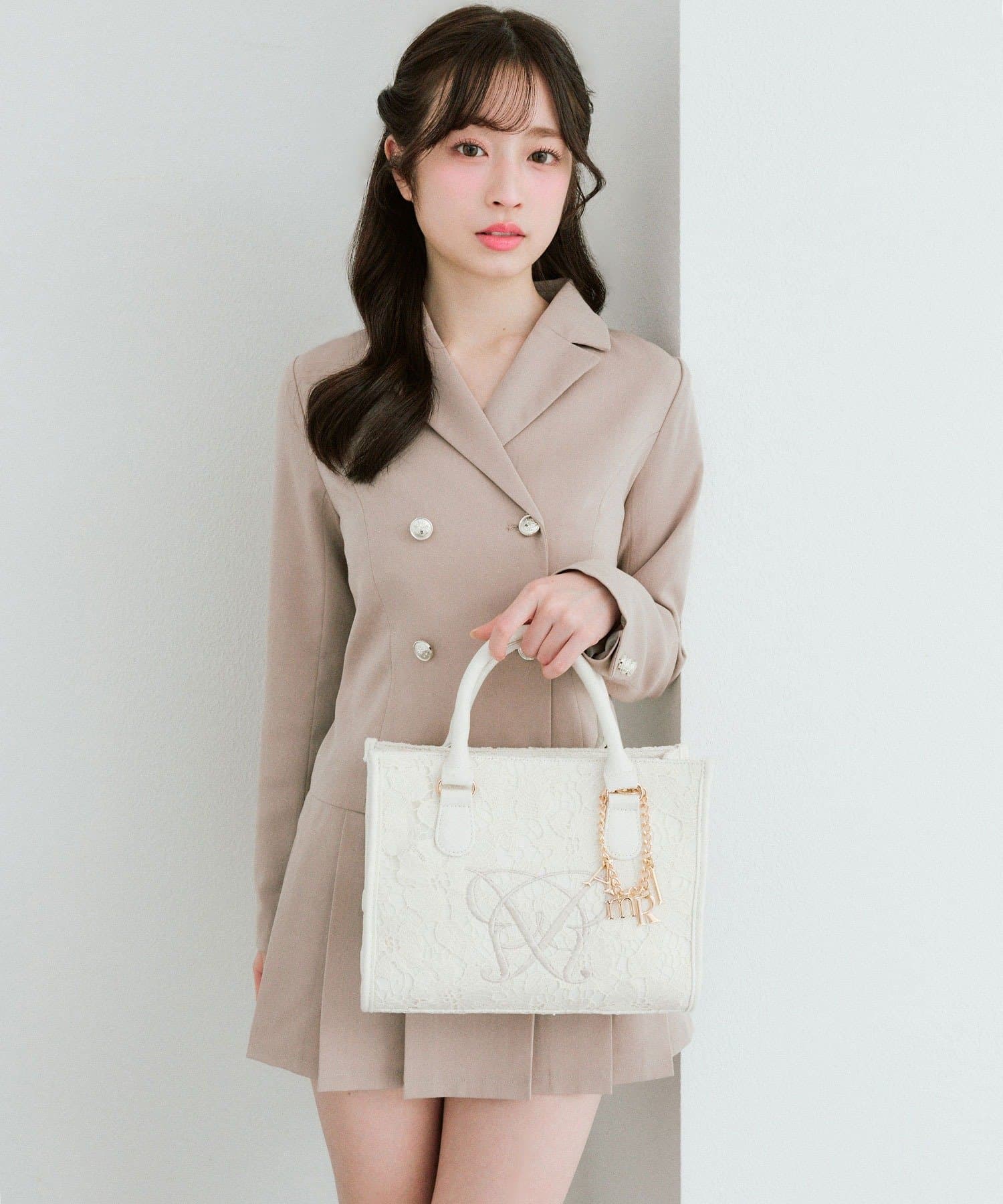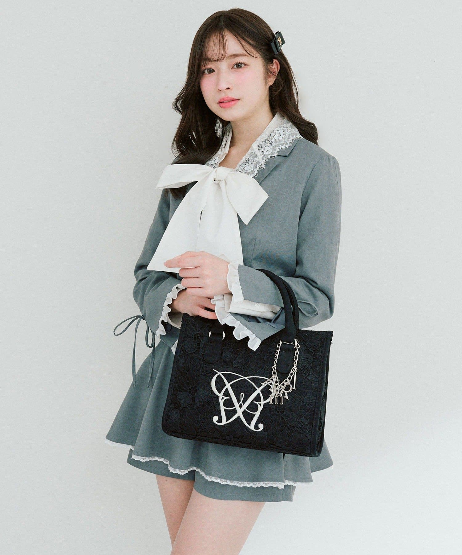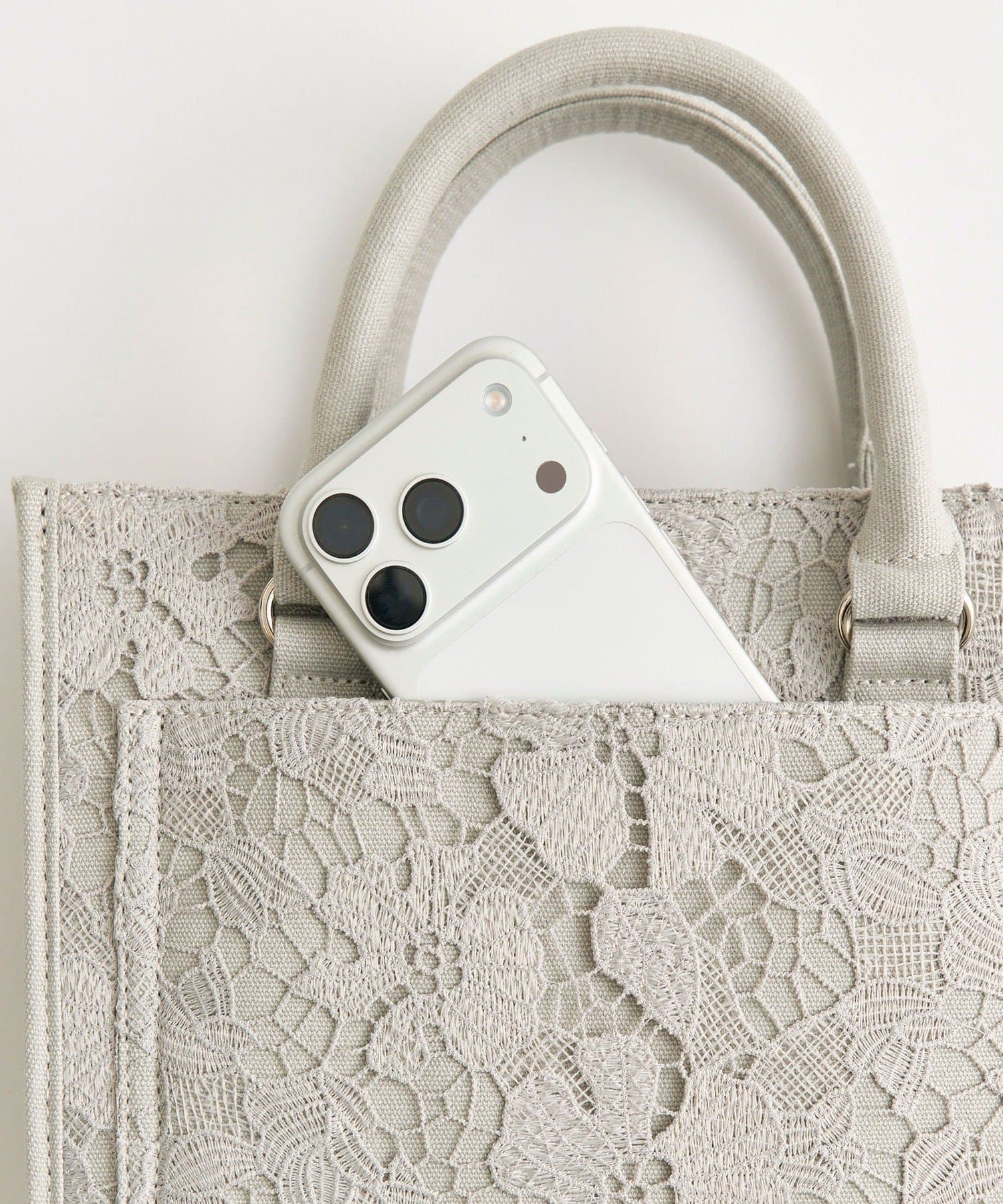 ・大人かわいいレース素材に、オリジナルのロゴ刺繍を施したミニサイズのトートバッグ。
