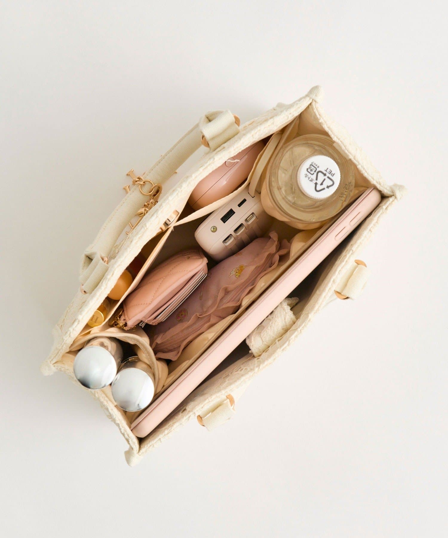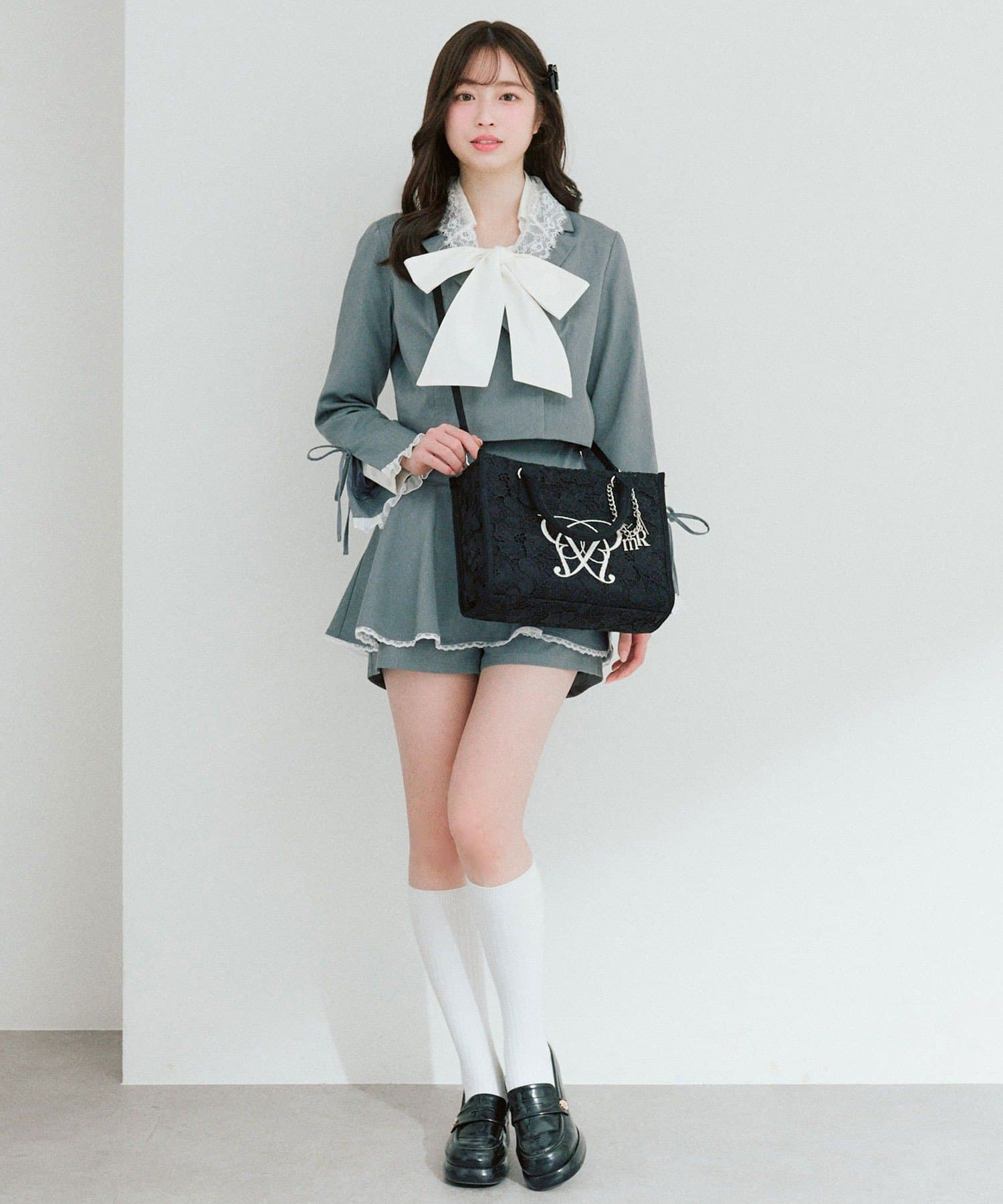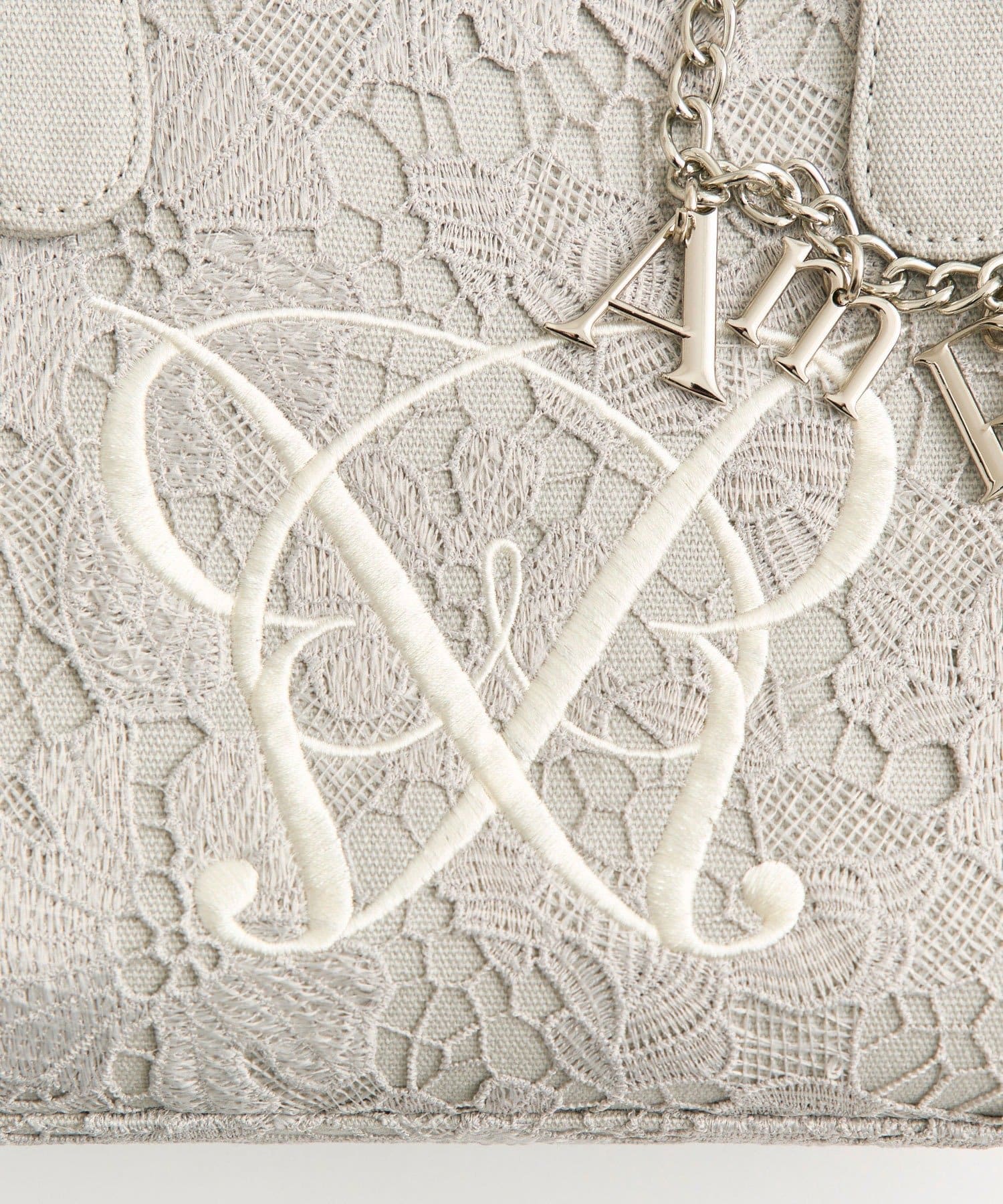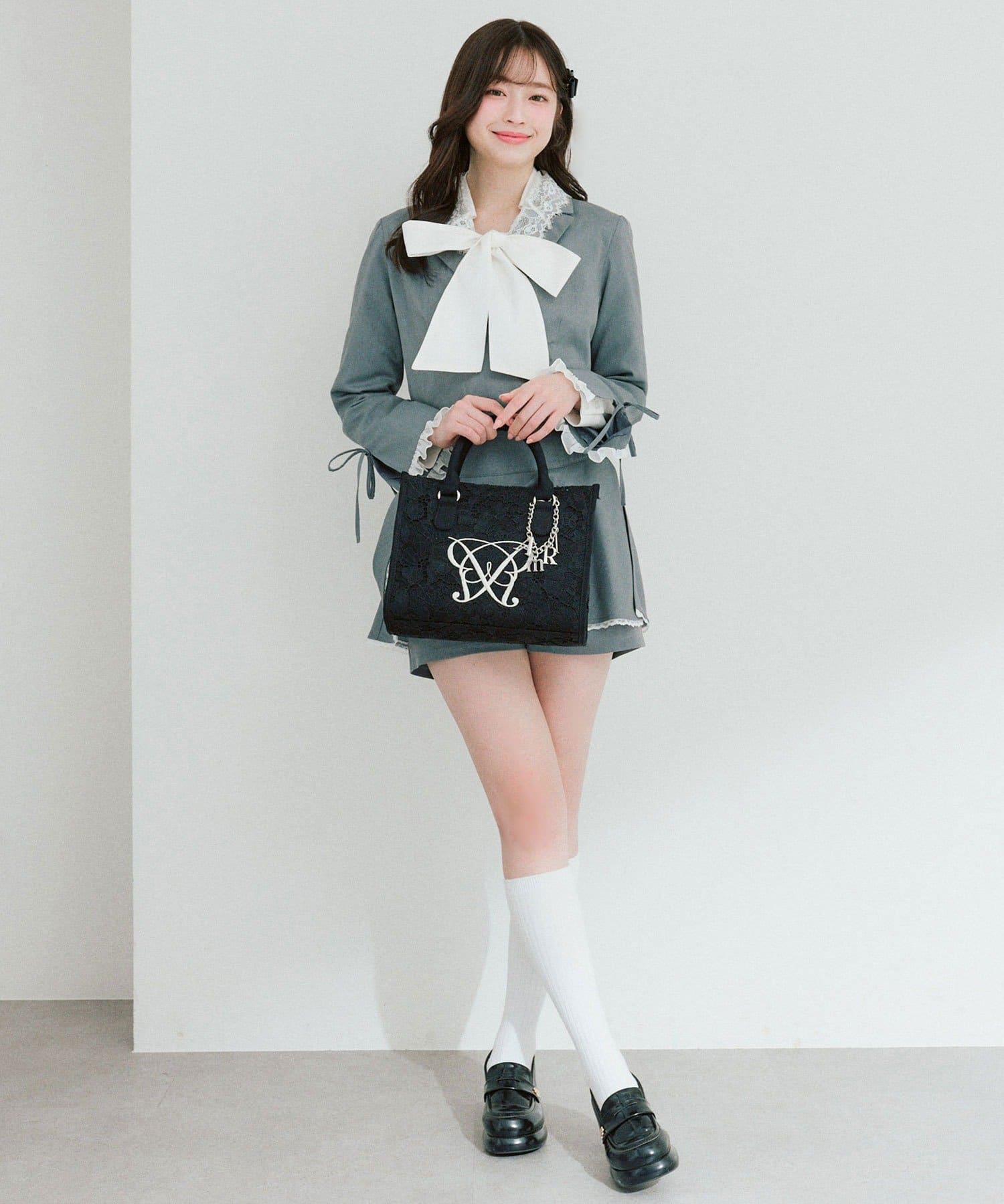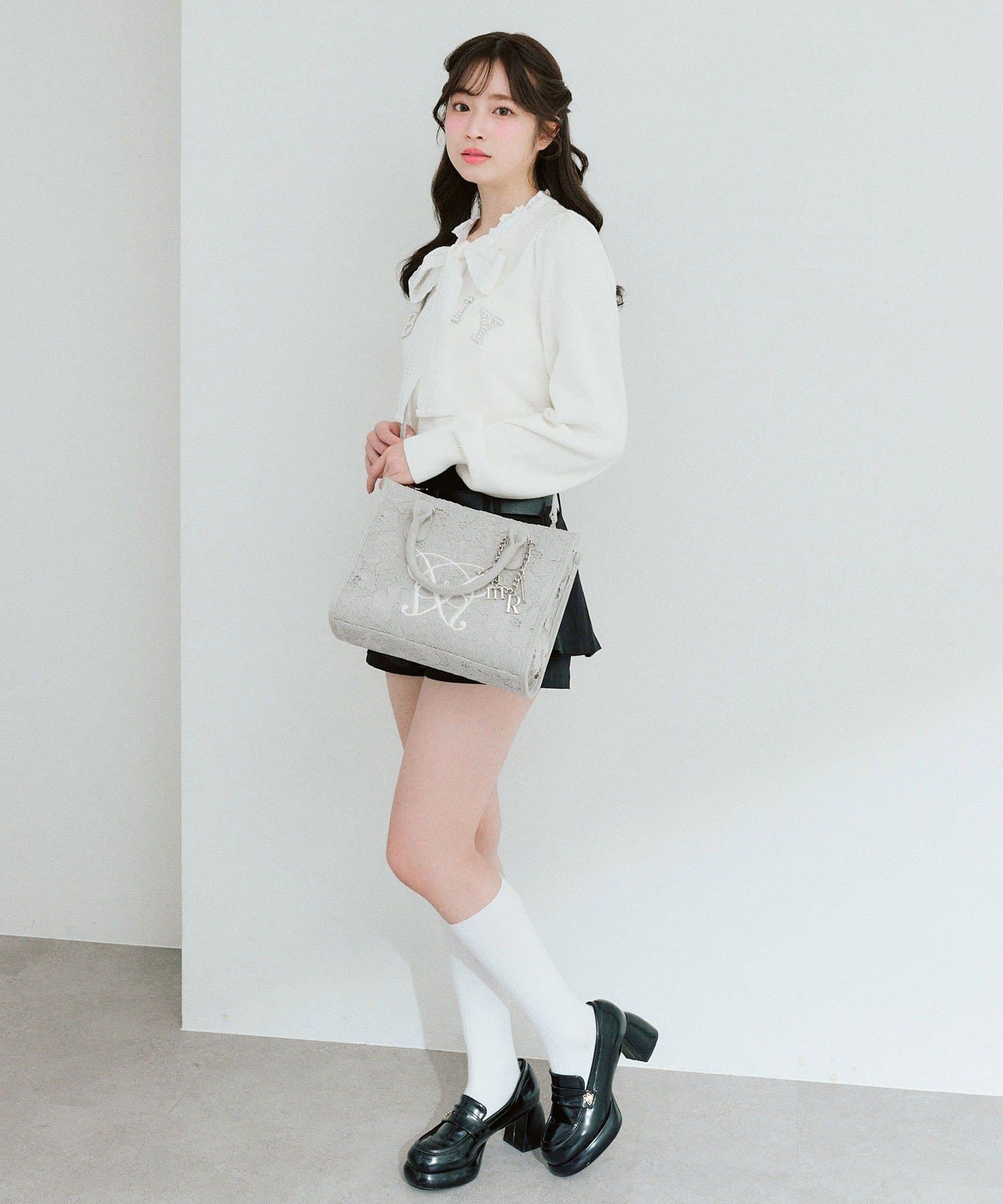 ・大人かわいいレース素材に、オリジナルのロゴ刺繍を施したミニサイズのトートバッグ。