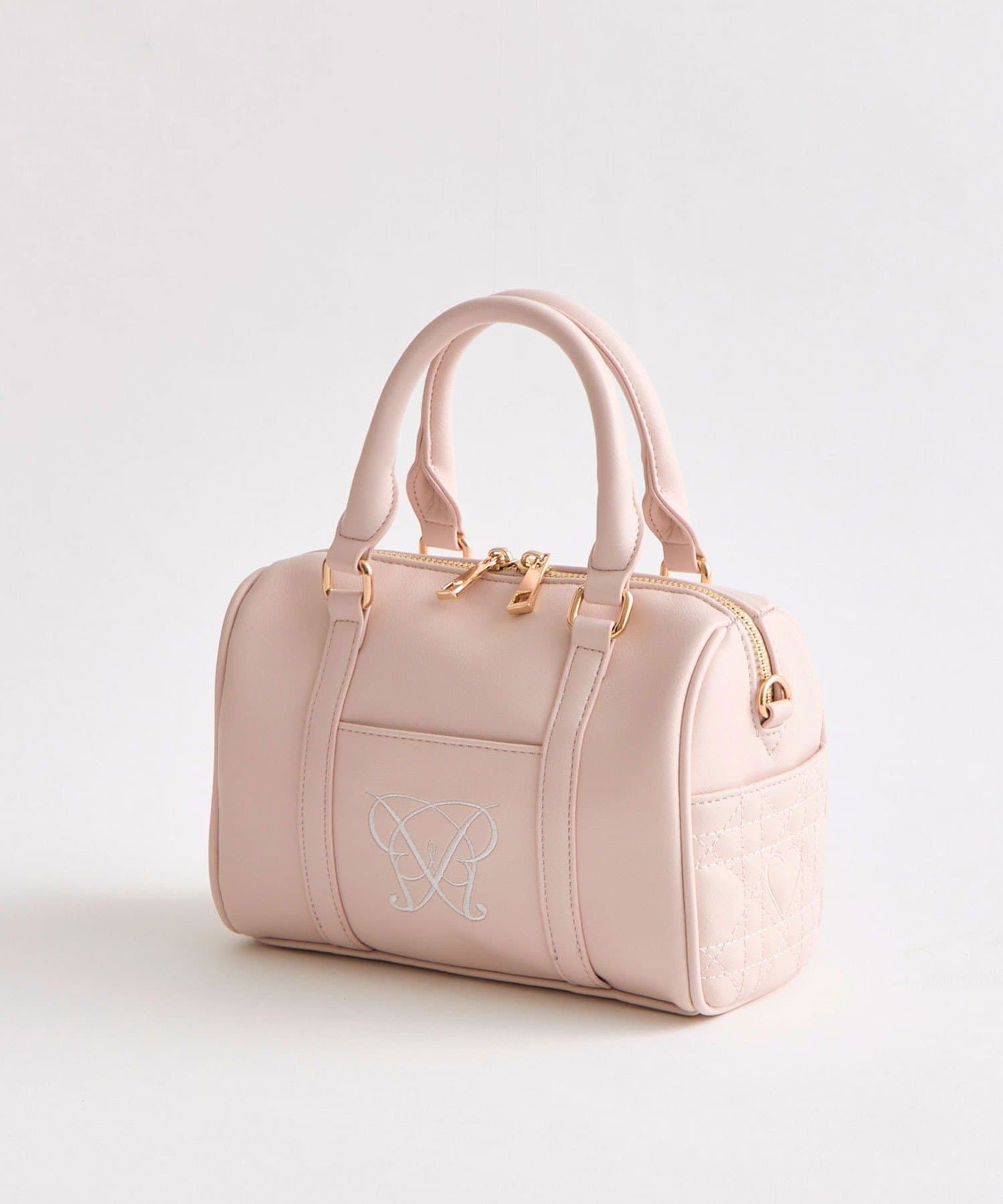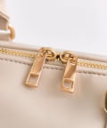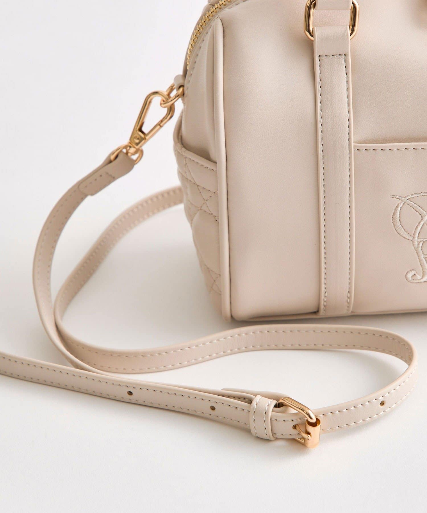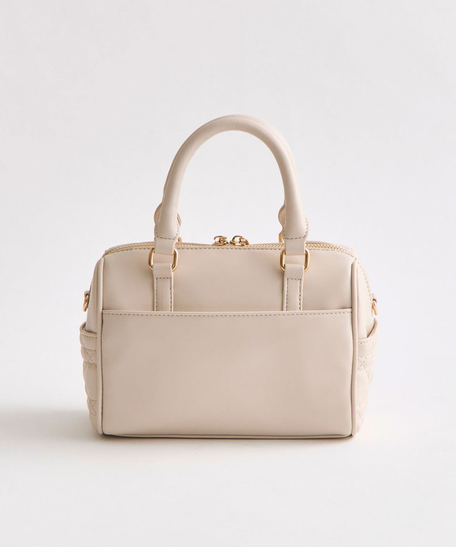 ・高見えする合皮素材にオリジナルのロゴ刺繍とキルティングポケットを施したミニボストンバッグ。